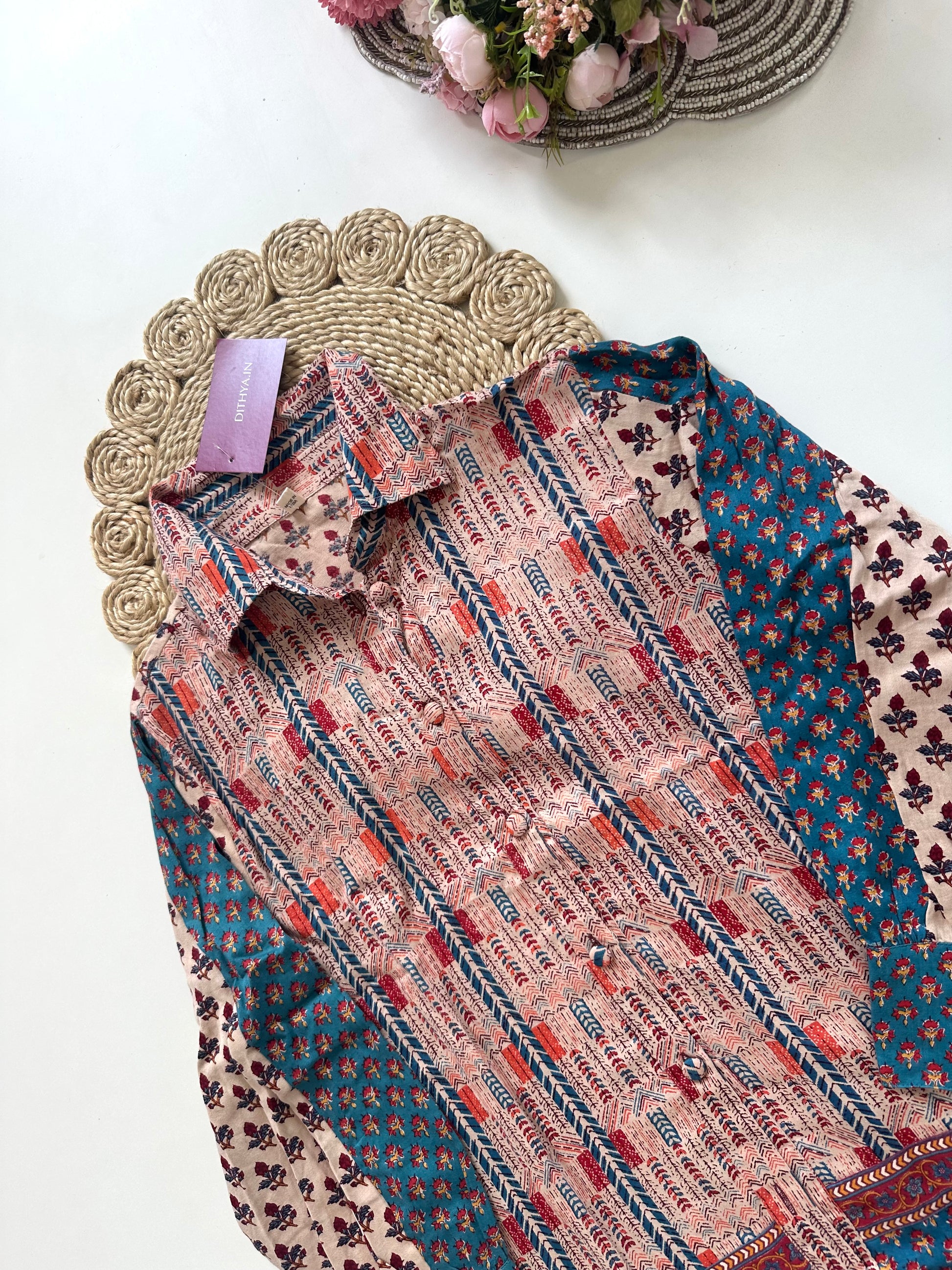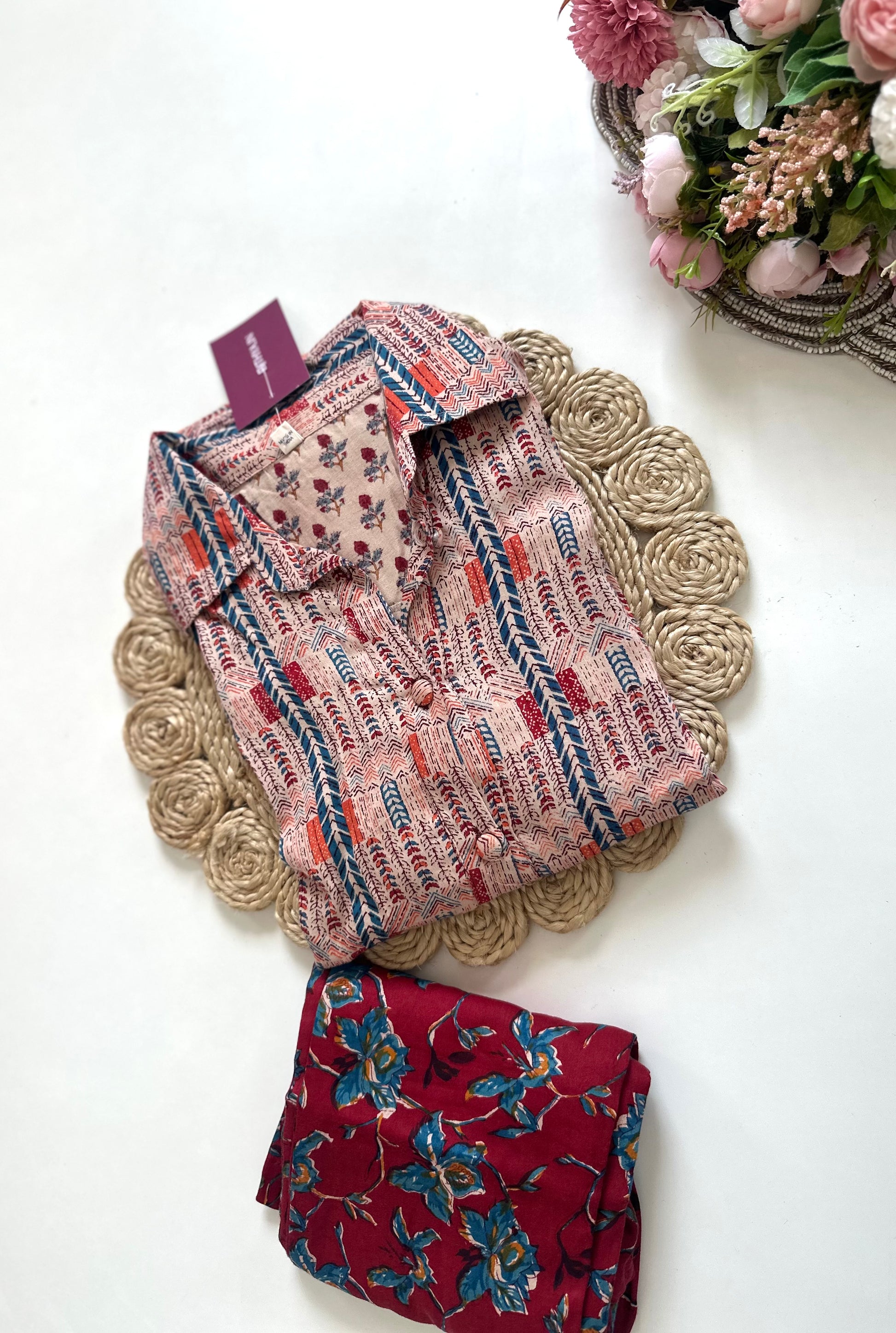 Crafted from soft and breathable cotton, this printed coord set offers both style and comfort. Perfect for any casual occasion, the set features a versatile design that can be dressed up or down. Elevate your wardrobe with this must-have addition.