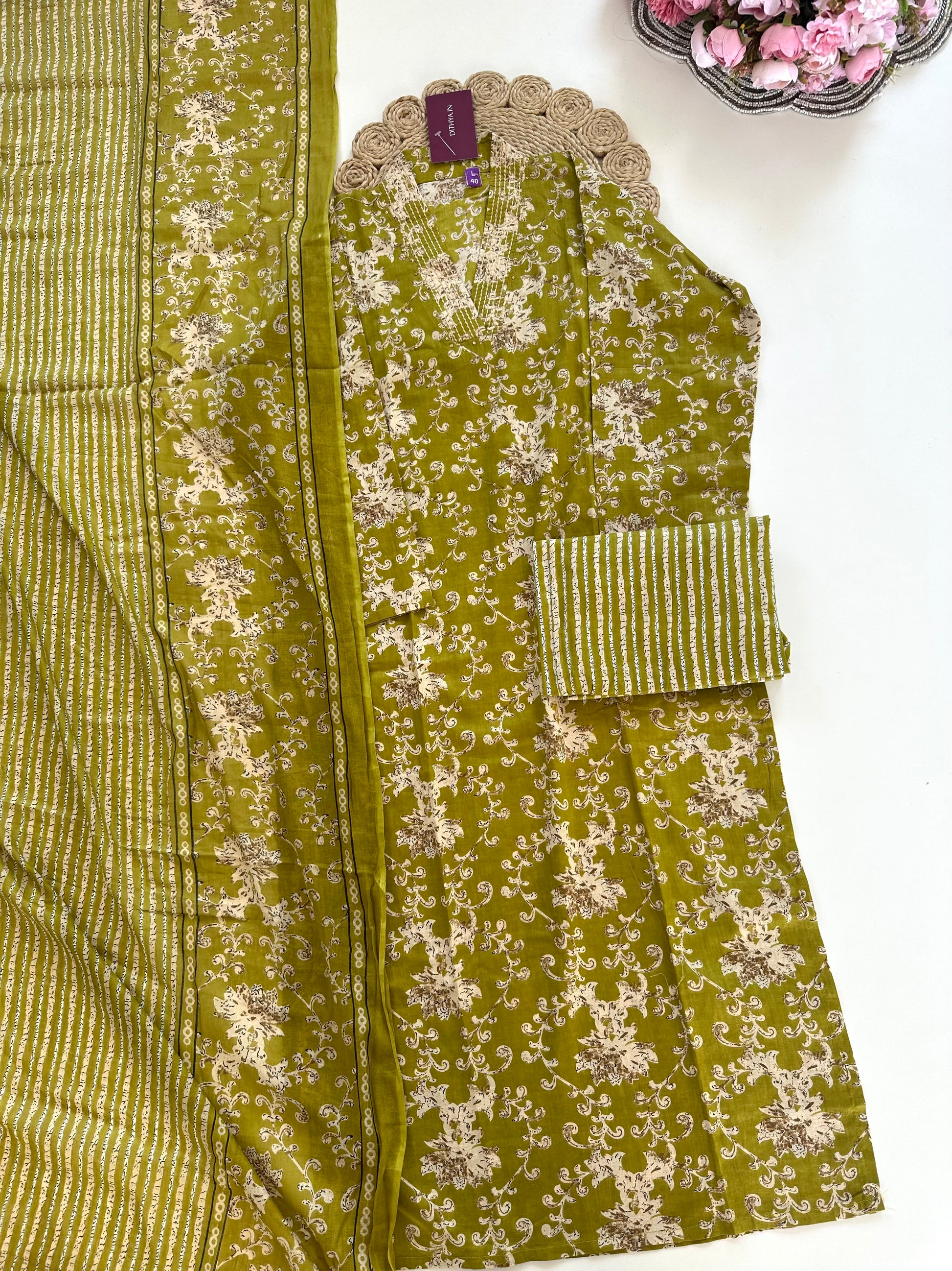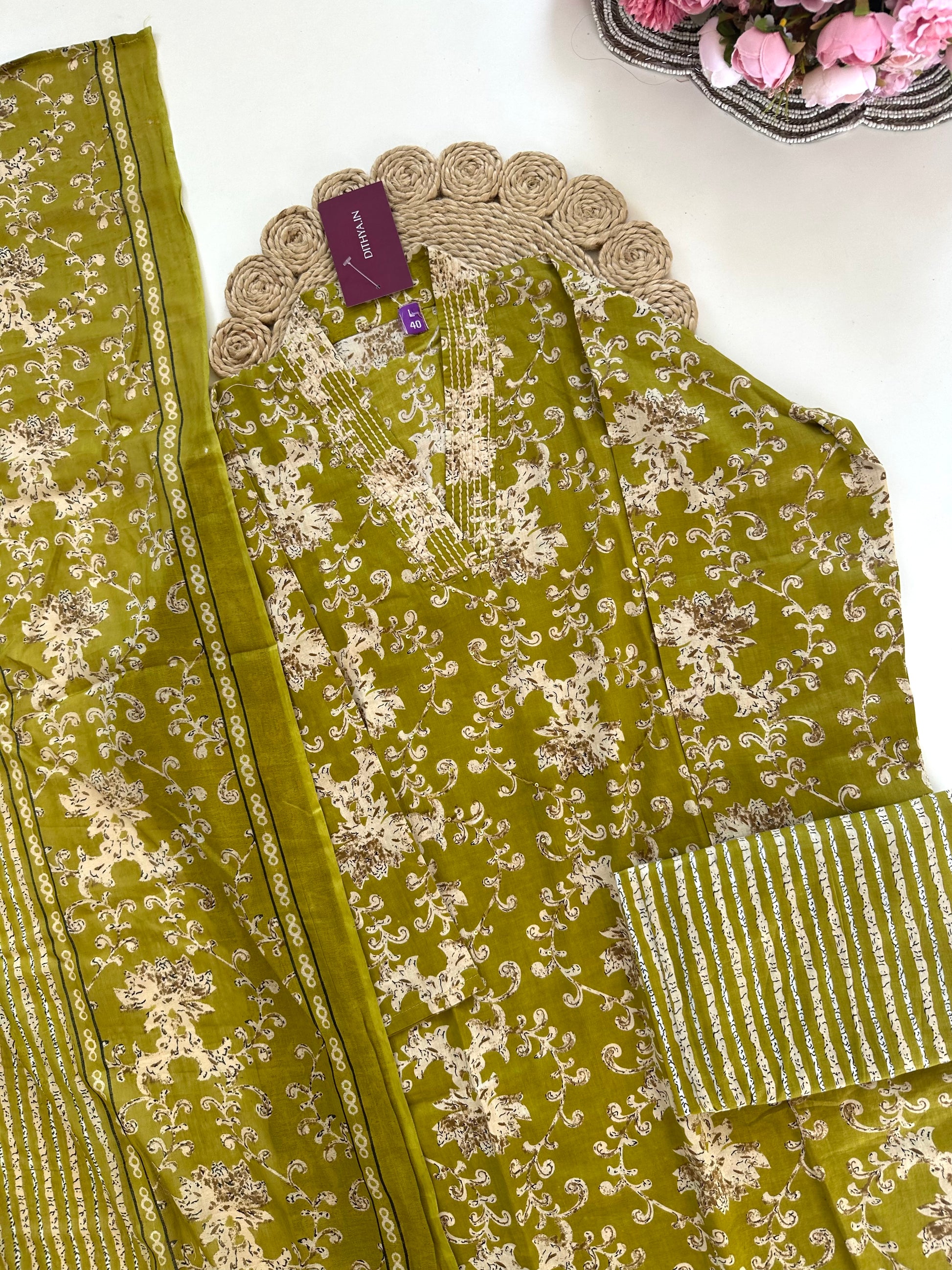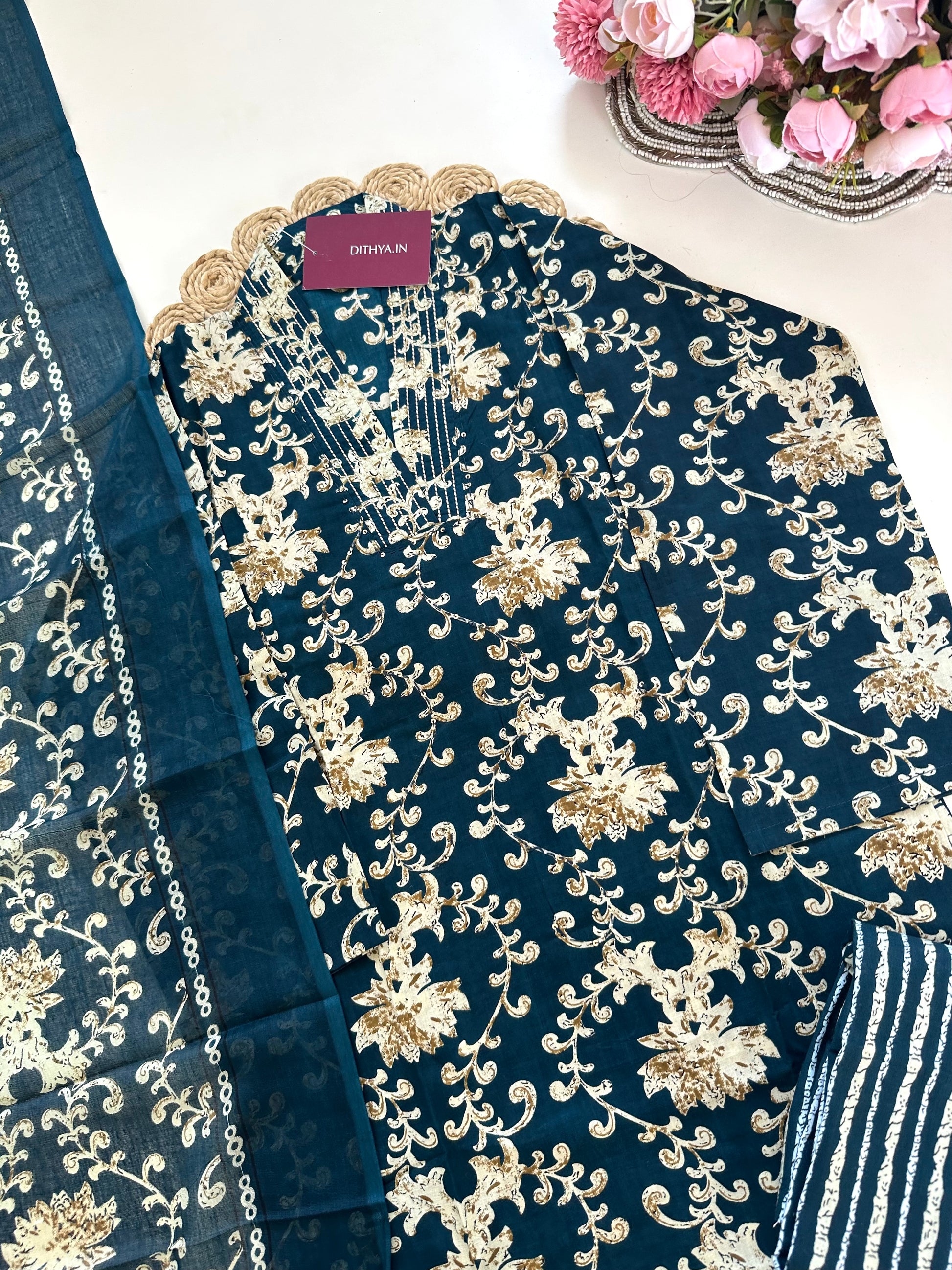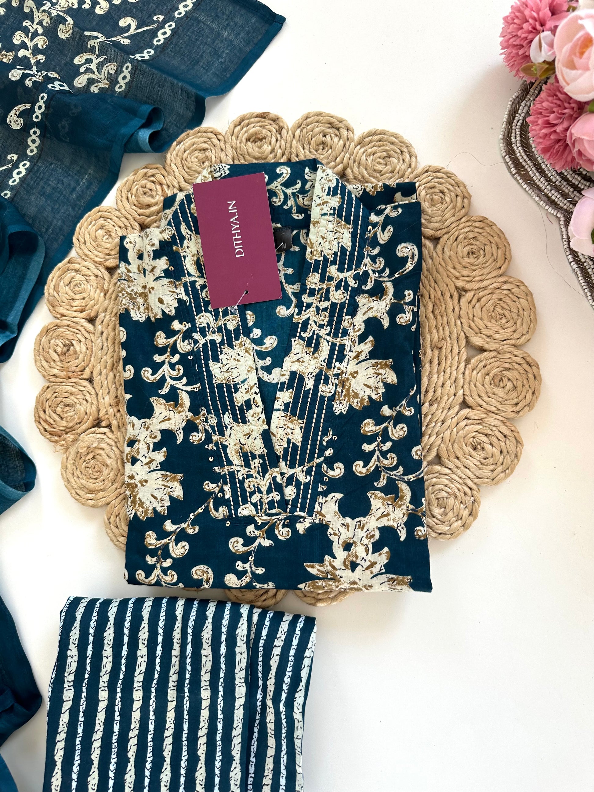 This cotton printed straight Kurti comes with a pair of pants for a complete and stylish outfit. Made from high-quality cotton, it offers a comfortable and breathable fit. Its straight cut and intricate print make it a versatile piece, perfect for any occasion.