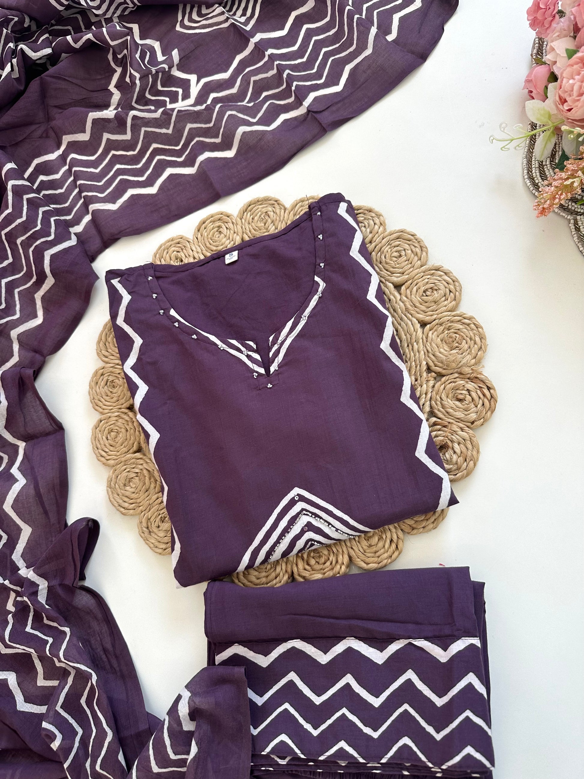 Achieve a stylish and comfortable look with a Cotton Printed straight kurti paired with palazzo and dupatta. The cotton fabric ensures breathability while the print adds a touch of elegance. Perfect for any occasion, this outfit offers both fashion and comfort.