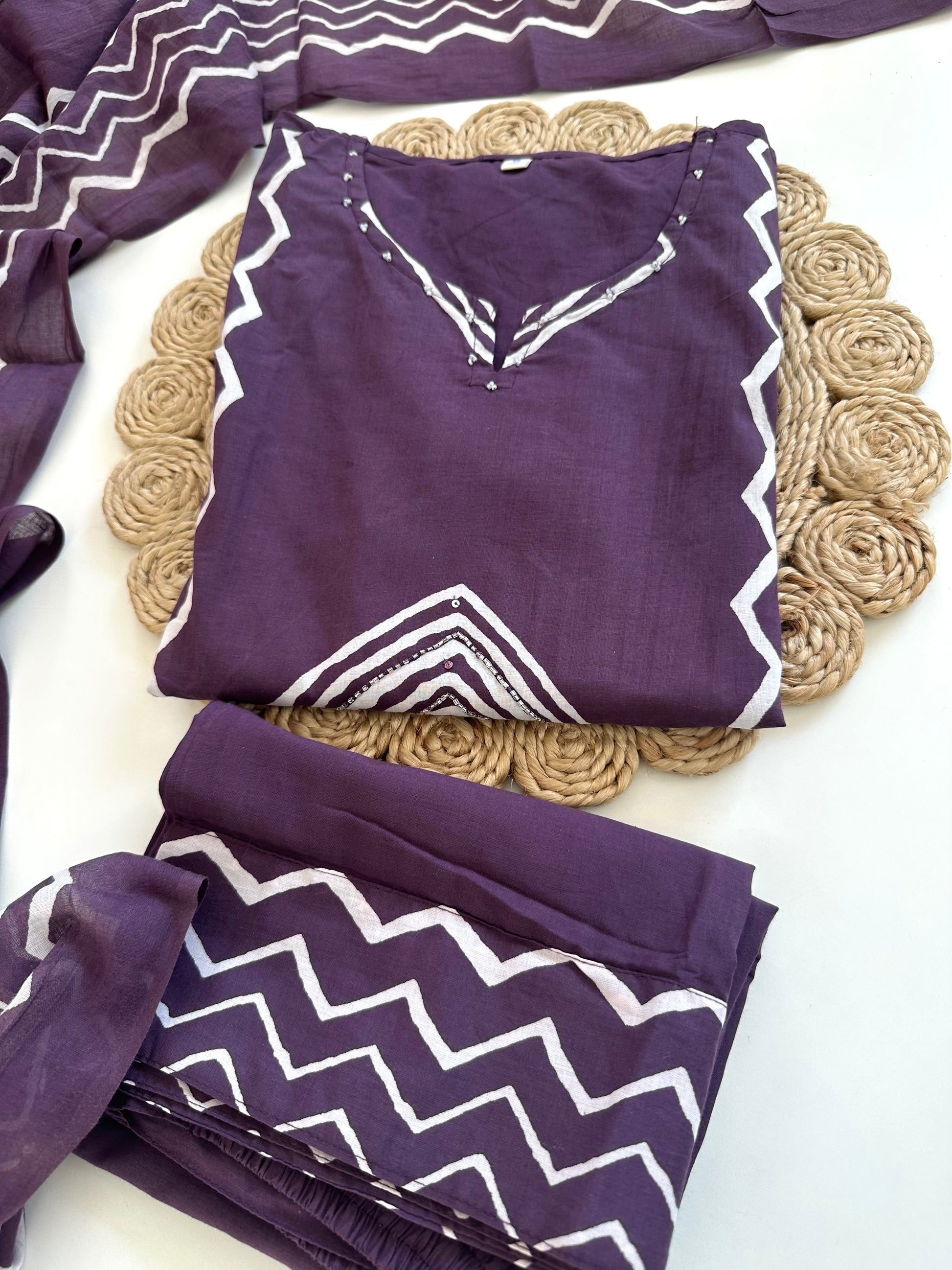 K287 - Cotton Printed straight kurti with palazzo and dupatta