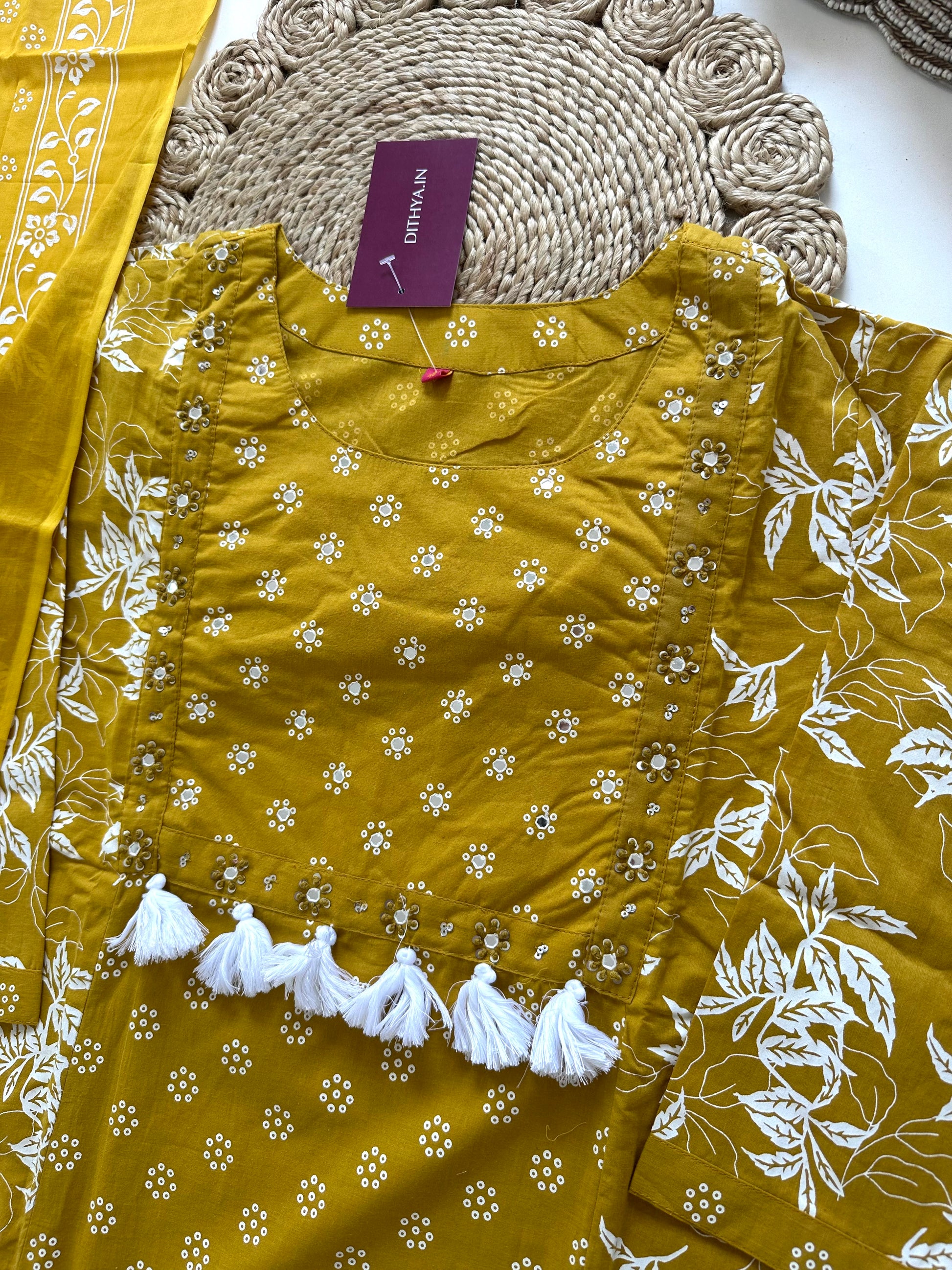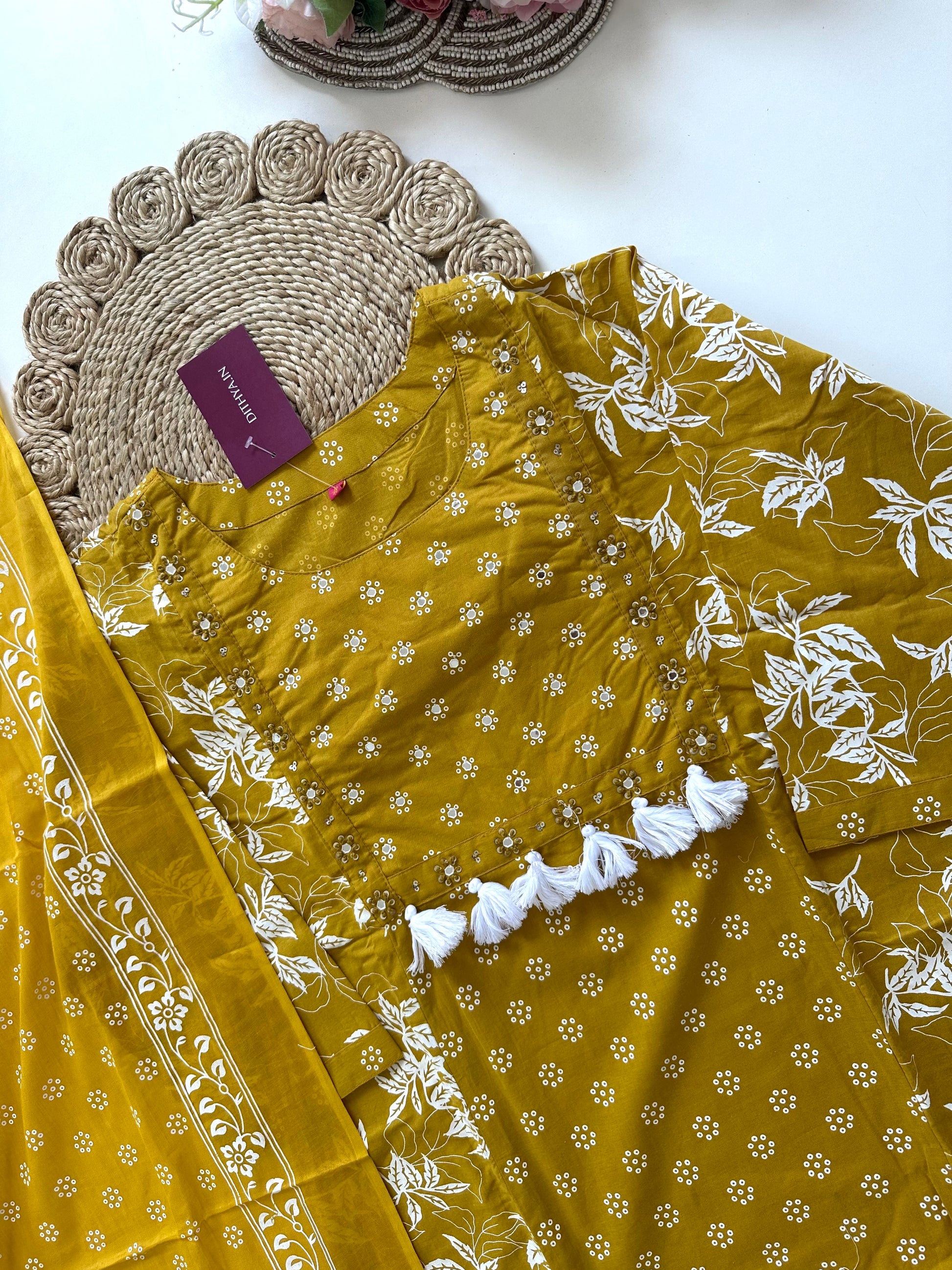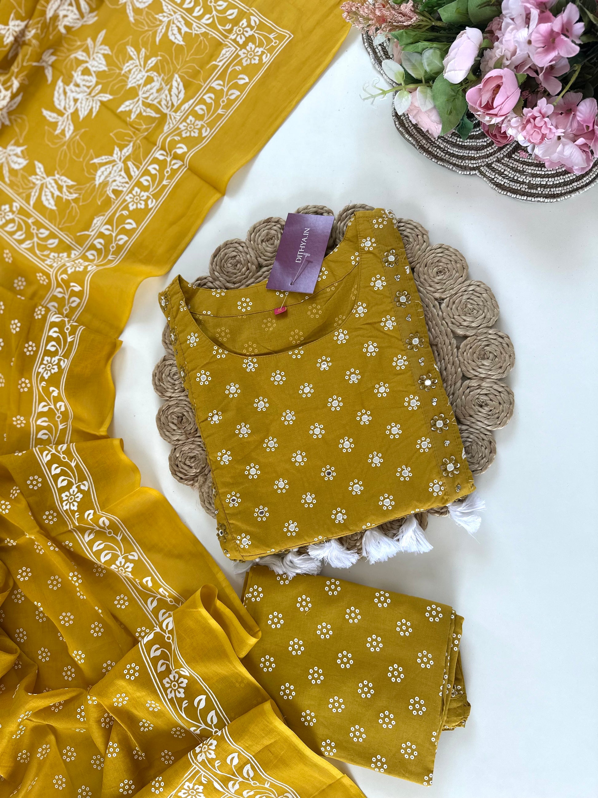 This Cotton printed kurti set includes pants and dupatta for a complete and stylish look. Made from high-quality cotton, this straight kurti offers both comfort and elegance. Add this versatile set to your wardrobe for a fashionable and effortless ensemble.