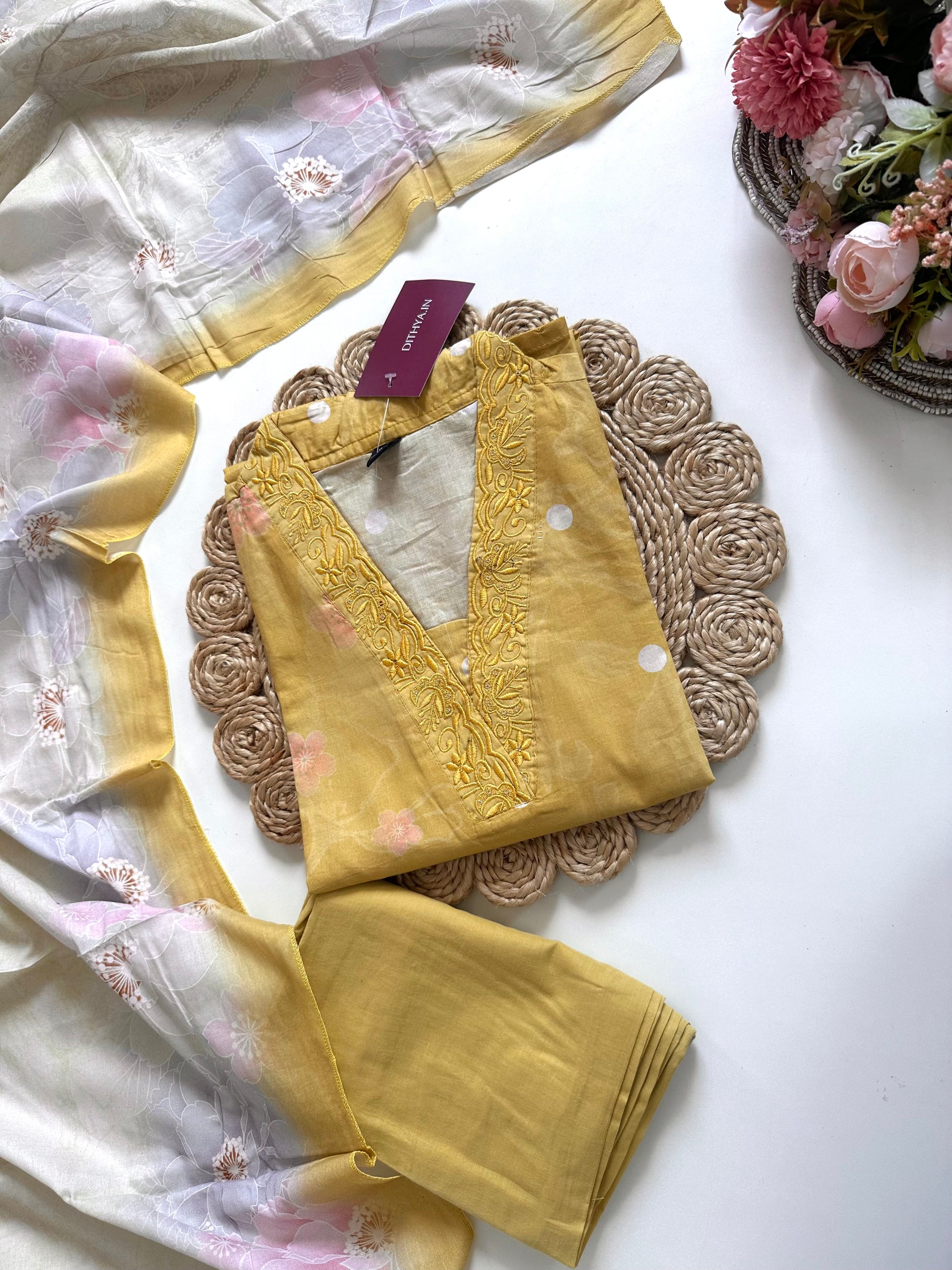 This straight kurti is made from high-quality cotton and features a beautiful printed design. The set also includes a pair of matching pants and a dupatta. Perfect for a comfortable and stylish look.