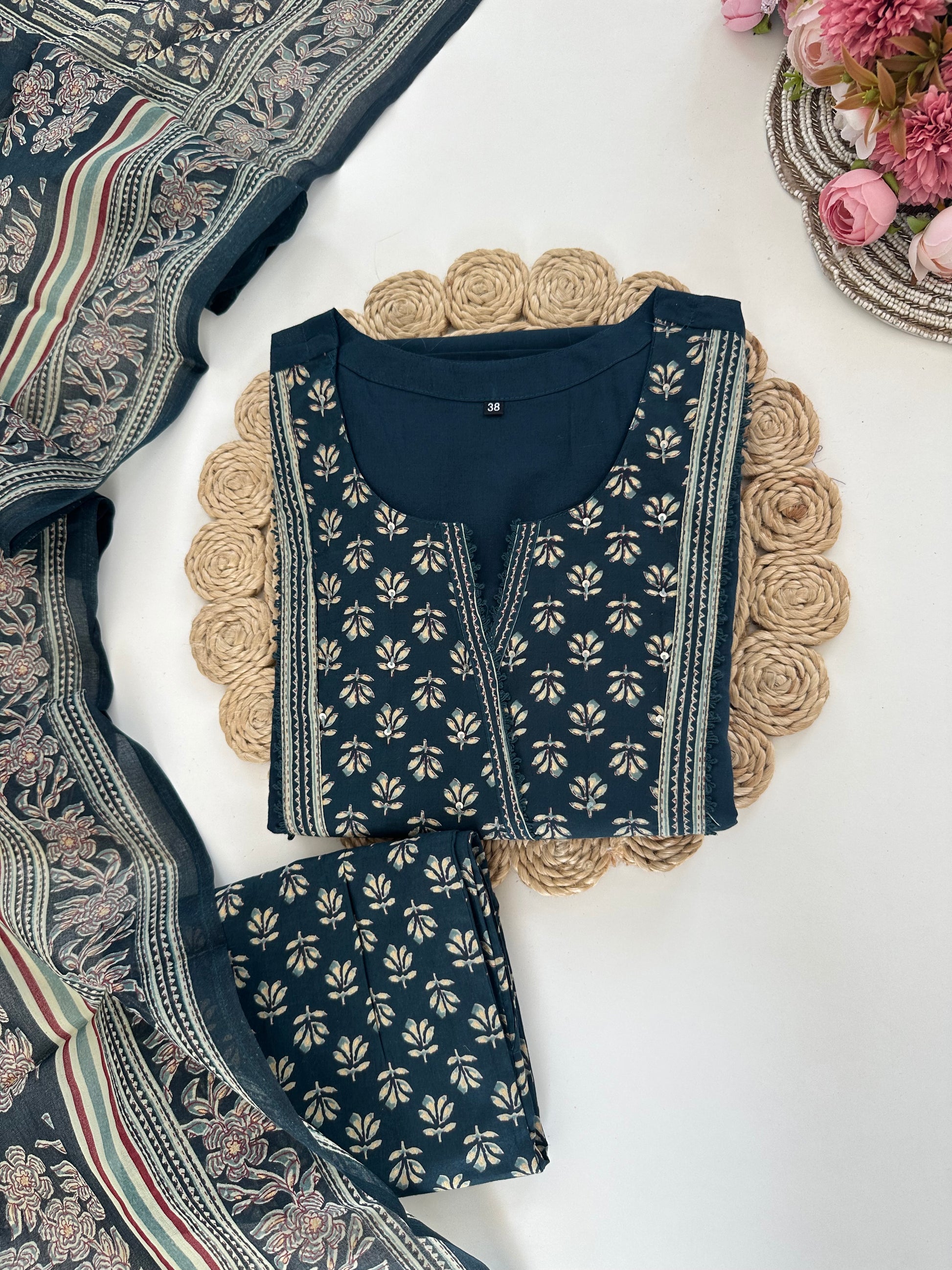 K281 - Cotton printed straight Kurti with pants and dupatta