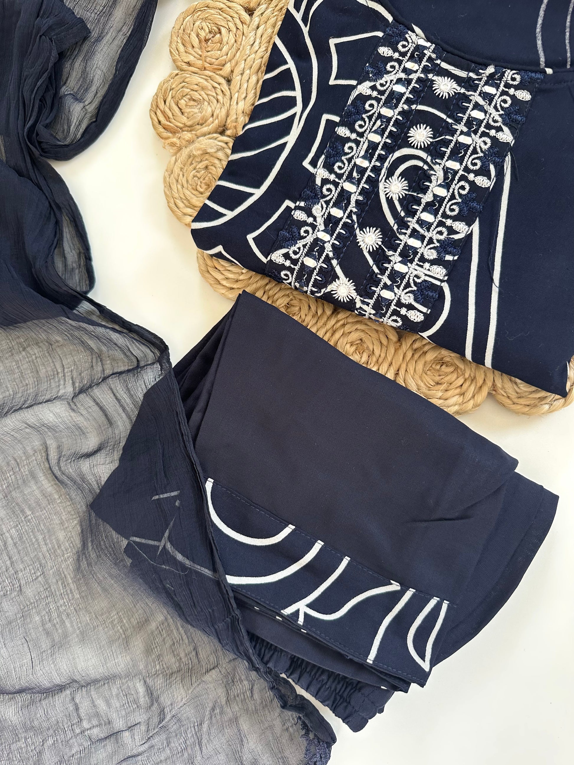 The K418 - Cotton printed straight Kurti is a versatile and stylish option for any wardrobe. Made from high-quality cotton, this Kurti is comfortable and durable, while the straight cut adds a flattering touch. The accompanying pants and dupatta complete the look for a perfect outfit for any occasion.