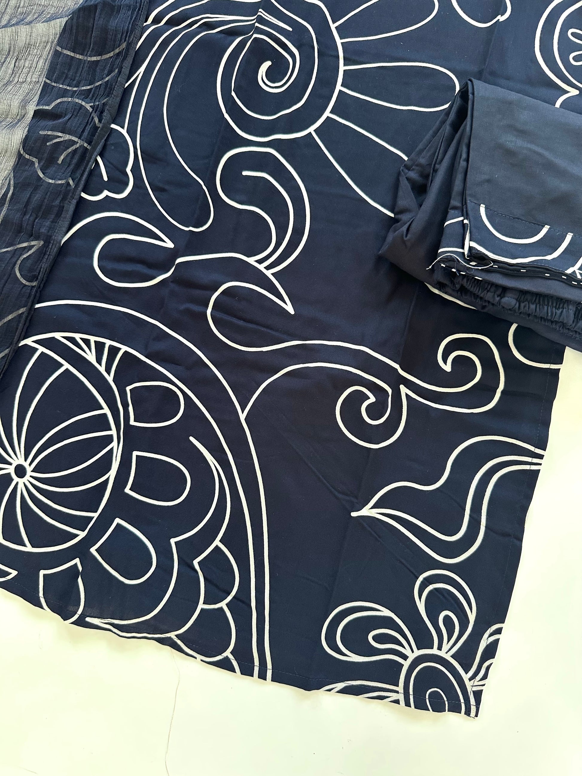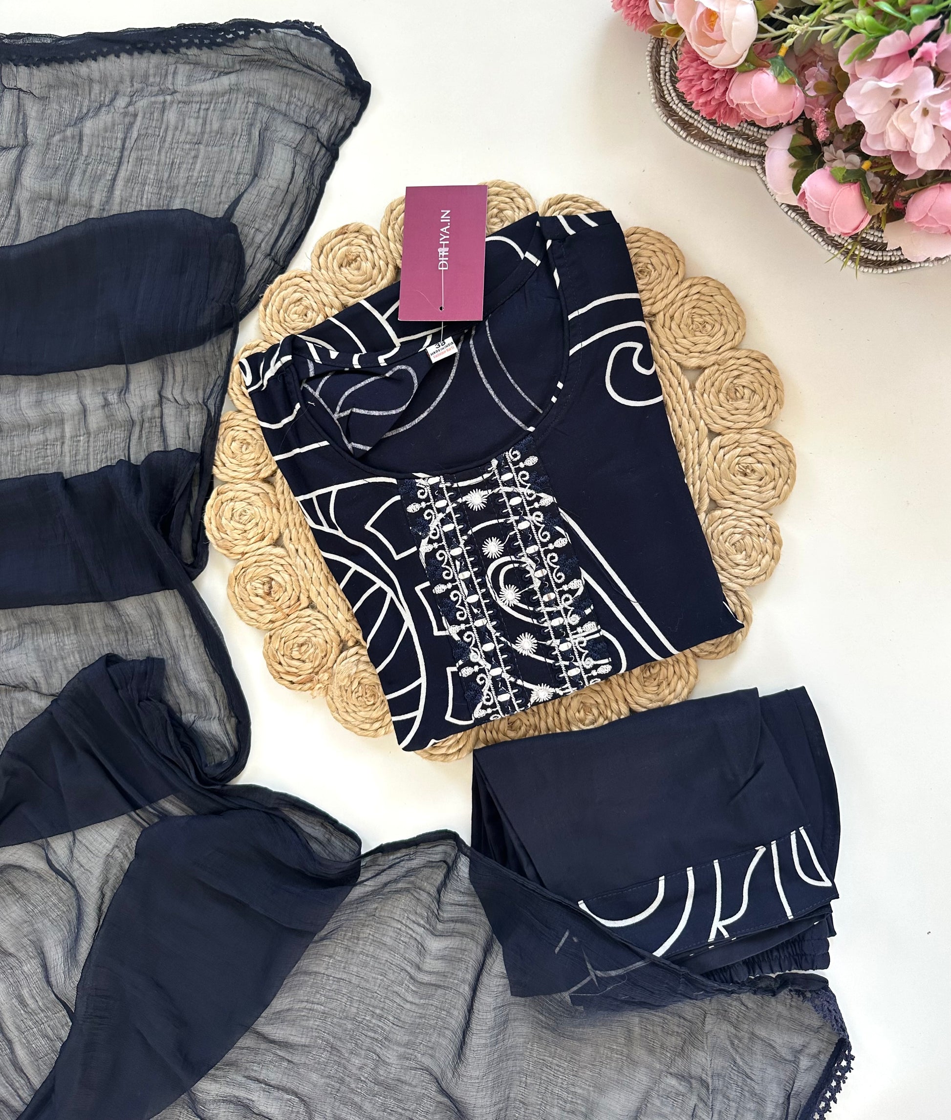 K418 - Cotton printed straight Kurti with pants and dupatta