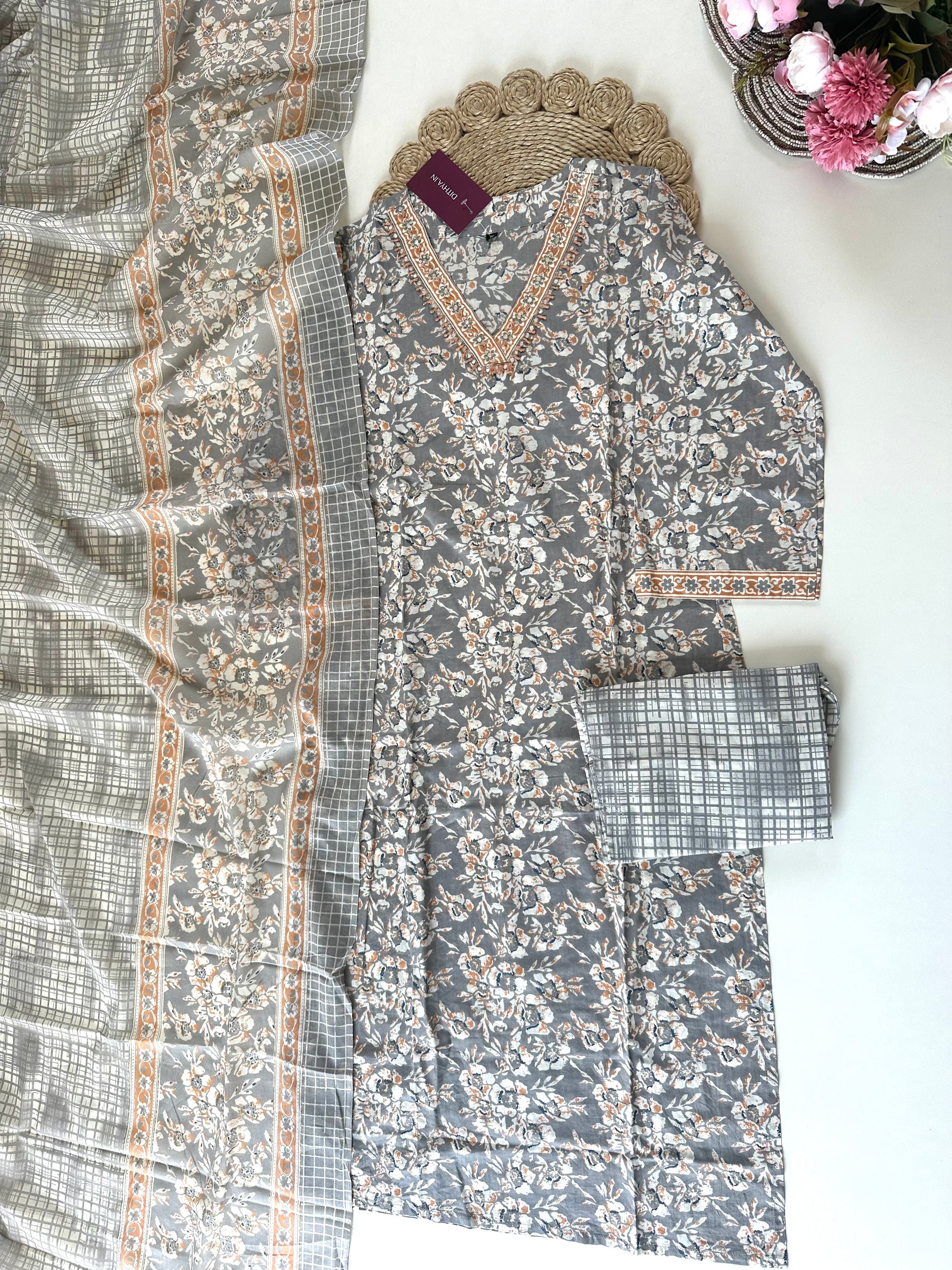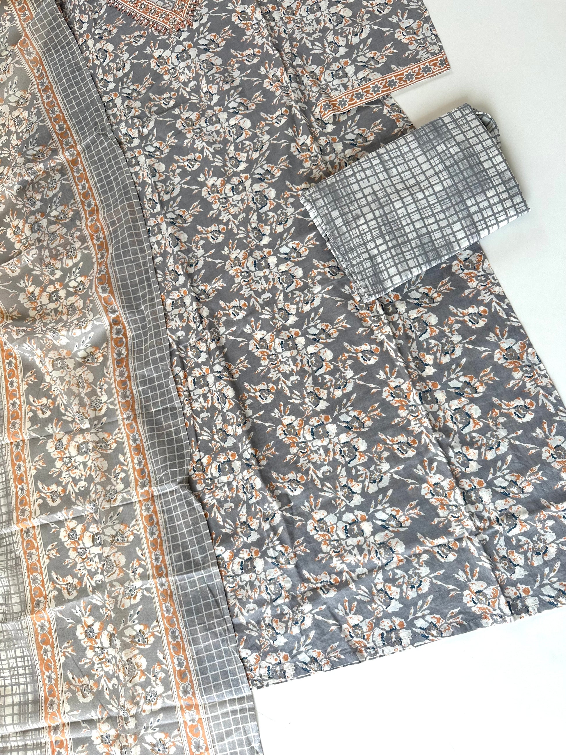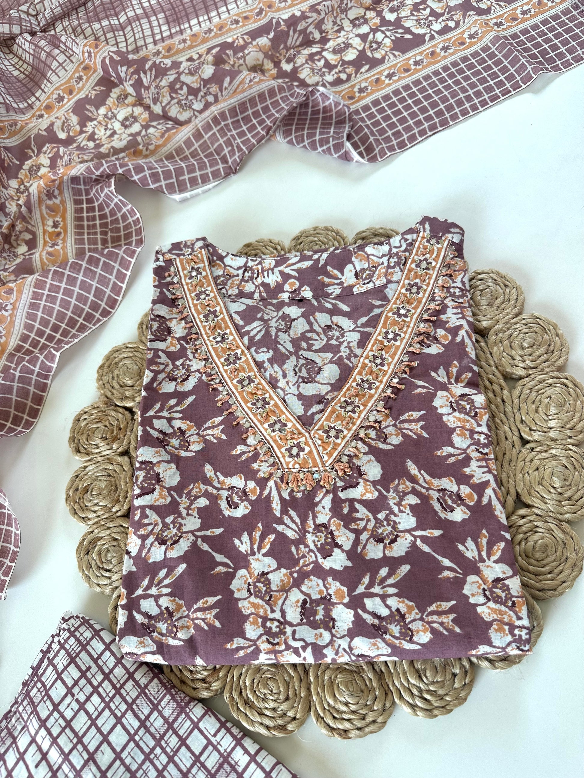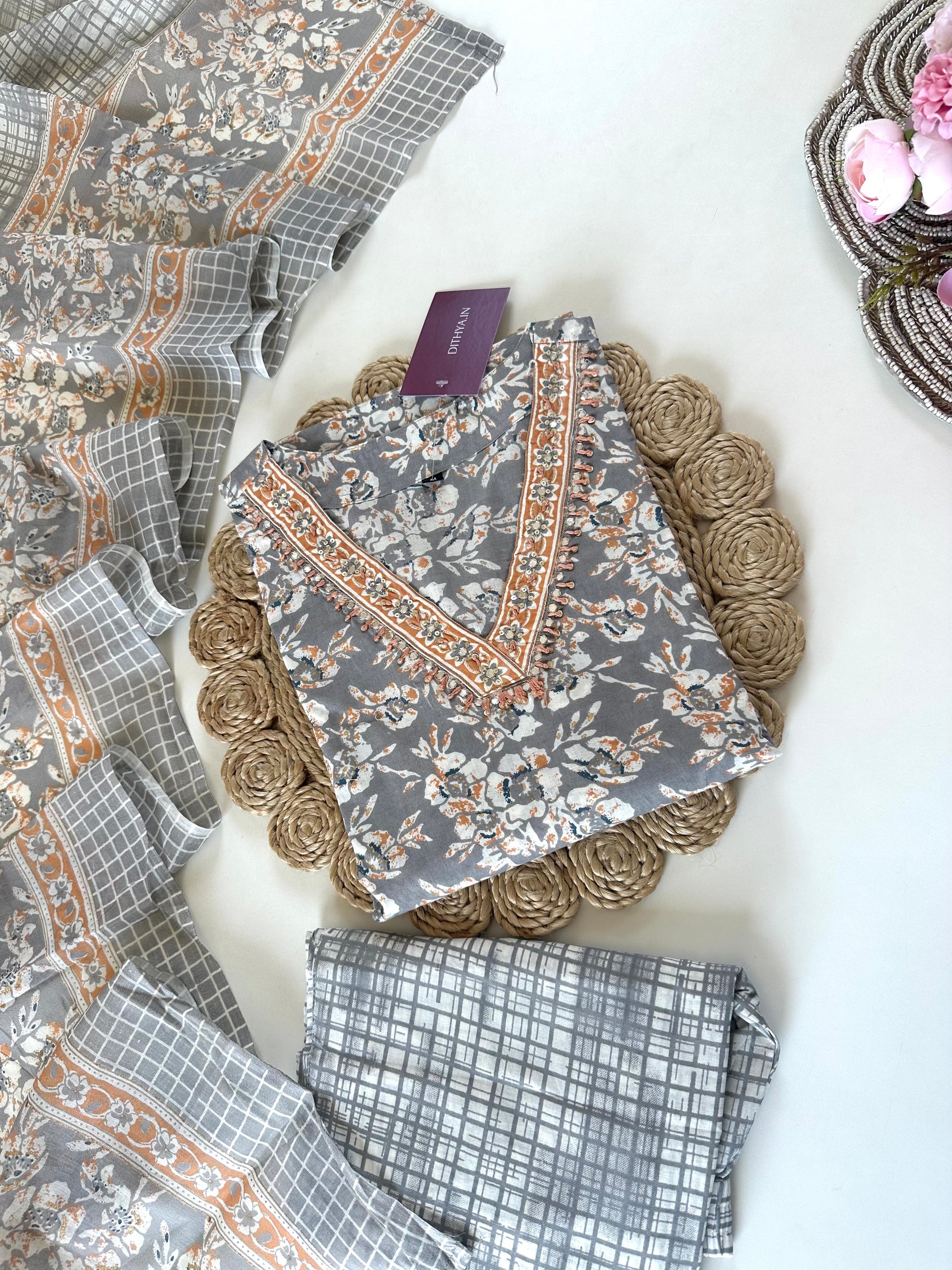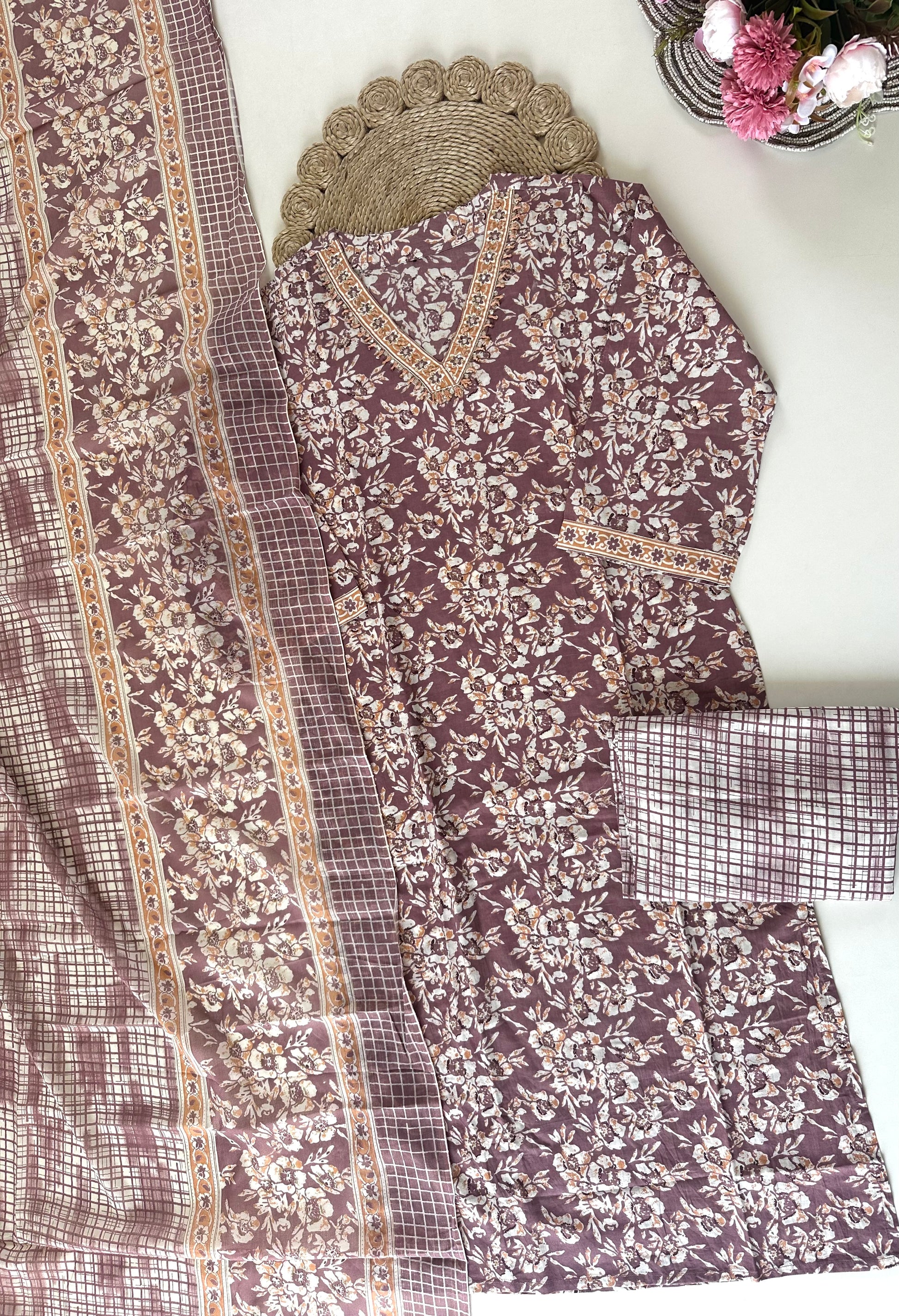 K313 - Cotton printed straight kurti with pants and dupatta in 2 colours