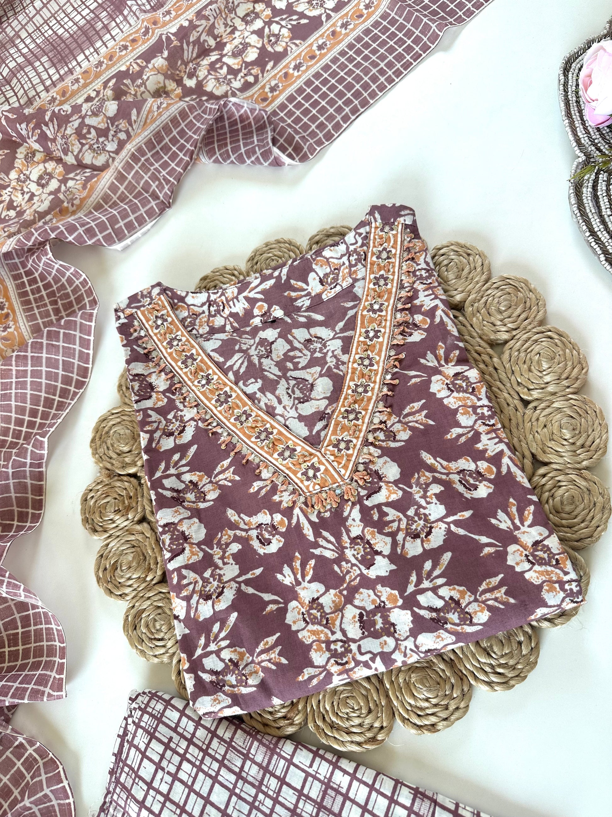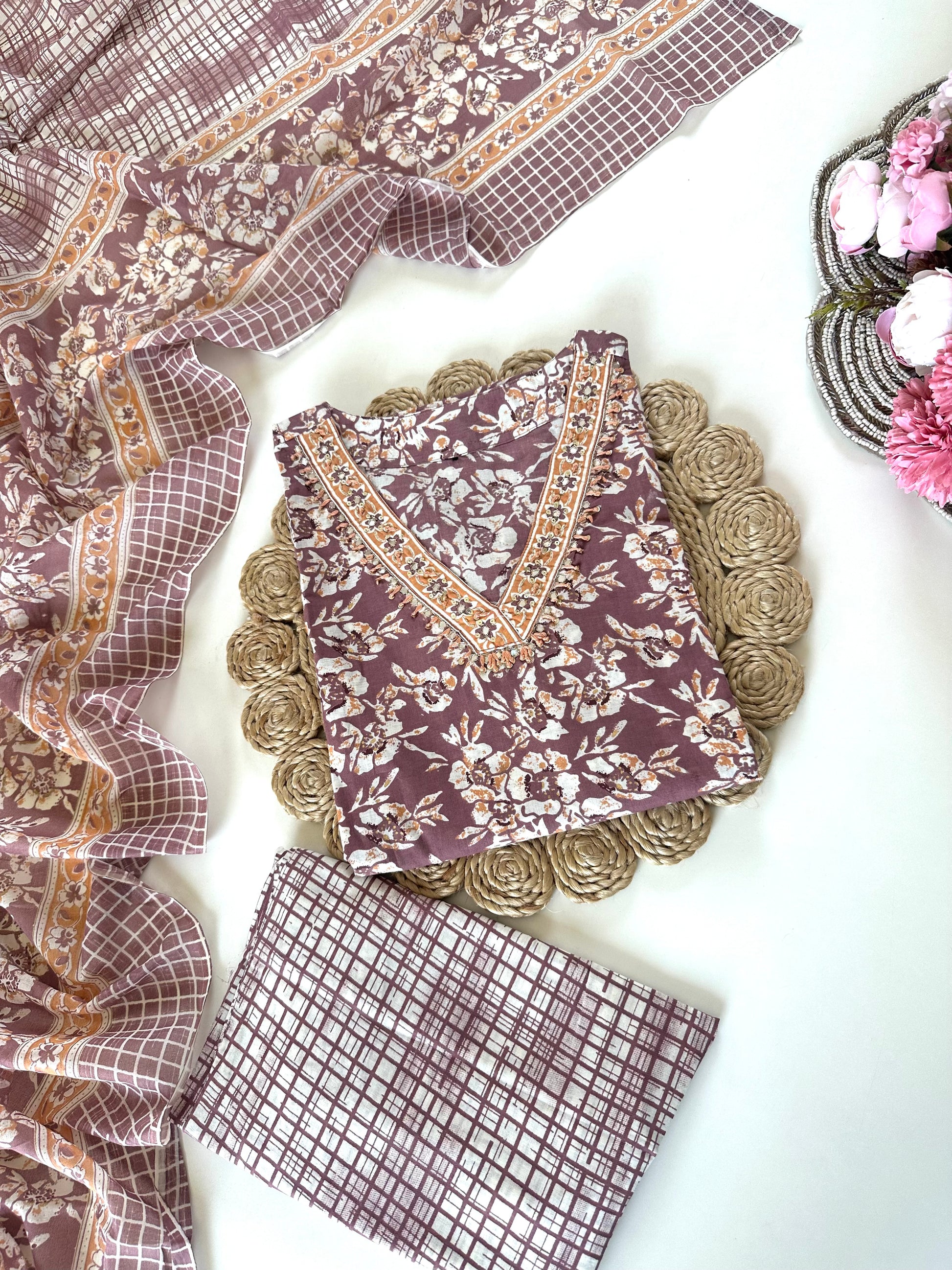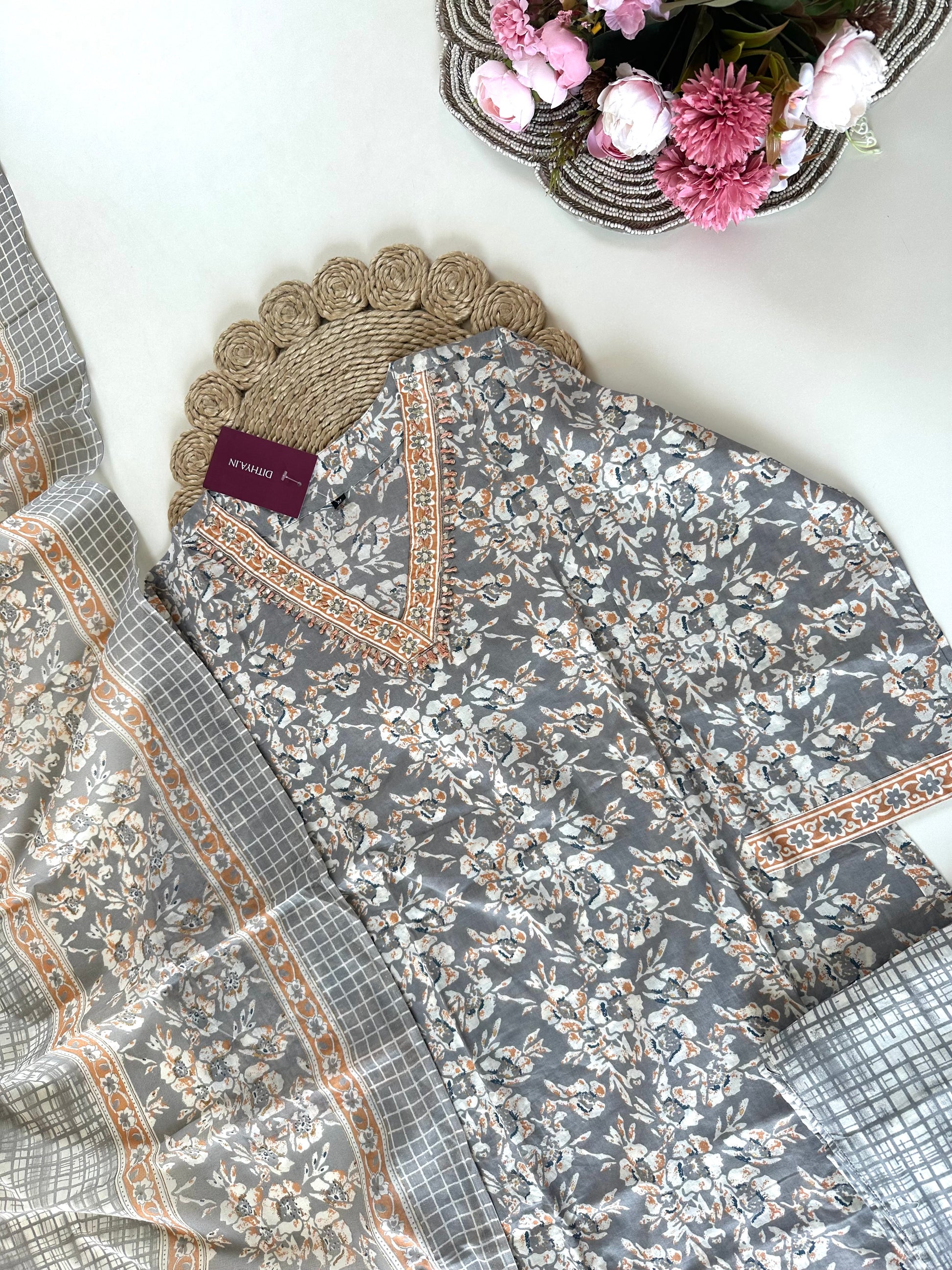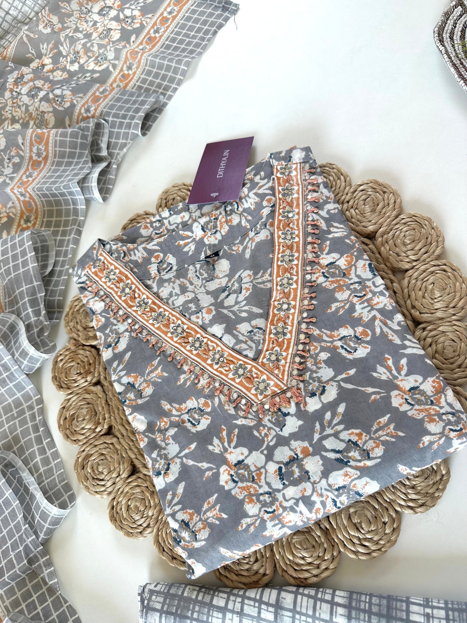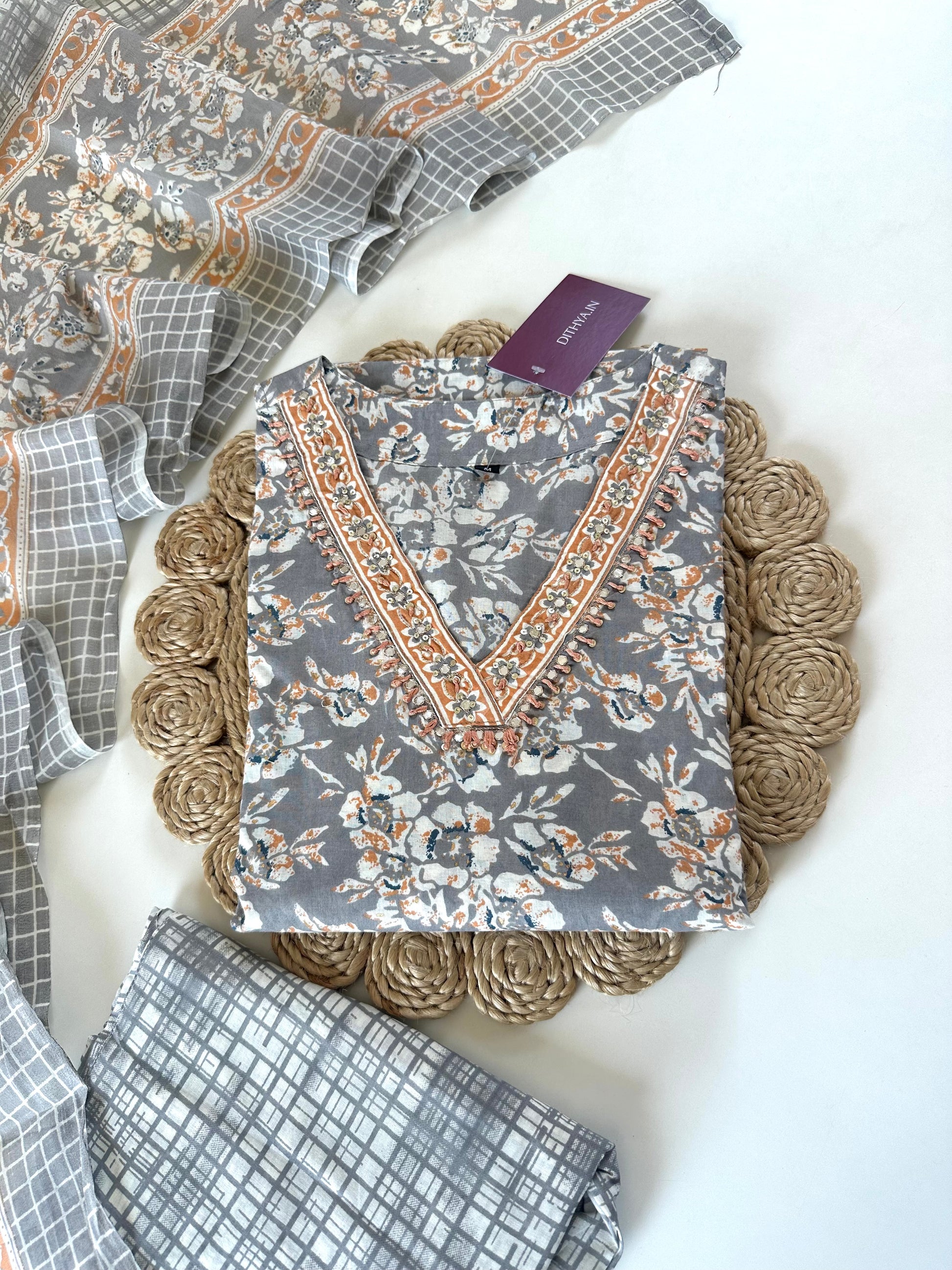 K313 - Cotton printed straight kurti with pants and dupatta in 2 colours