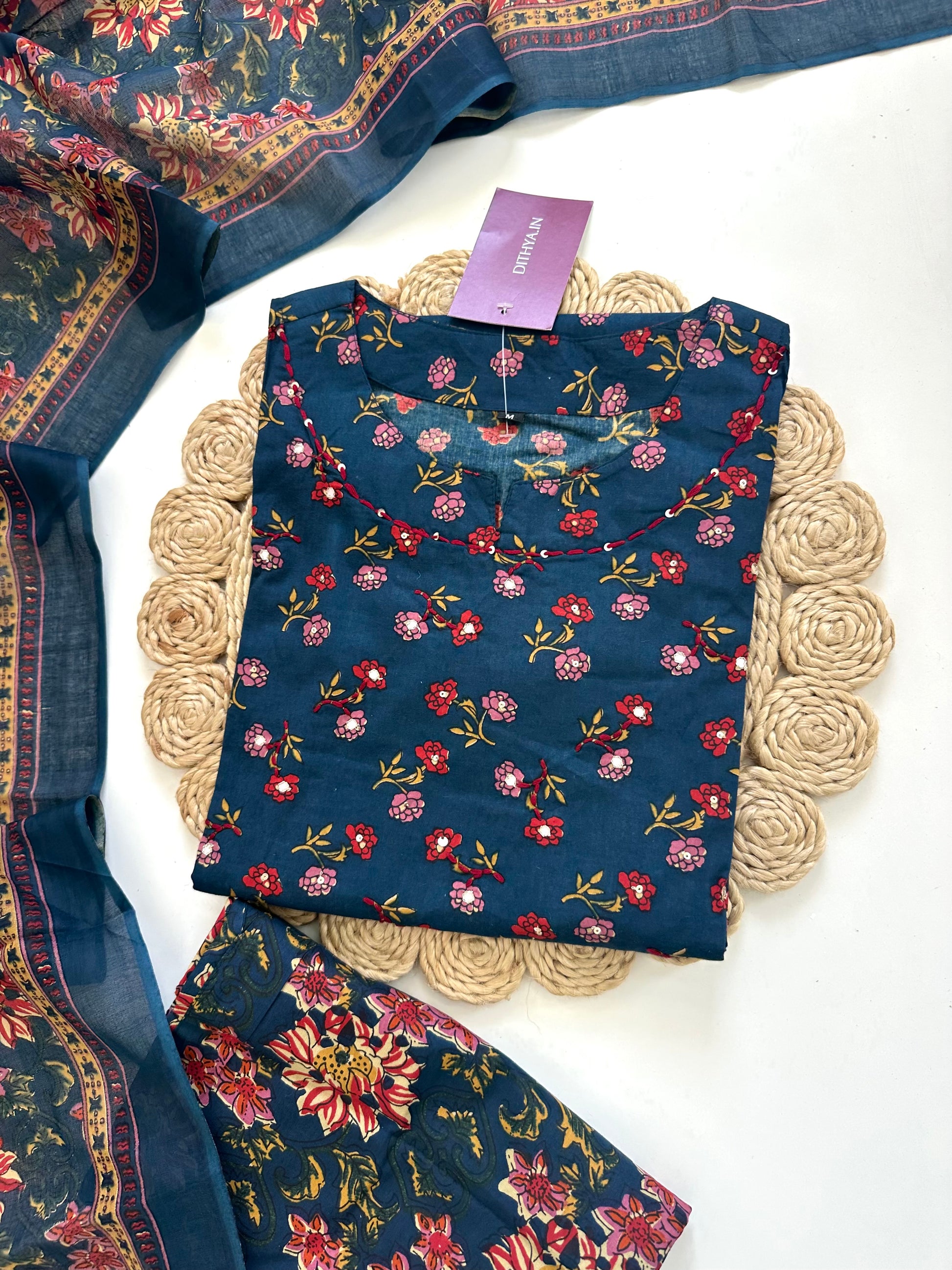 Update your ethnic wardrobe with the Cotton Straight Kurti with Pants and Dupatta. Made from high-quality cotton, this kurti offers a comfortable and stylish fit. The included pants and dupatta create a complete set for any occasion. Elevate your style with this versatile and elegant ensemble.