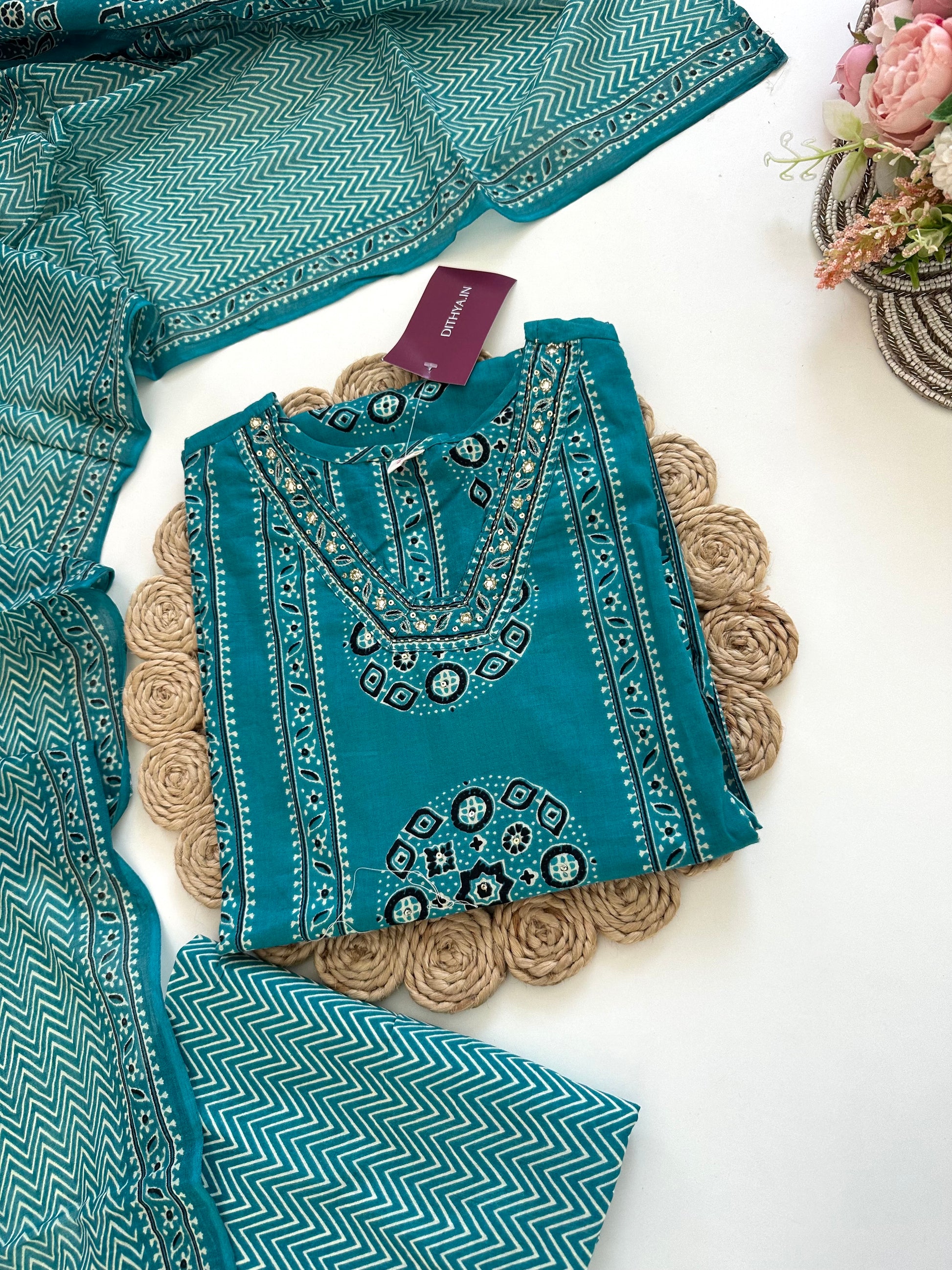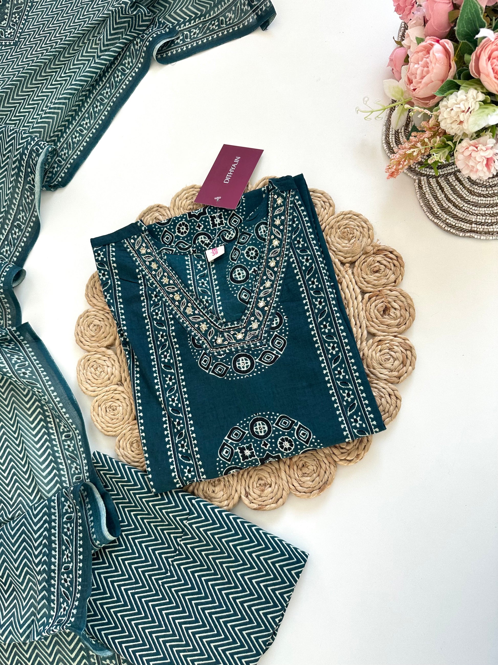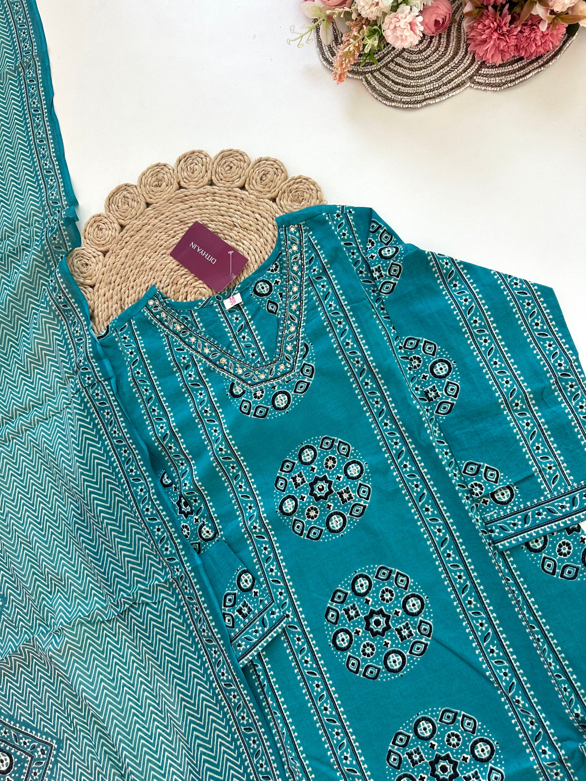 K059 - Cotton Straight kurti with pants and dupatta in 2 colours