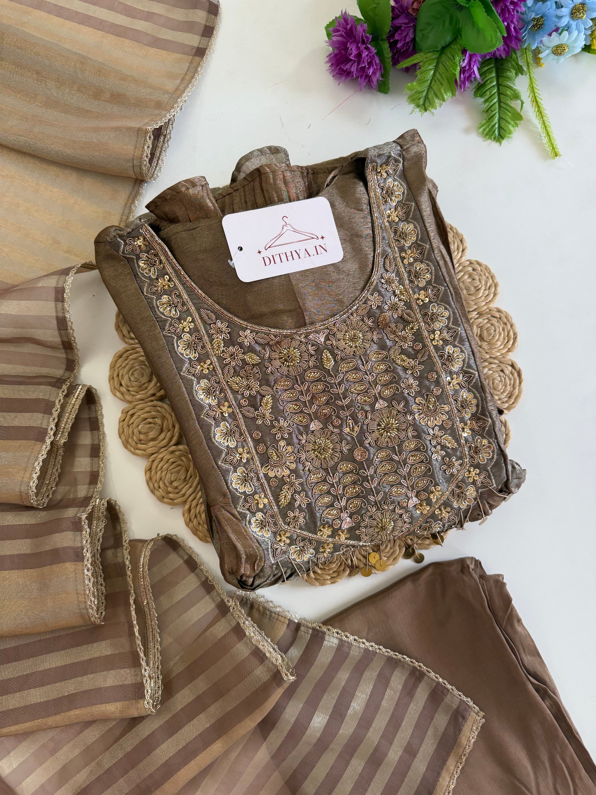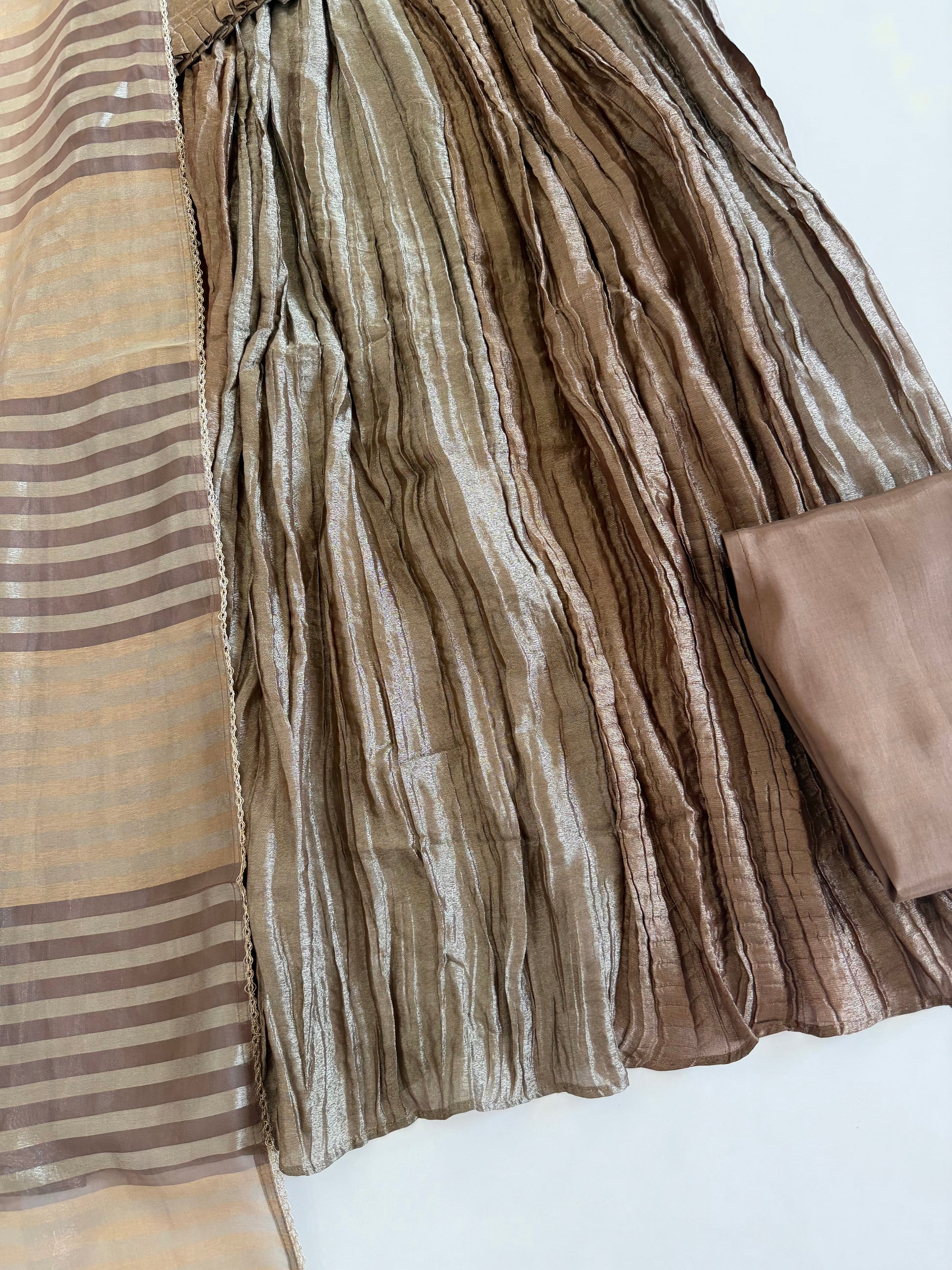 K228 - Crush tissue handwork Anarkali with pants and dupatta