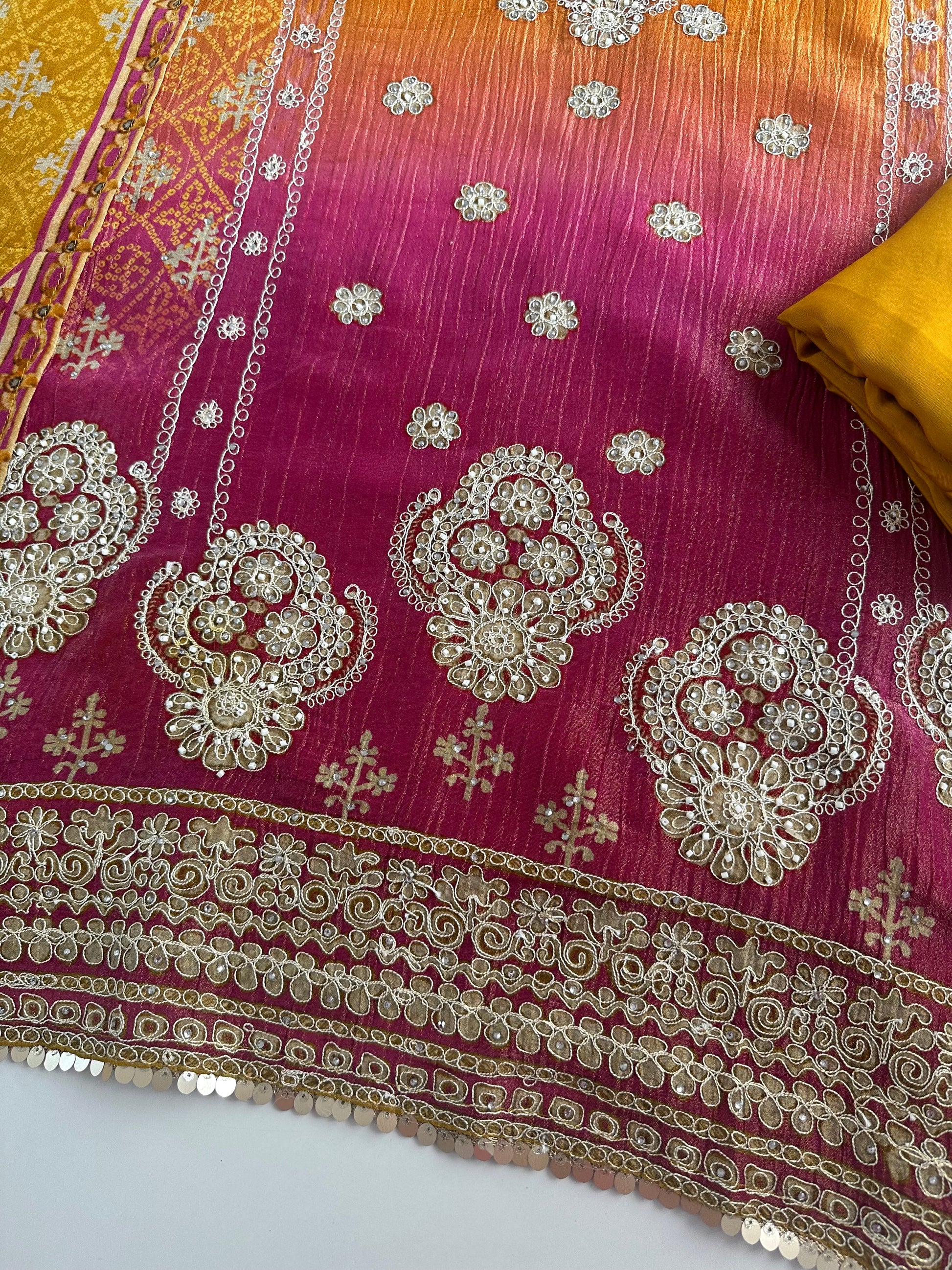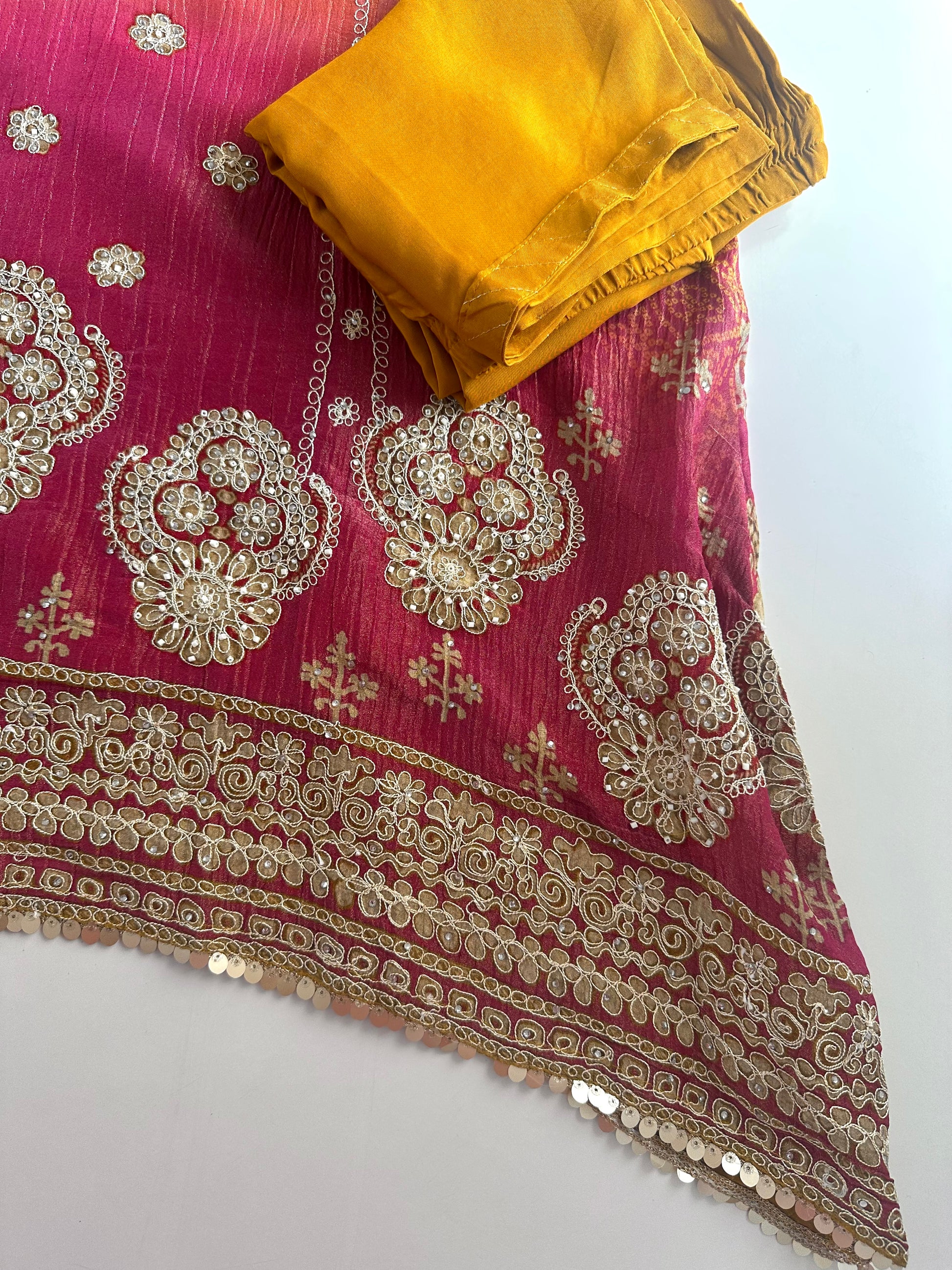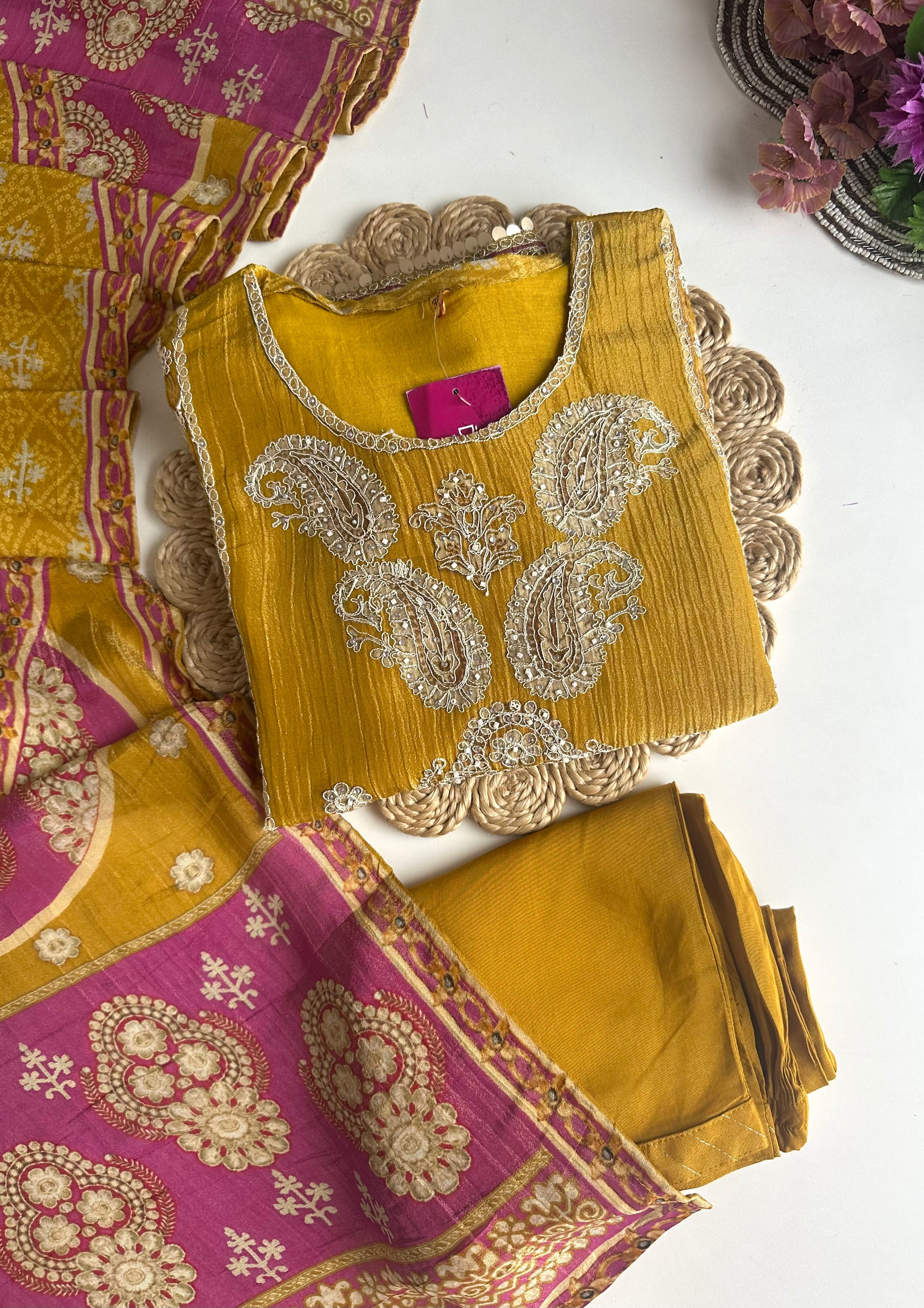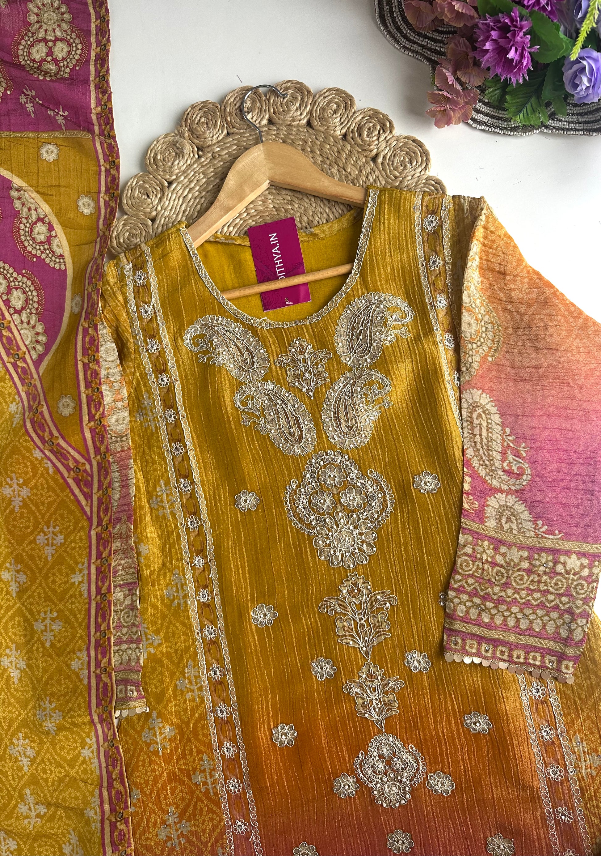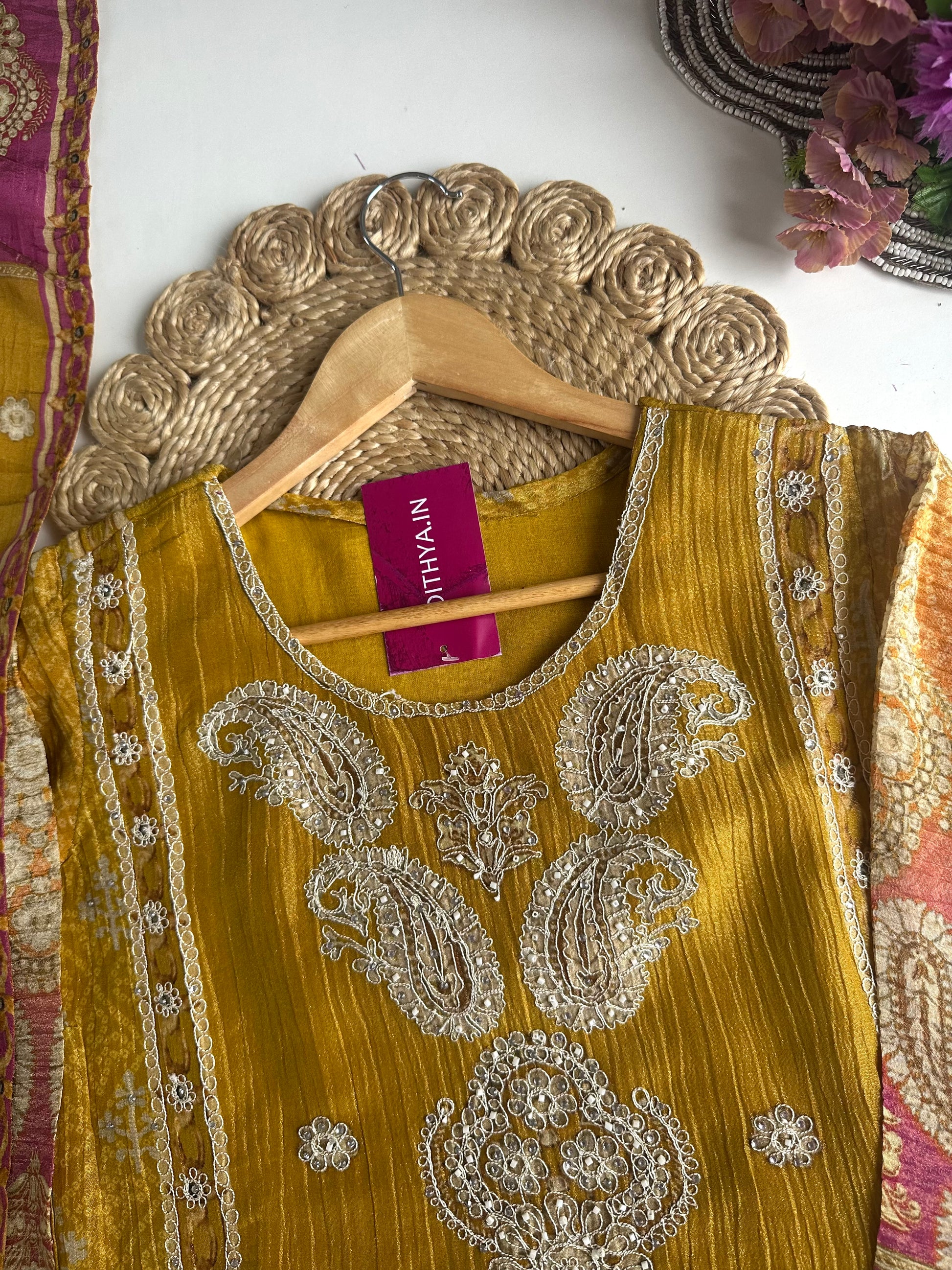 K004 - Crushed tissue handwork Aline Kurti with pants and dupatta