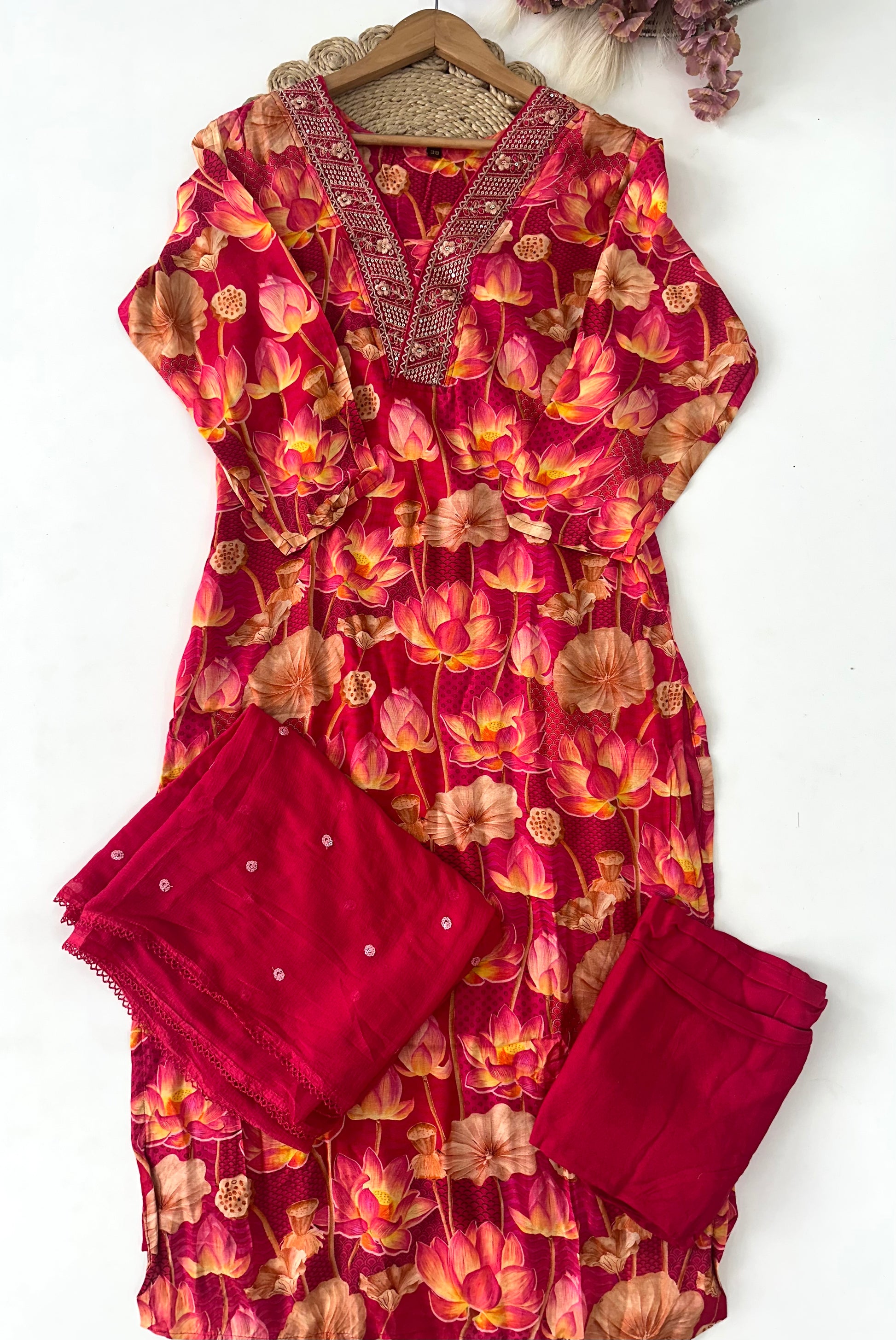 D227 - Muslin silk straight kurti with pants and dupatta