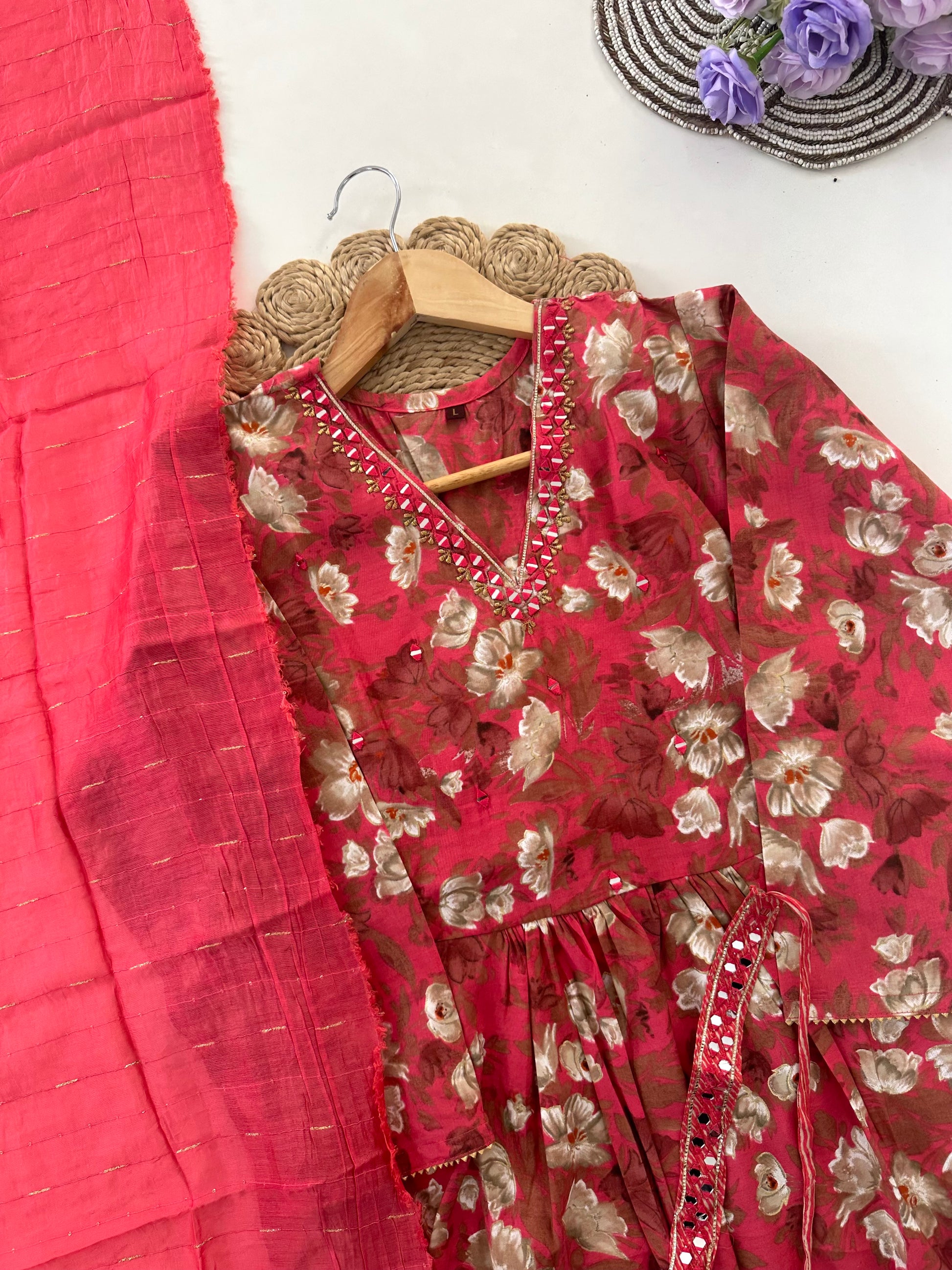 D033 -Muslin Alia cut Anarkali with pants and dupatta