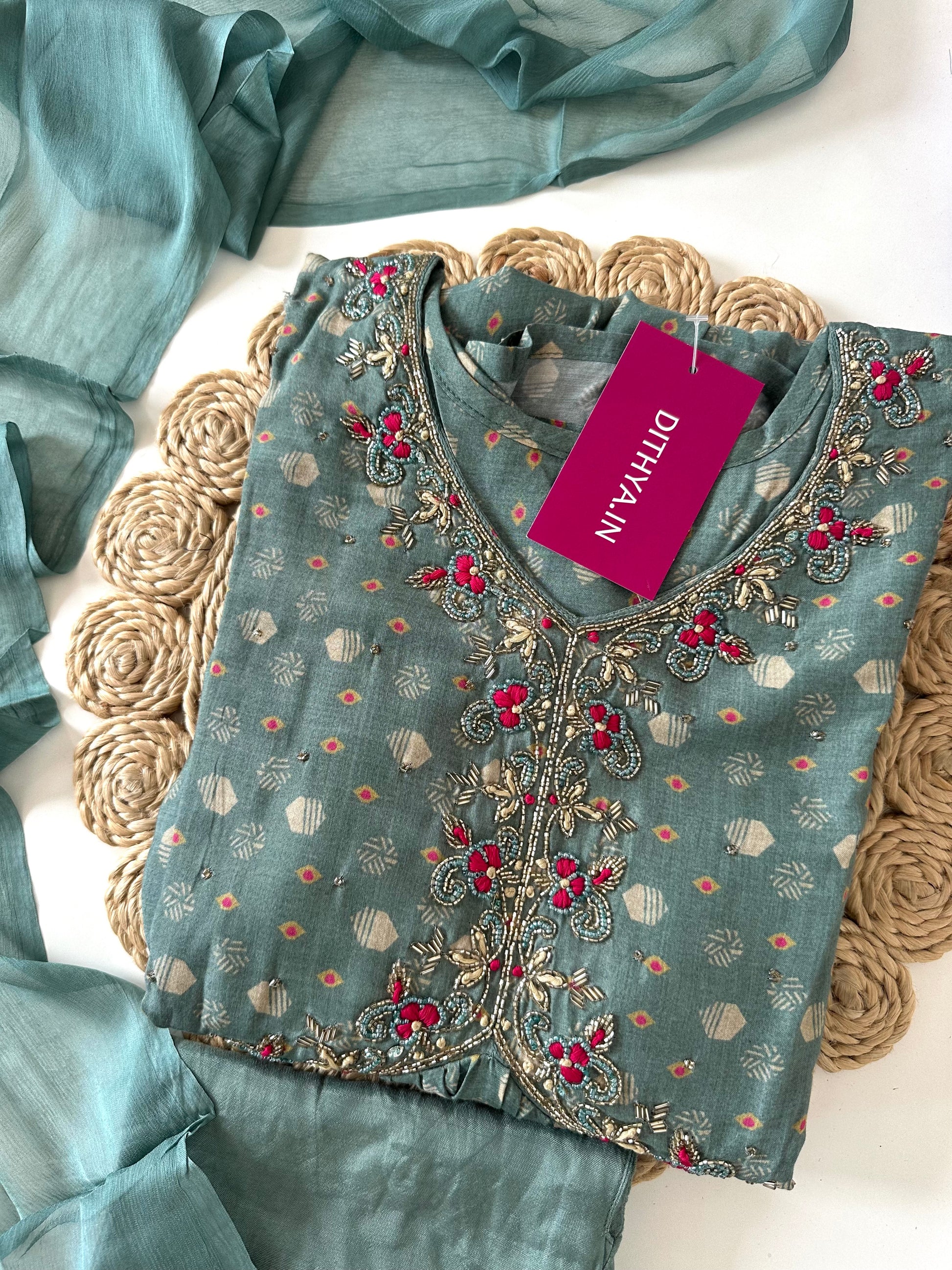 D122 - Muslin Alia cut Anarkali with pants and dupatta