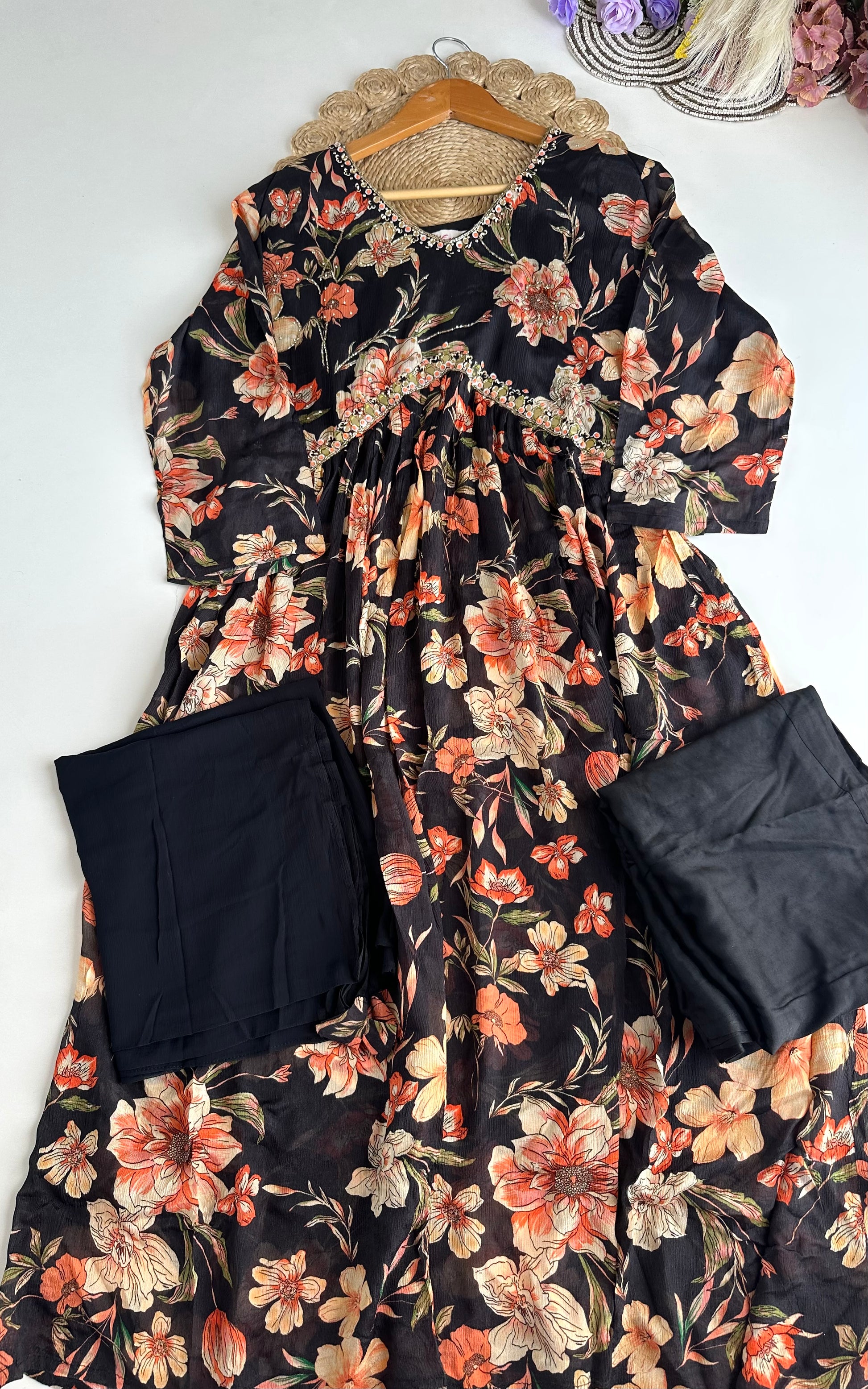 D154 - Chinnon Silk Alia cut Anarkali with pants and dupatta