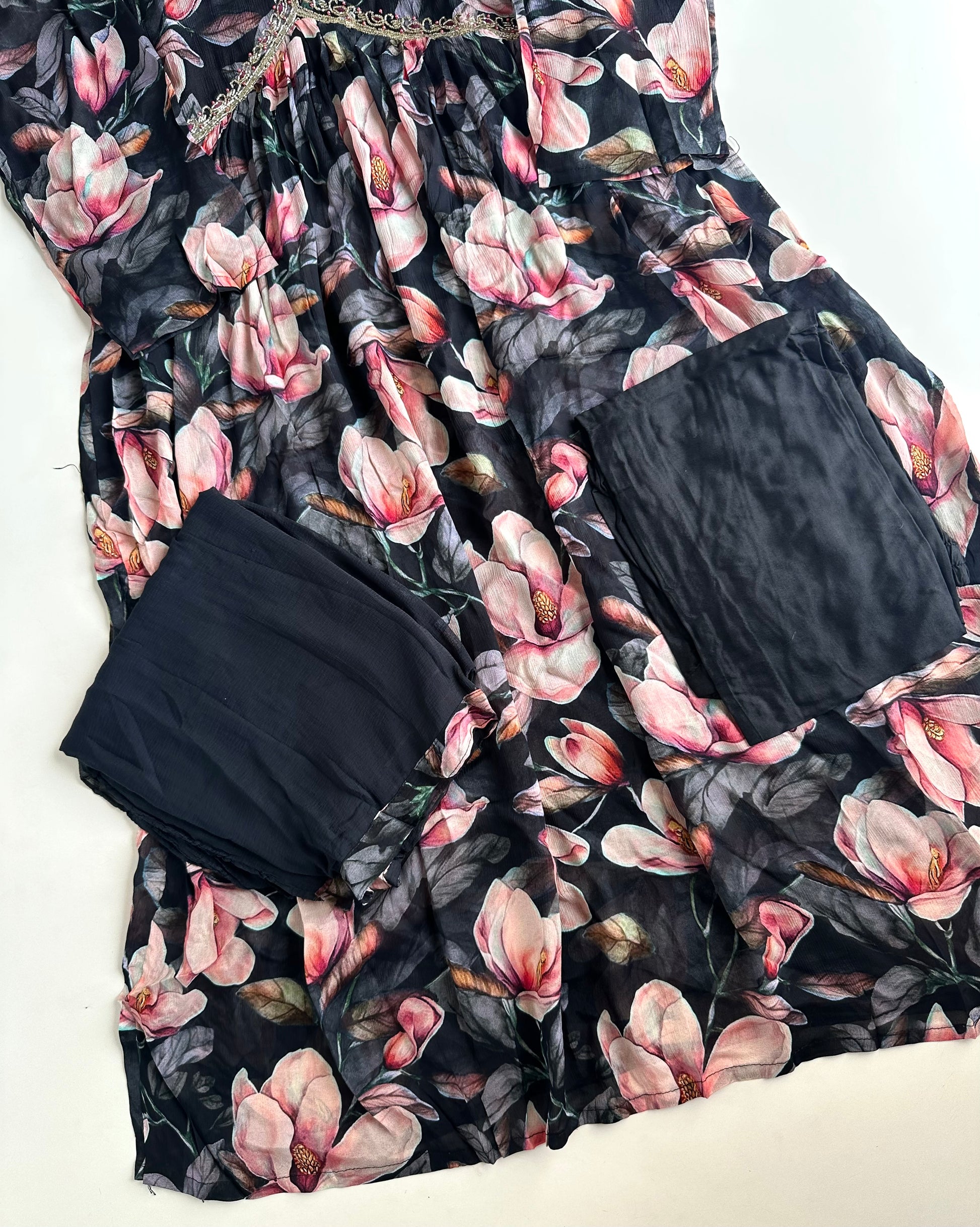 D182 - Chinnon Alia cut Anarkali with pants and dupatta