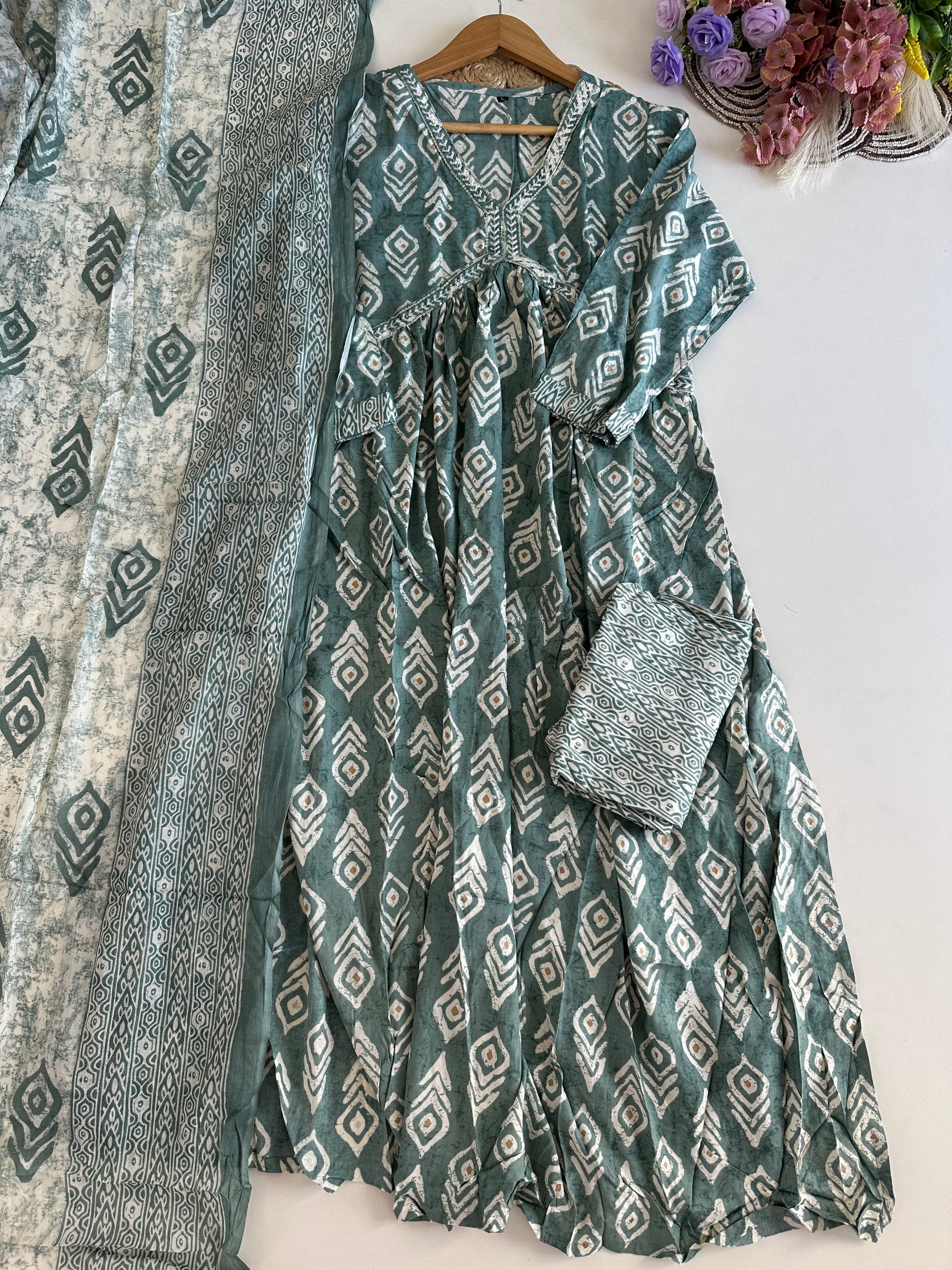 D353 - Mul cotton Alia cut Anarkali with pants and dupatta