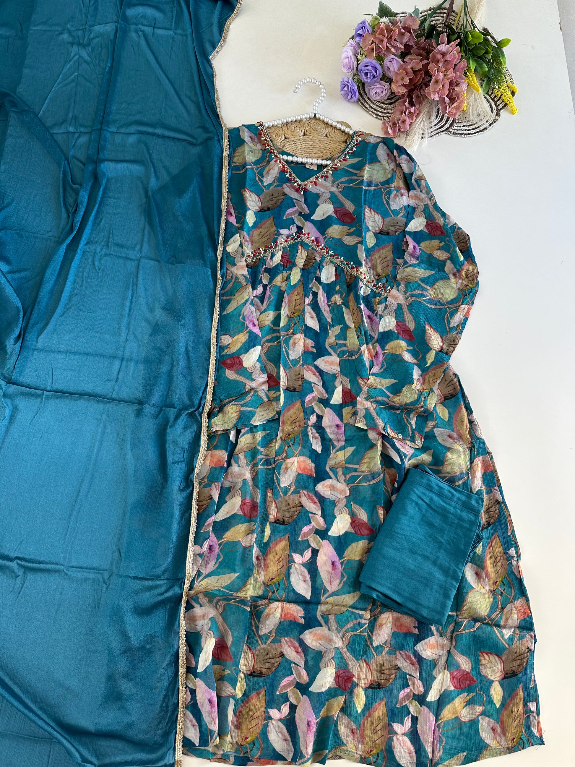 D388-Chinnon Alia cut Anarkali with pants and dupatta