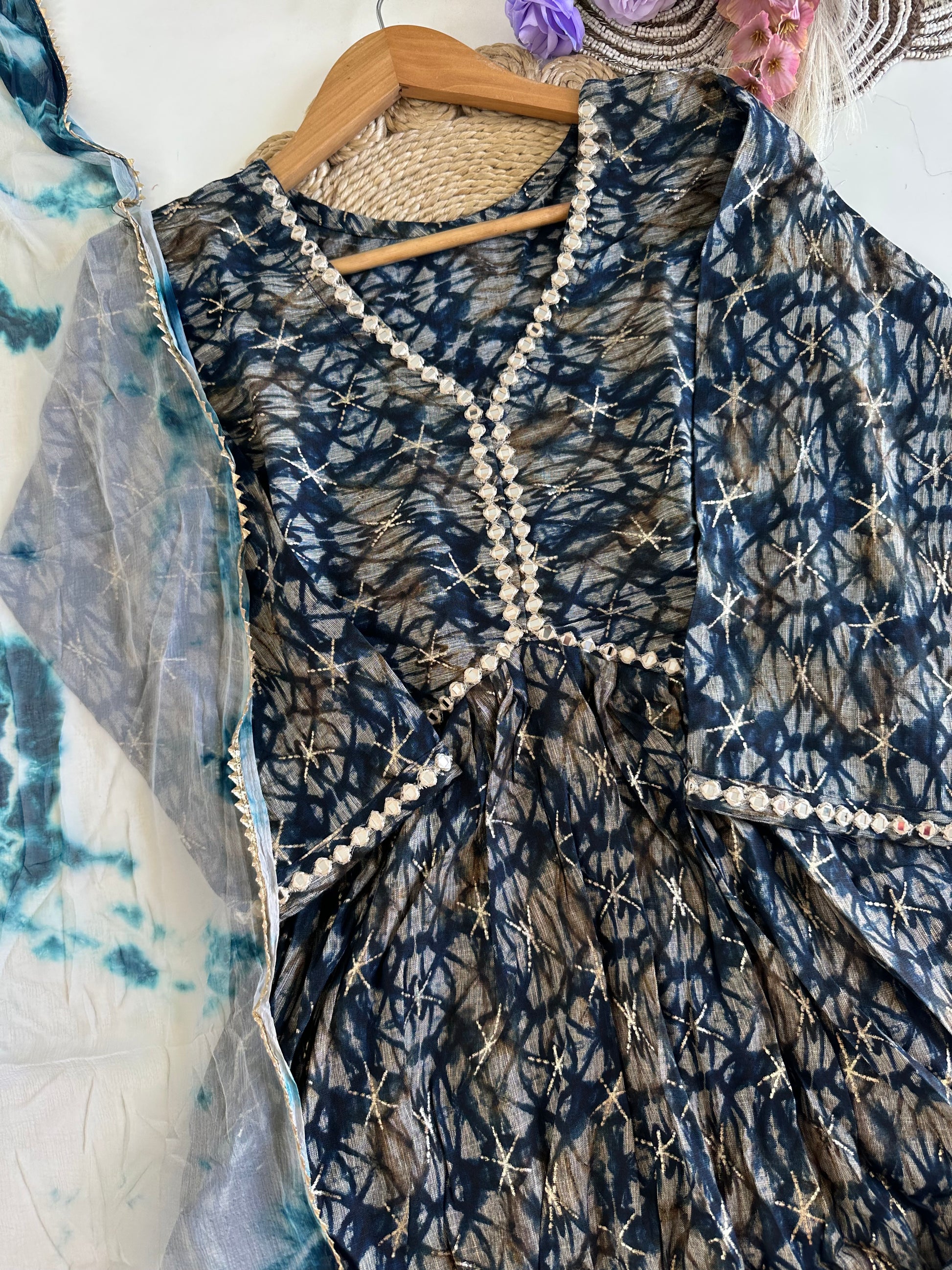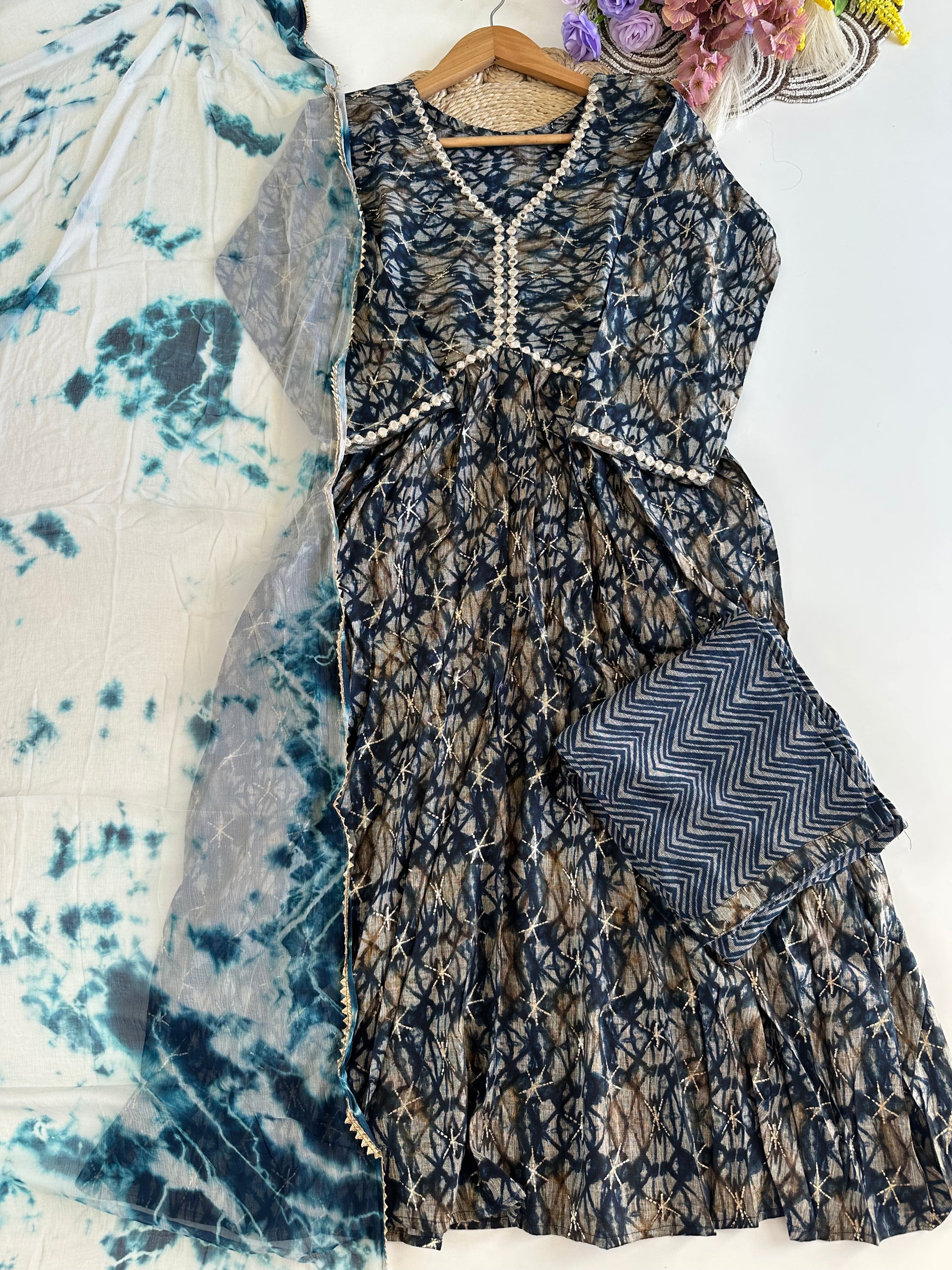 D400-Muslin Alia cut Anarkali with pants and dupatta