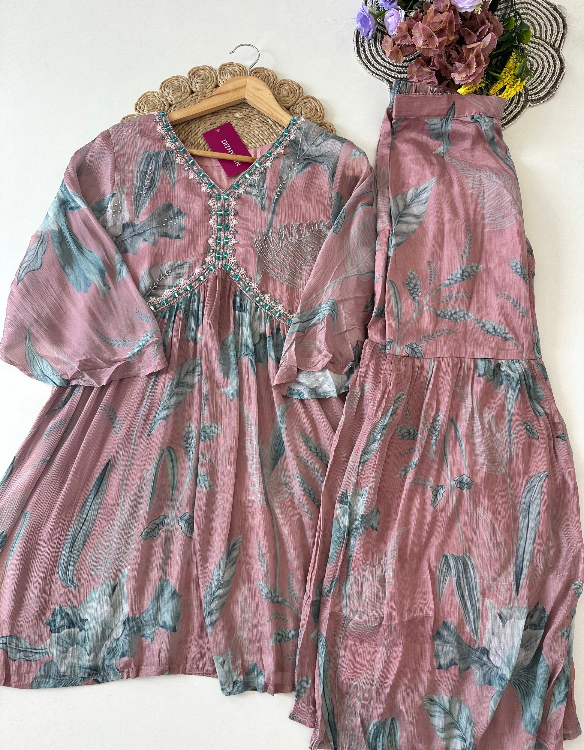 D010 -Chinnon Alia cut Anarkali with sharara pants