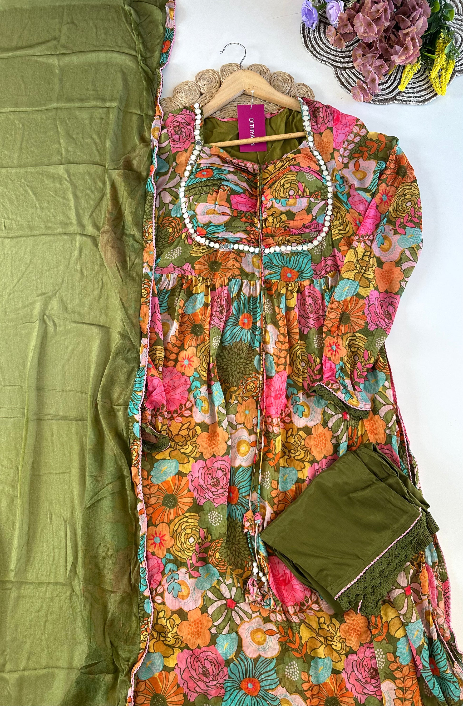D009 - Chinnon Alia cut Anarkali with pants and dupatta