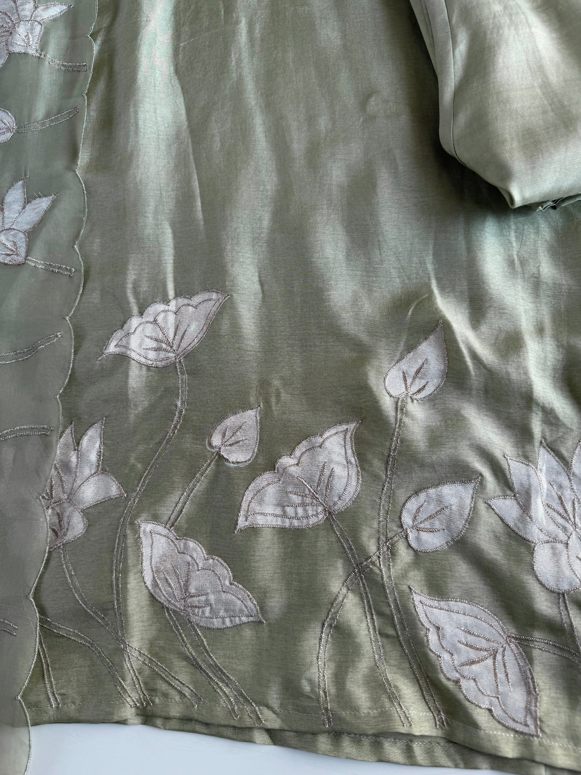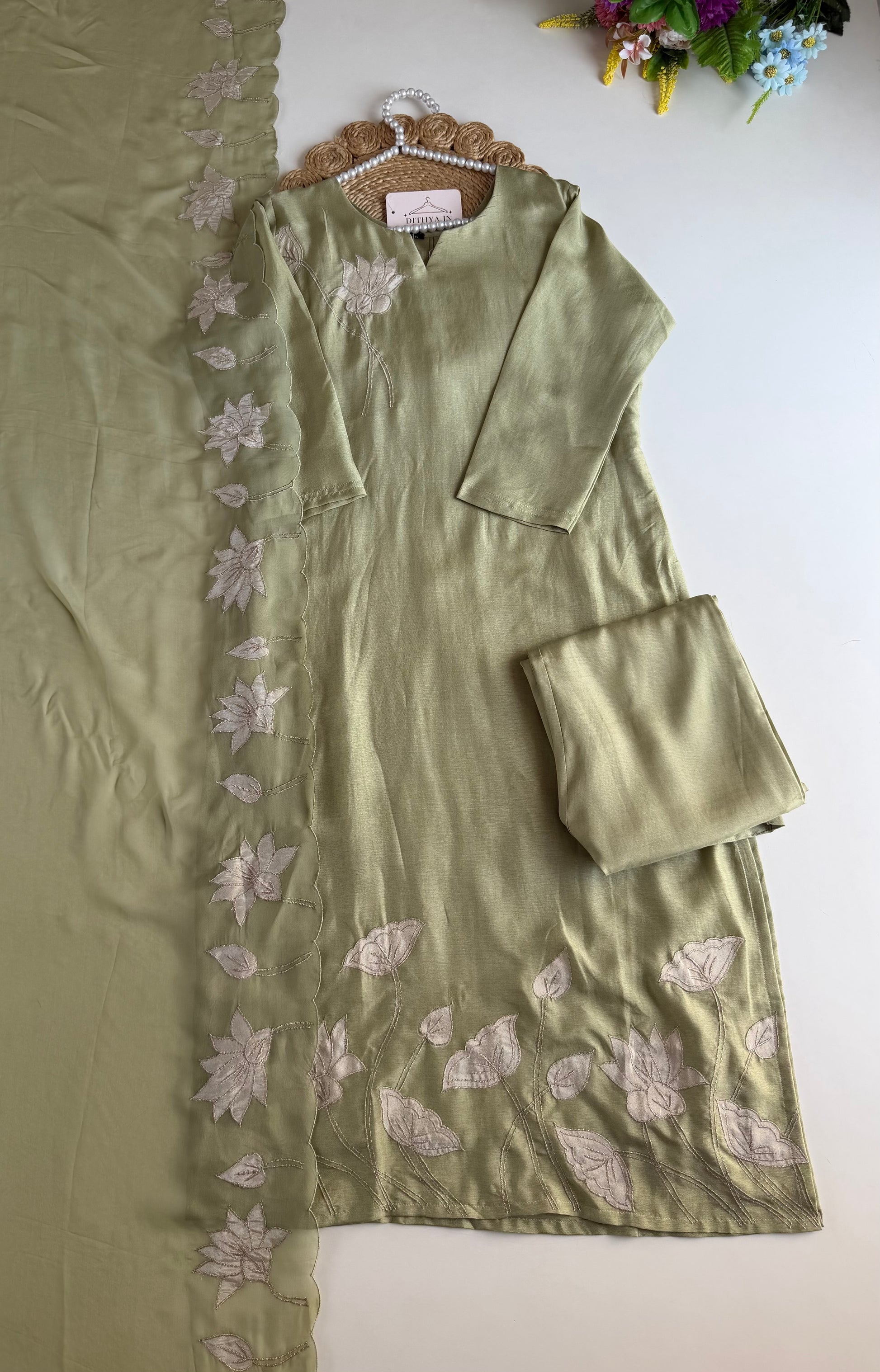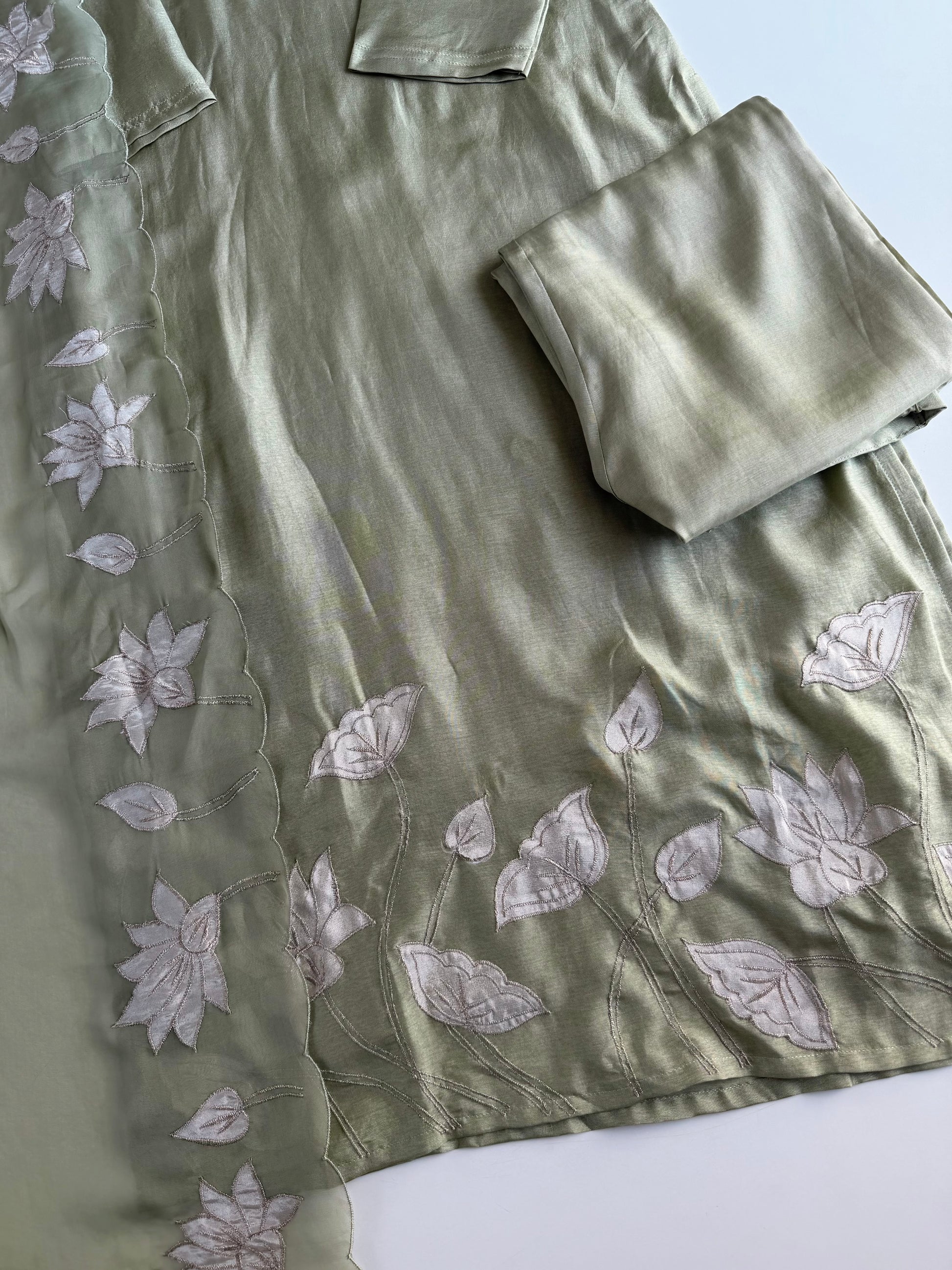 K229 - Dola silk appliqué work straight Kurti with pants and dupatta