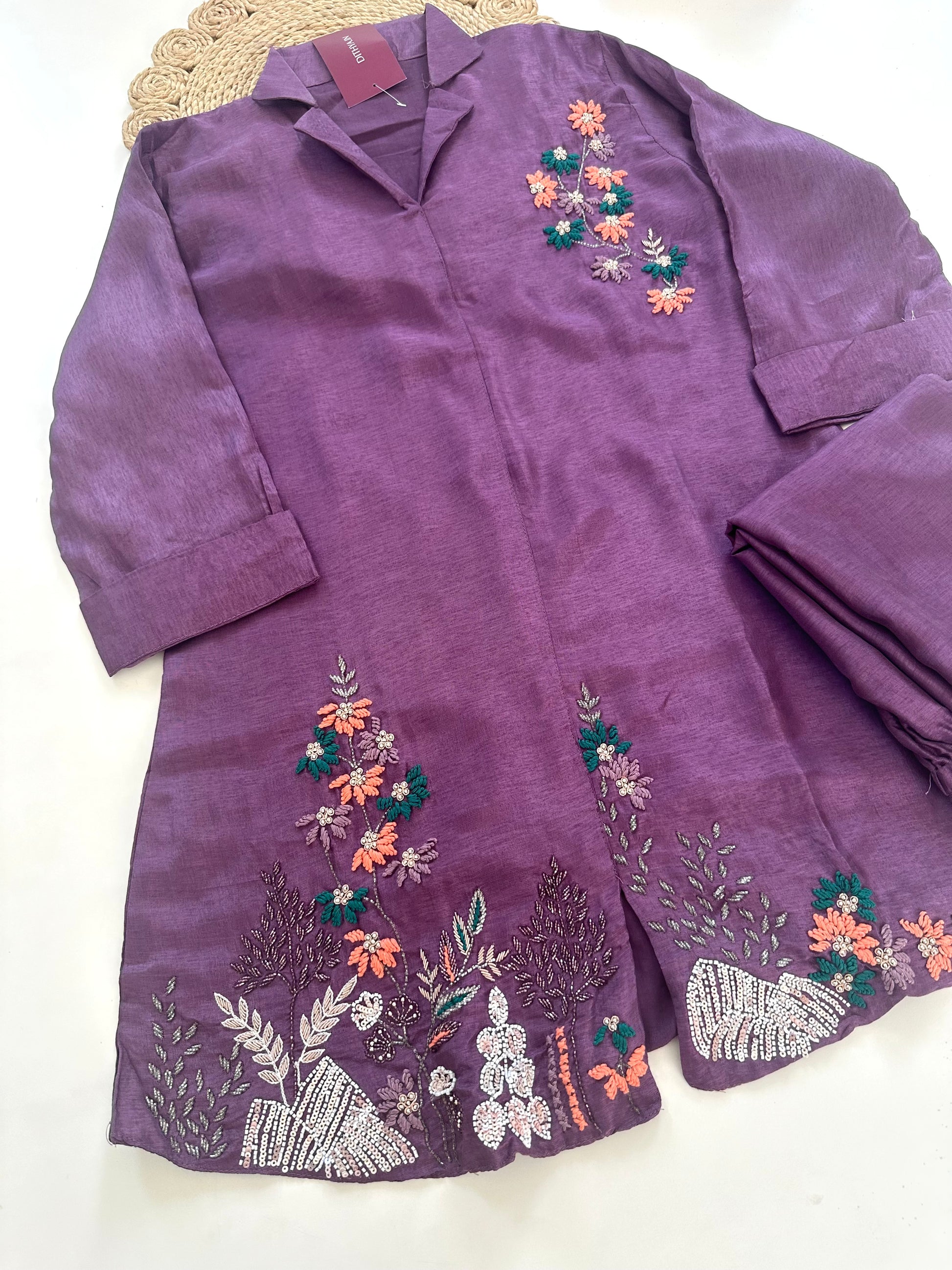 Indulge in luxury with our K413 - Dola silk handwork coord set. Made from high-quality Dola silk, this coord set features exquisite handwork details for a unique touch. Elevate your style and make a statement at any occasion. Expertly crafted with comfort and elegance in mind.