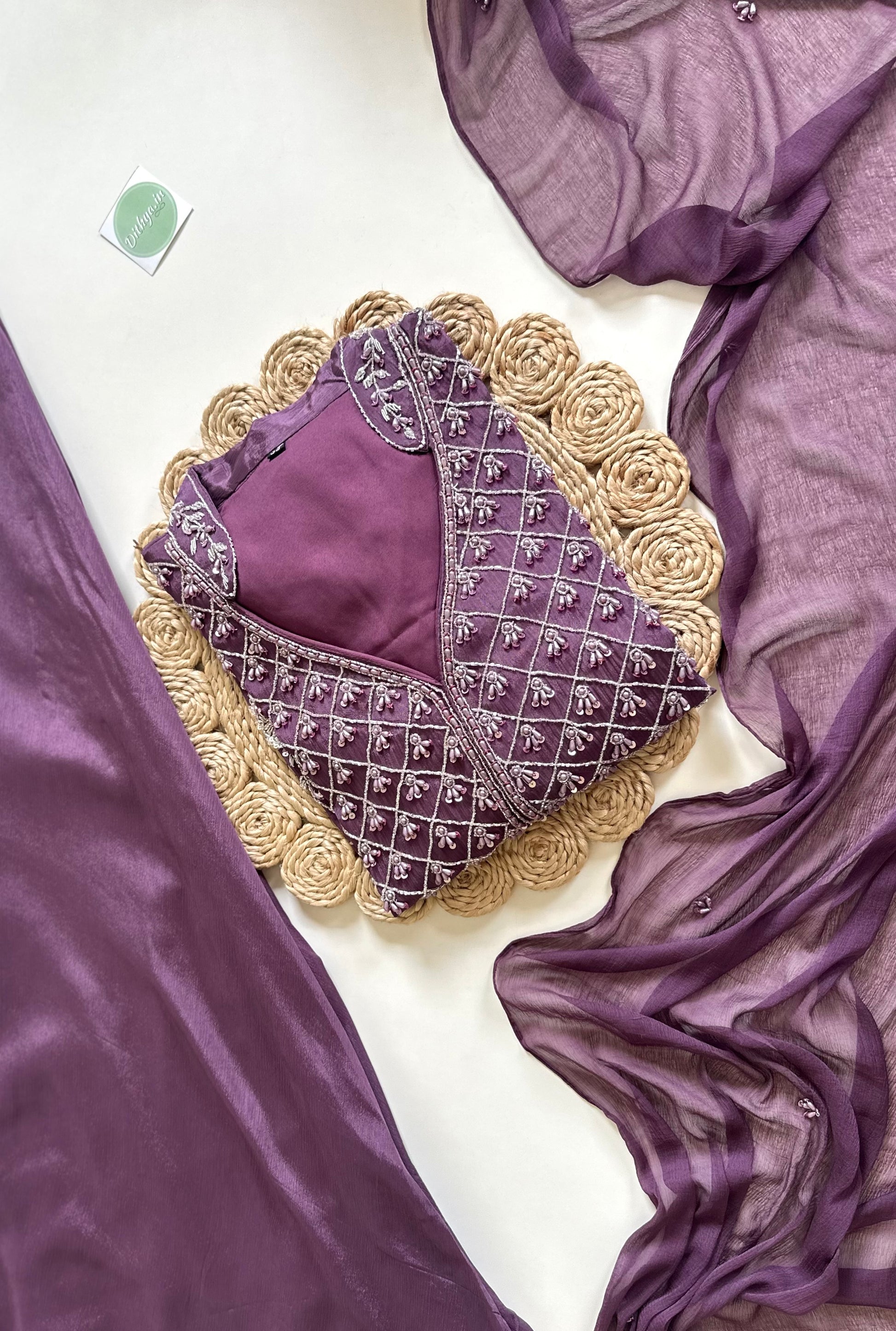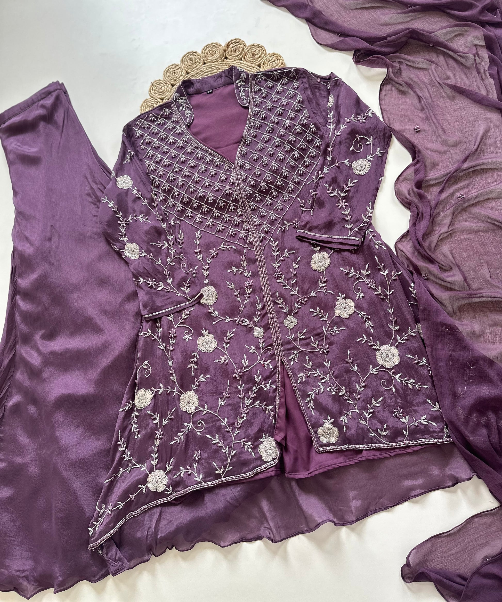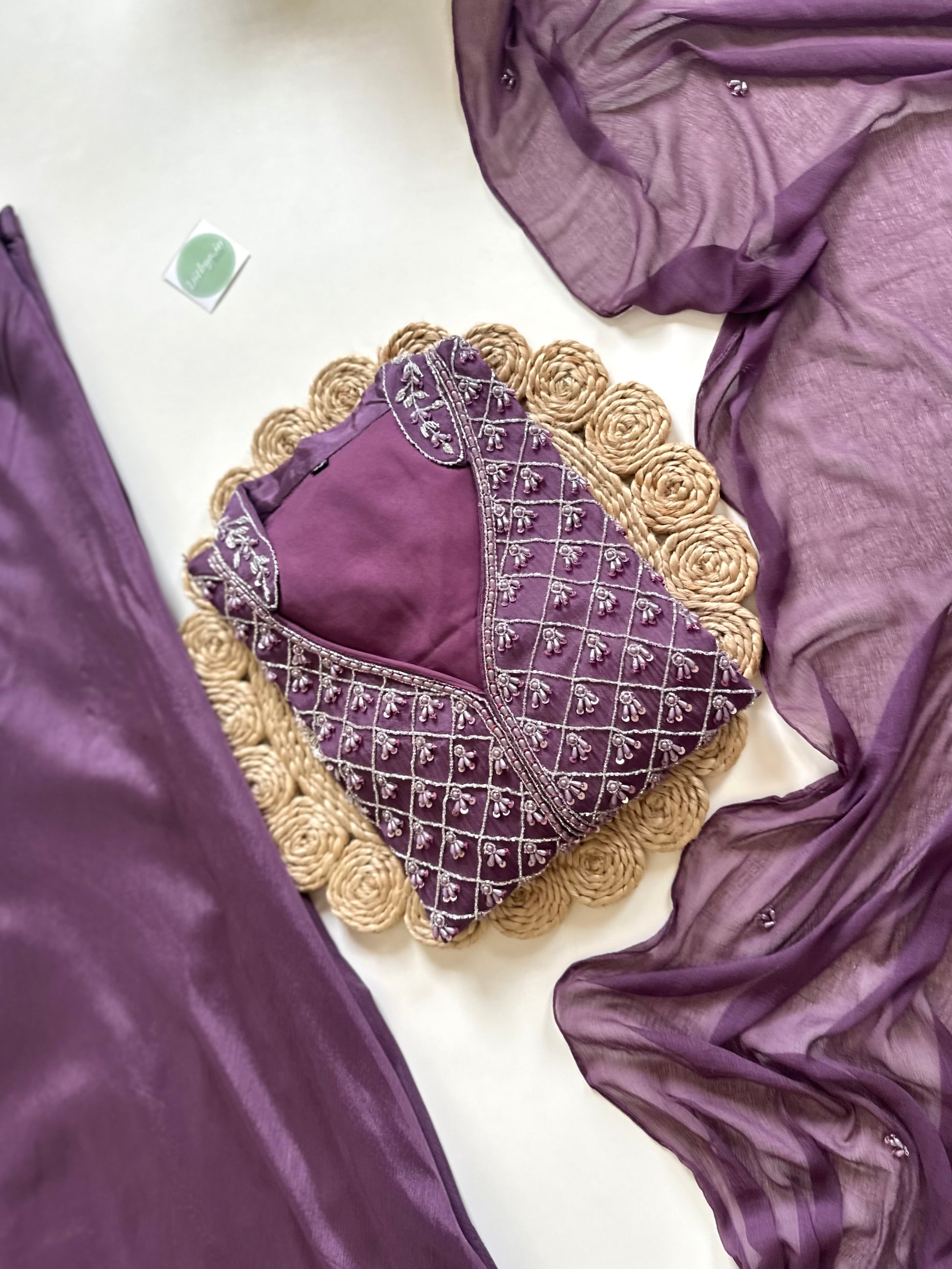 K030 - Heavy handwork Chinnon Short Top with palazzo and dupatta .
