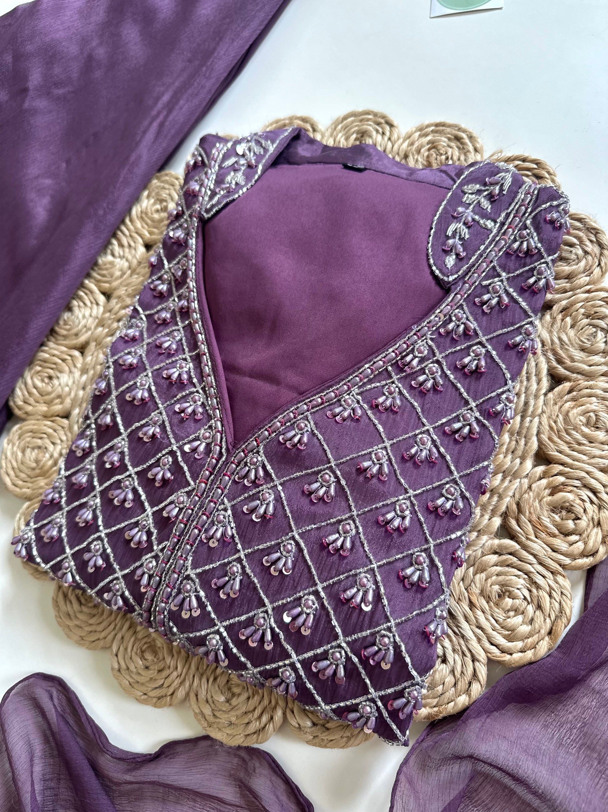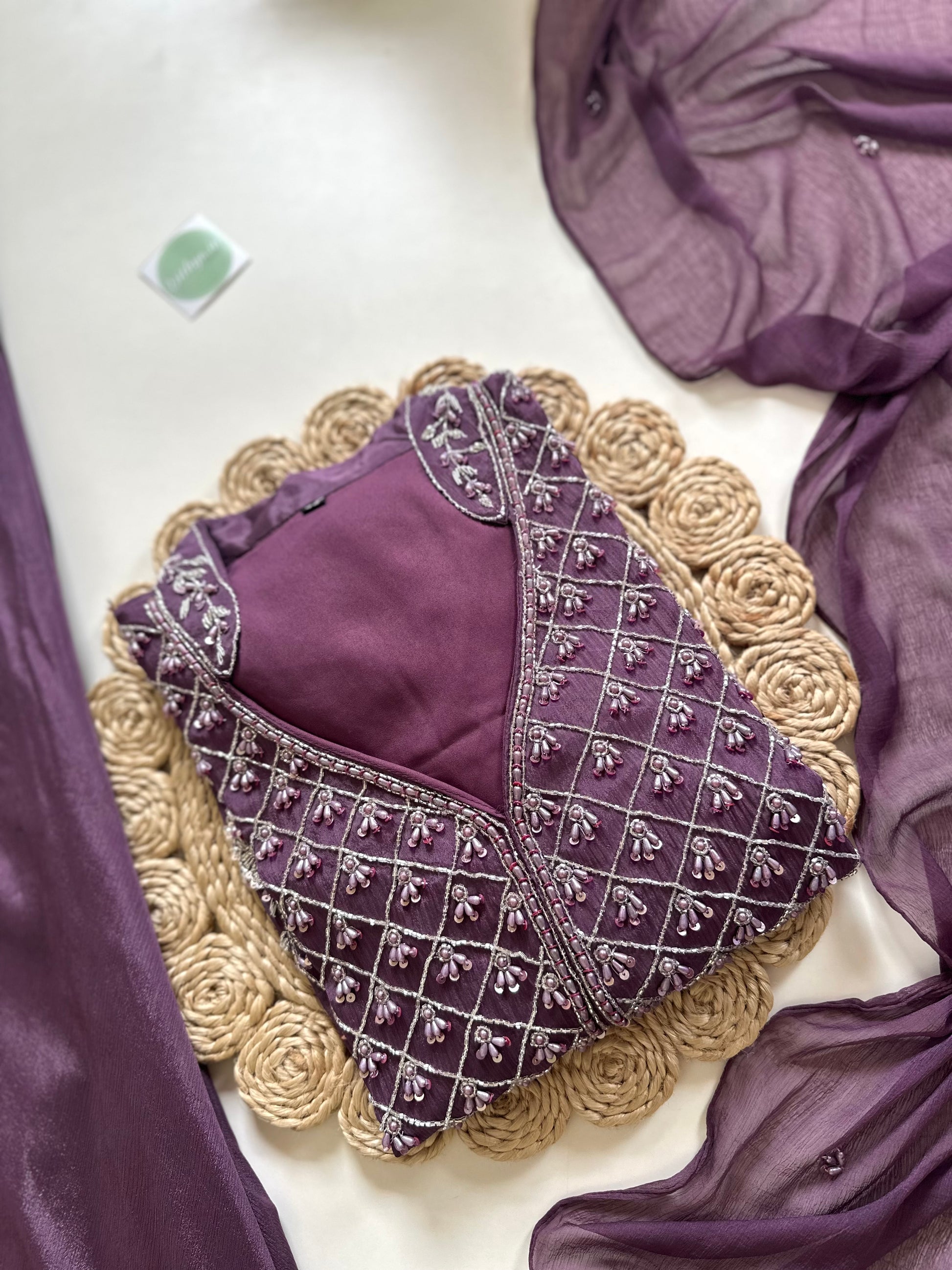 Elevate your style with the Heavy handwork Short Top. The intricate handwork adds a touch of elegance to this versatile piece. Pair it with the flowy palazzo and matching dupatta for a complete look. Perfect for any occasion, this set is a must-have in your wardrobe.