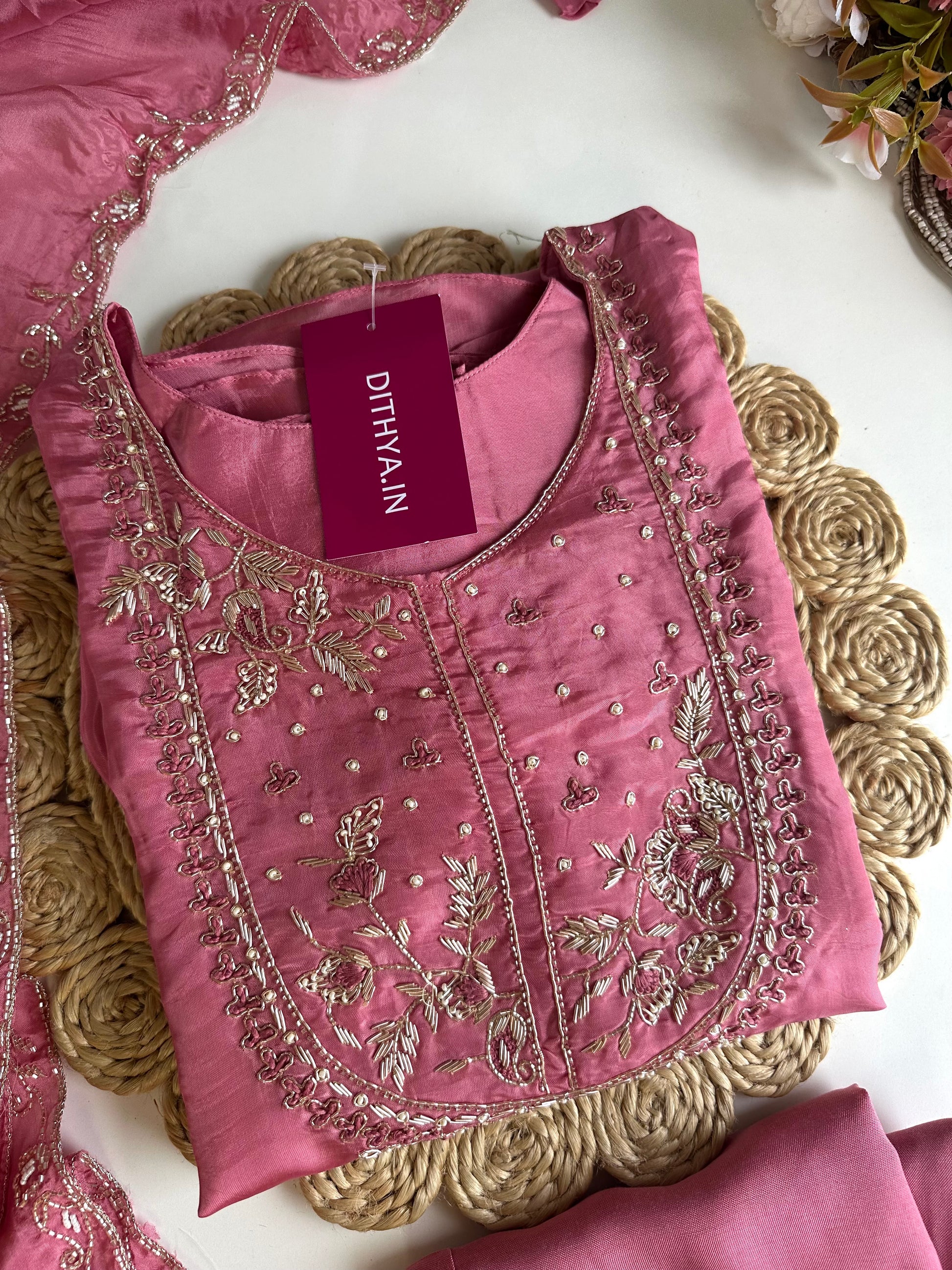 Elevate your style with our luxurious K470 - HO silk handwork Aline Kurti set. This elegantly crafted set includes a flowing Aline Kurti, coordinating pants, and a delicate dupatta. Made from high-quality HO silk and adorned with intricate handwork, this set exudes sophistication and grace. Perfect for any occasion.