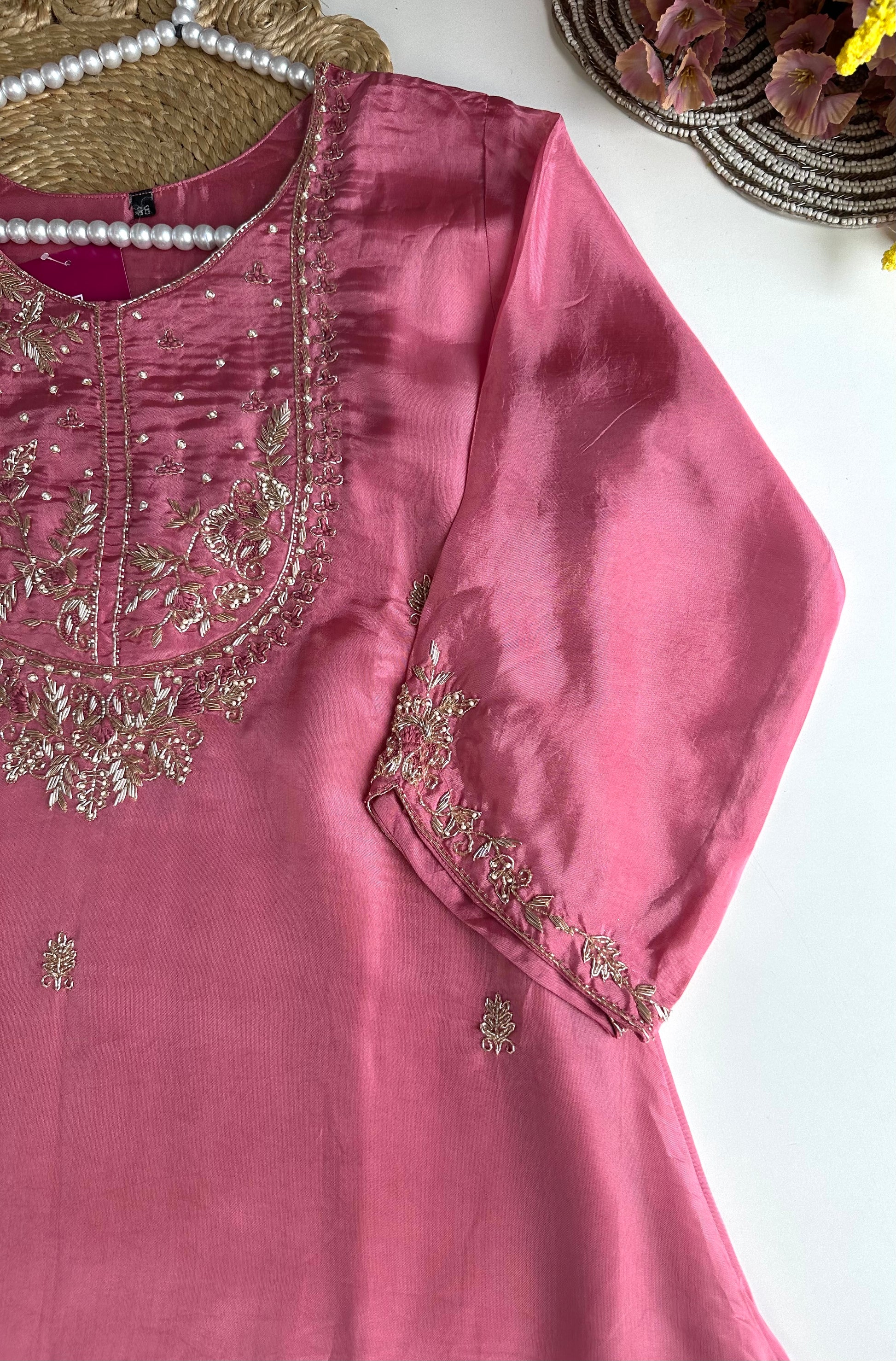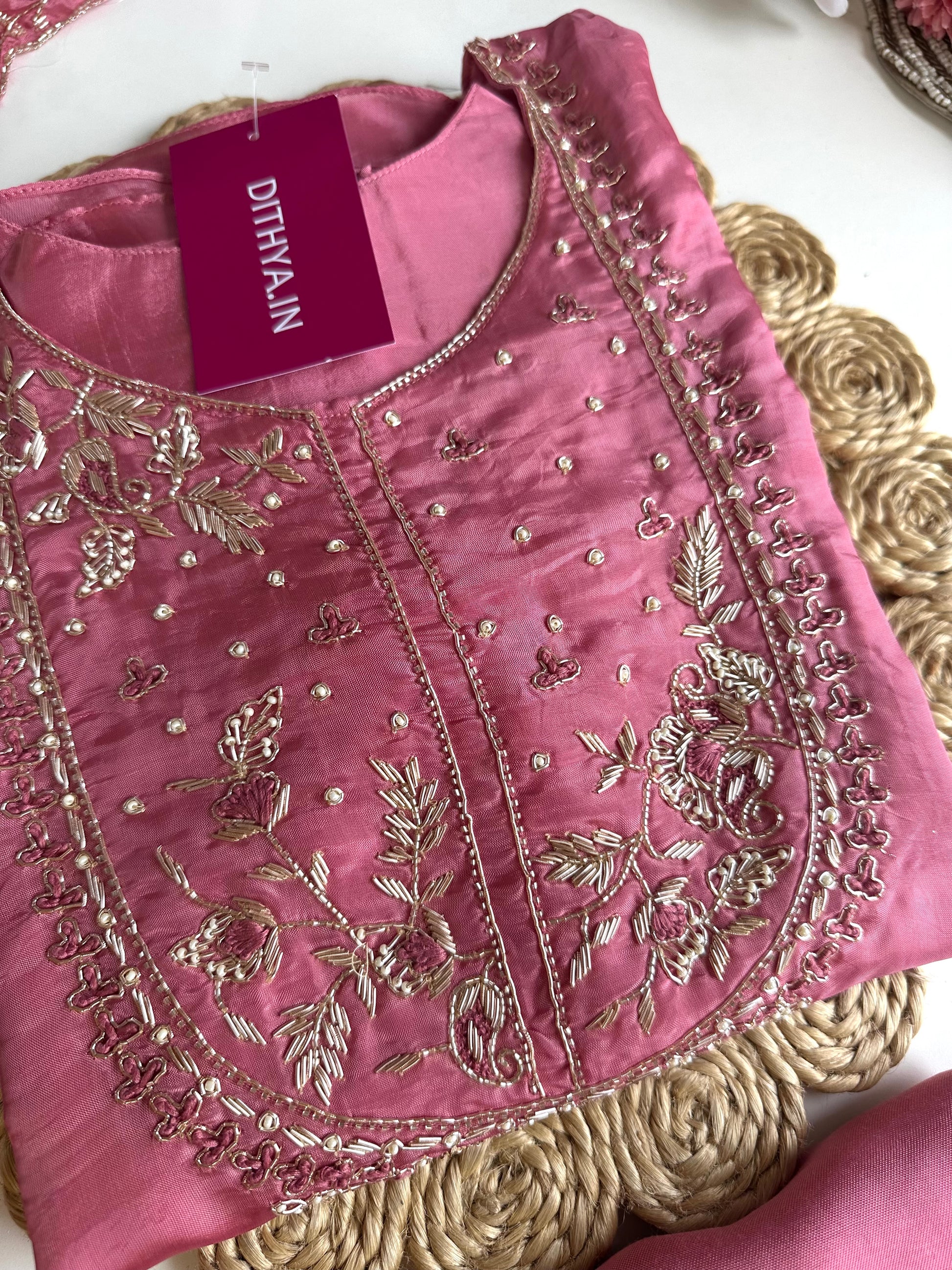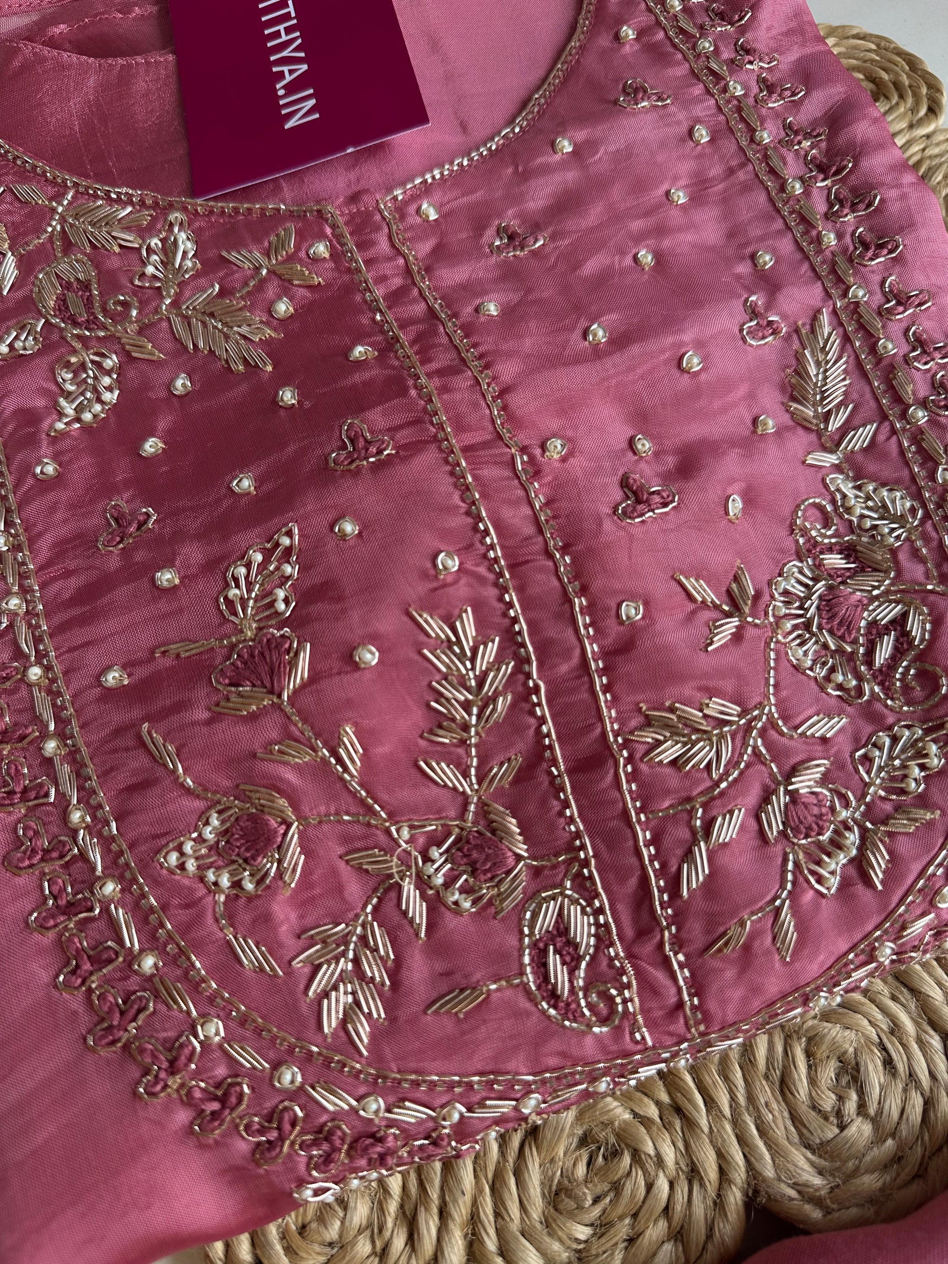 K470 - HO silk handwork Aline Kurti with pants and dupatta