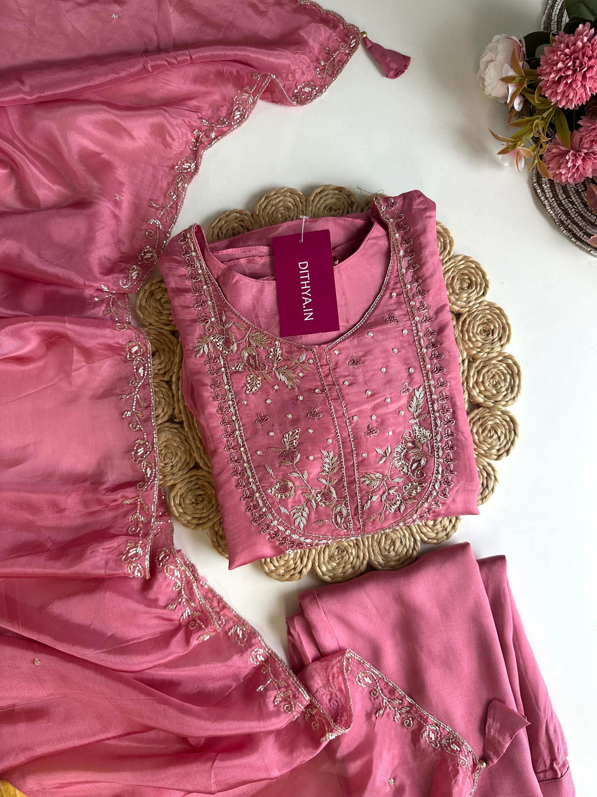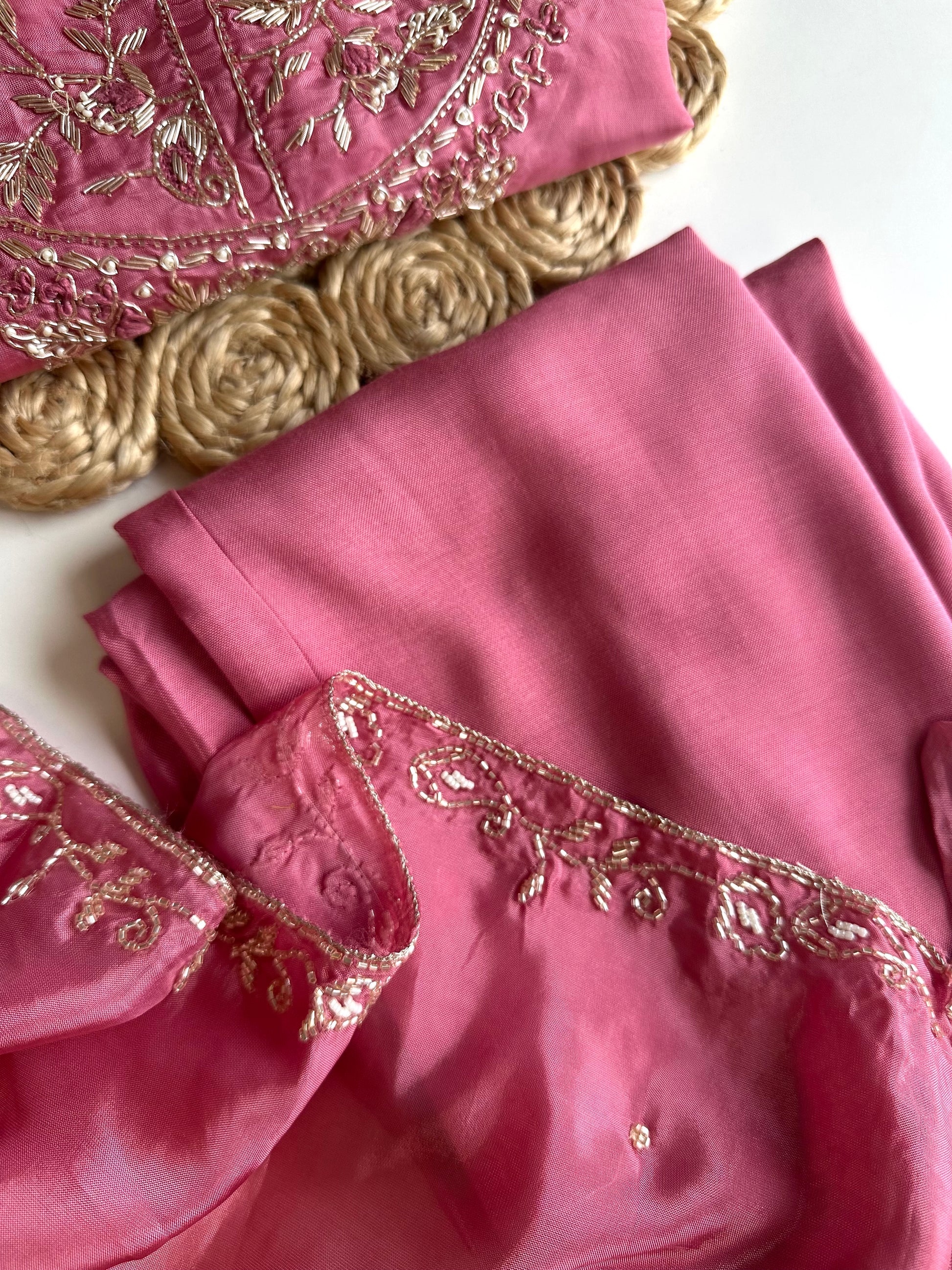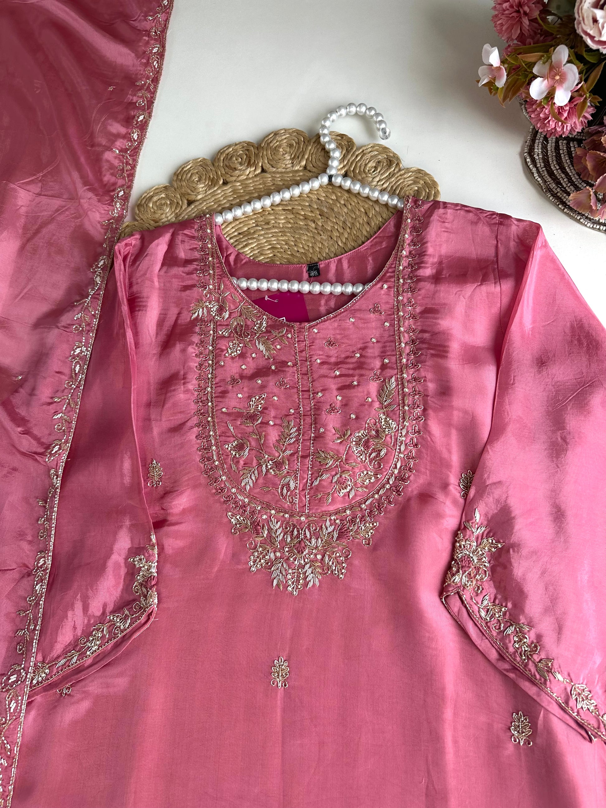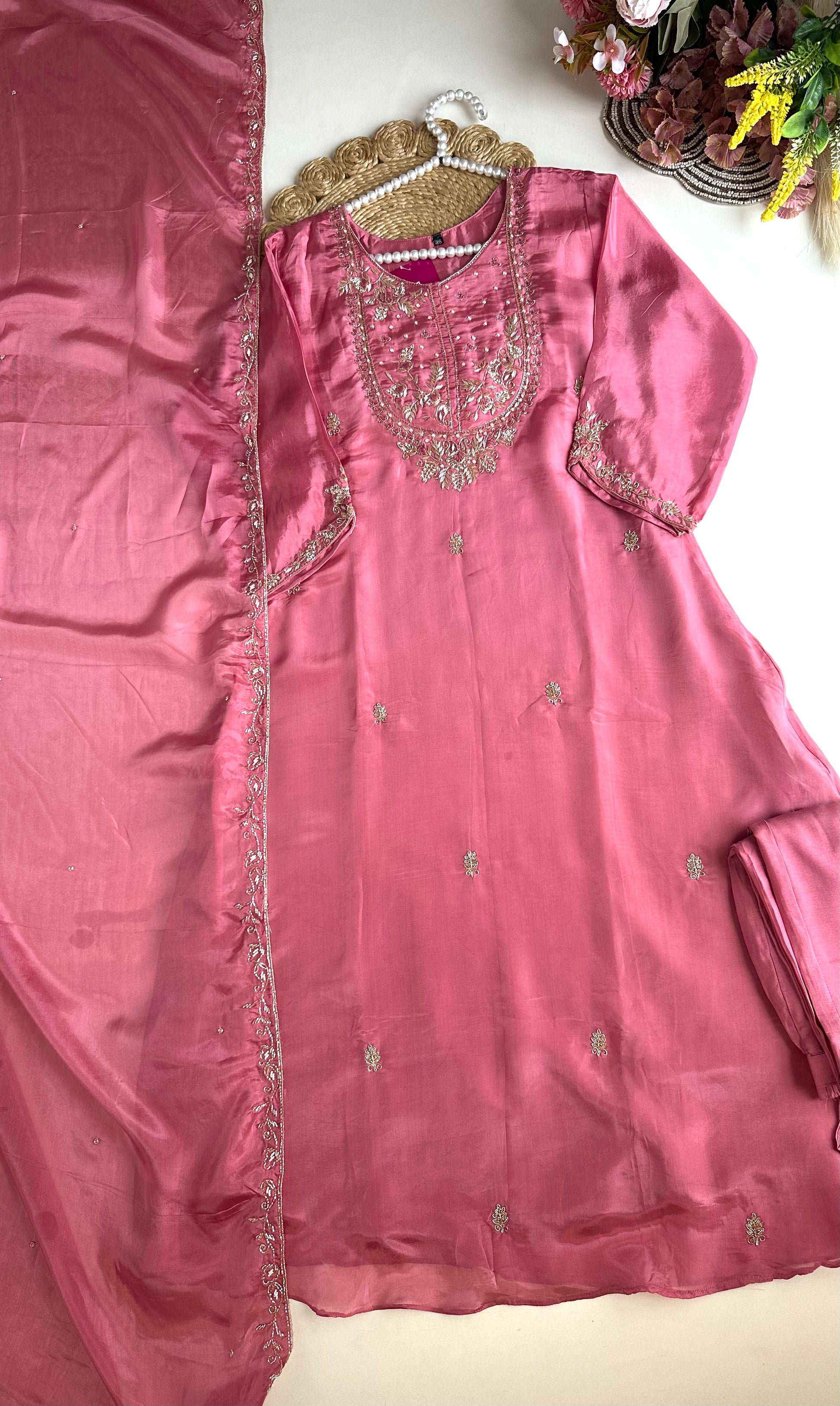 K470 - HO silk handwork Aline Kurti with pants and dupatta