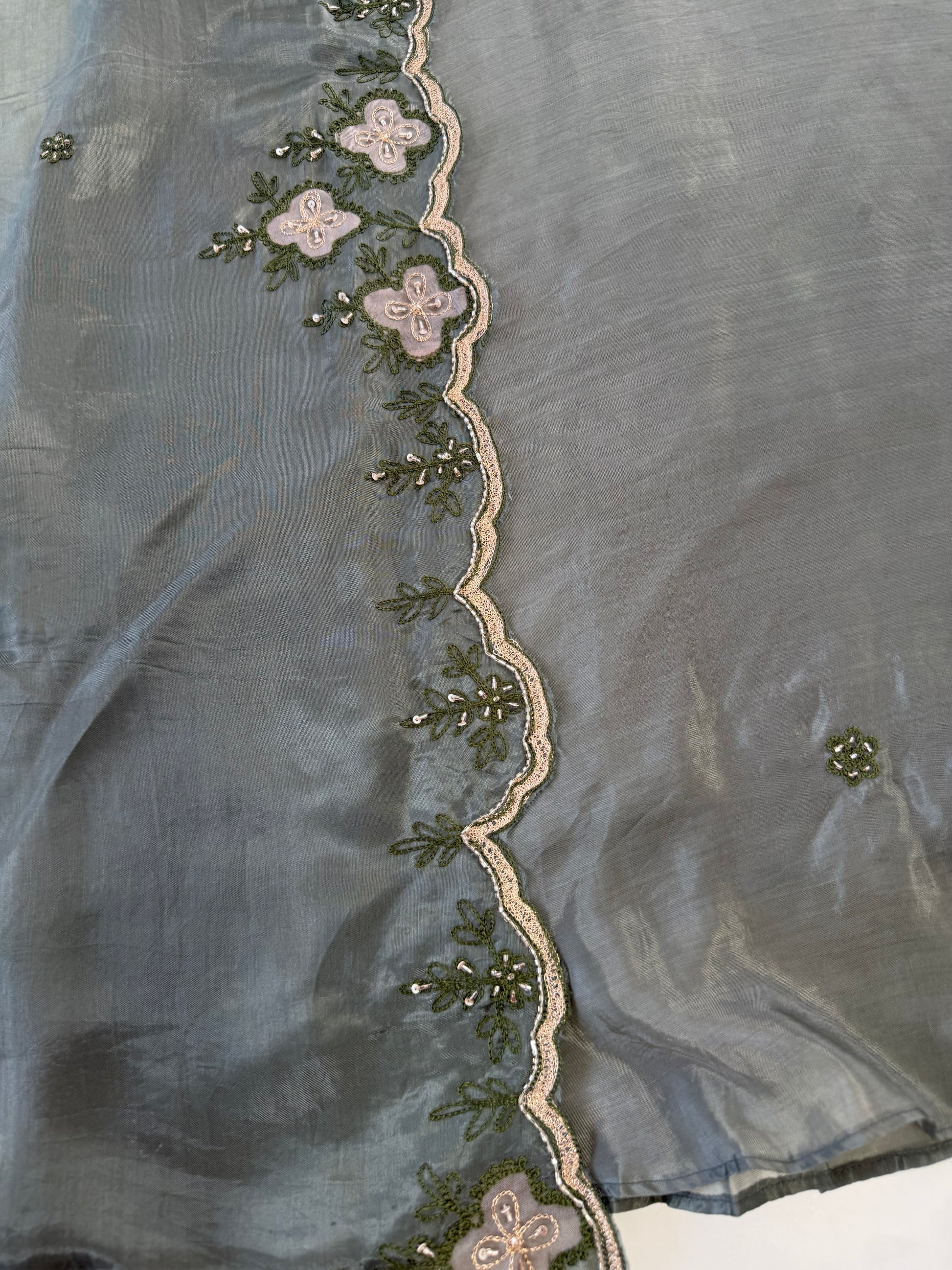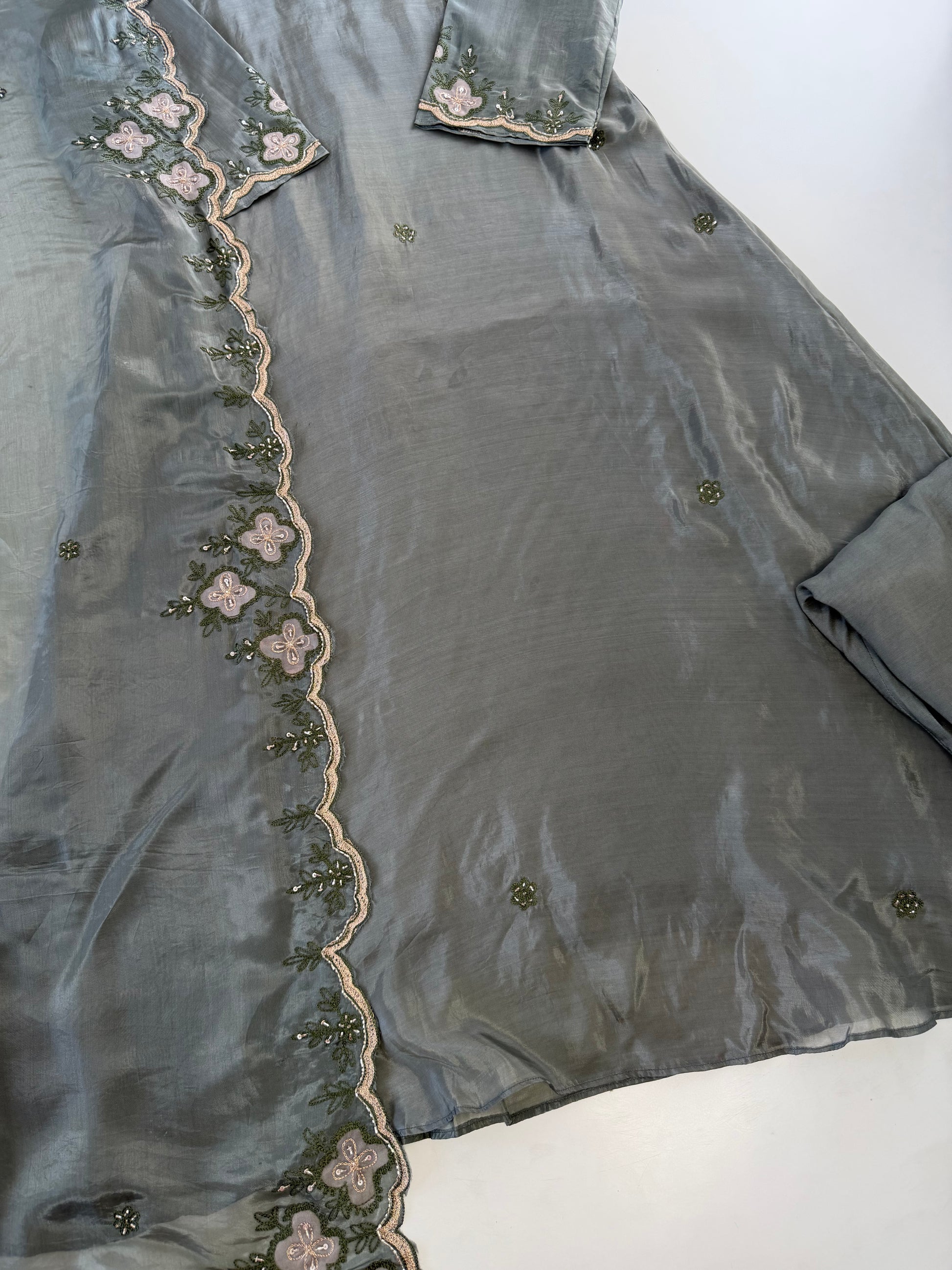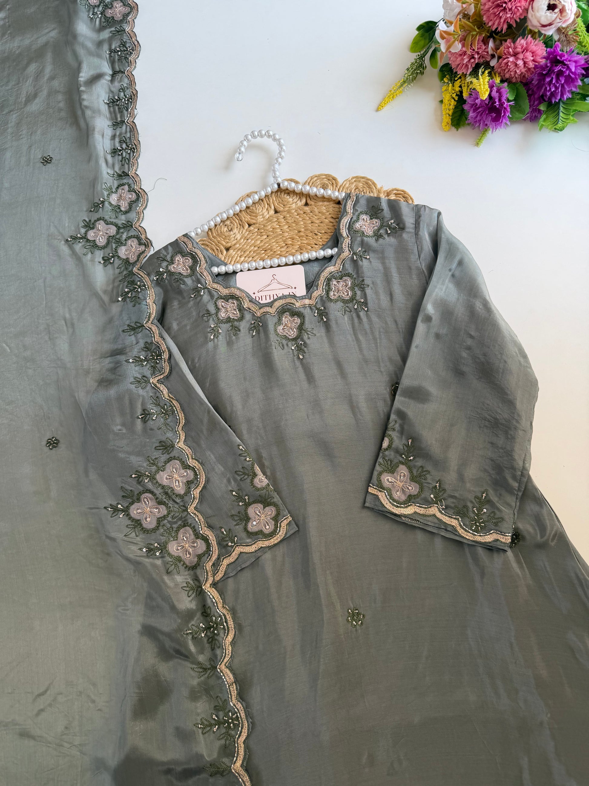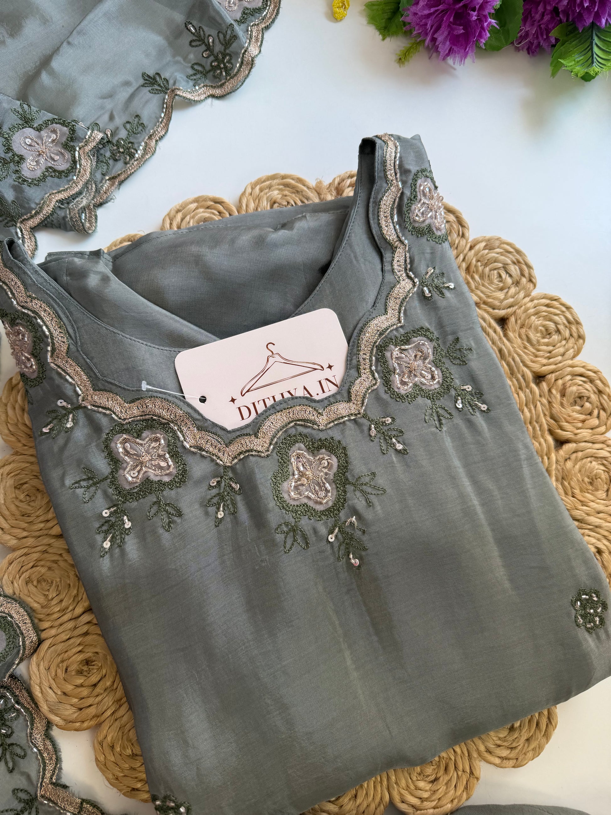 K191 - HO silk handwork aline Kurti with pants and dupatta