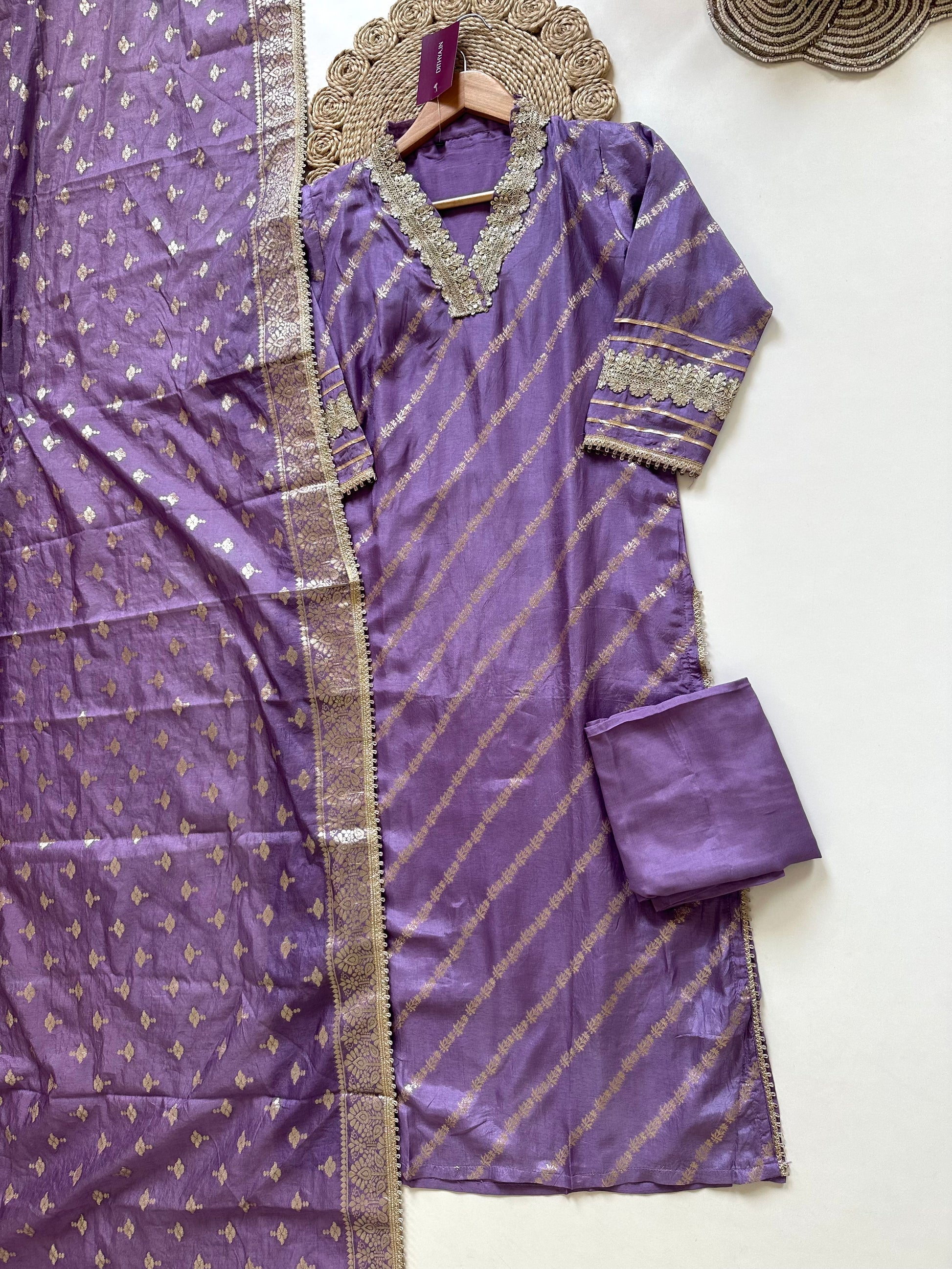 K318 - Jacquard silk Collar neck straight kurti with pants and dupatta