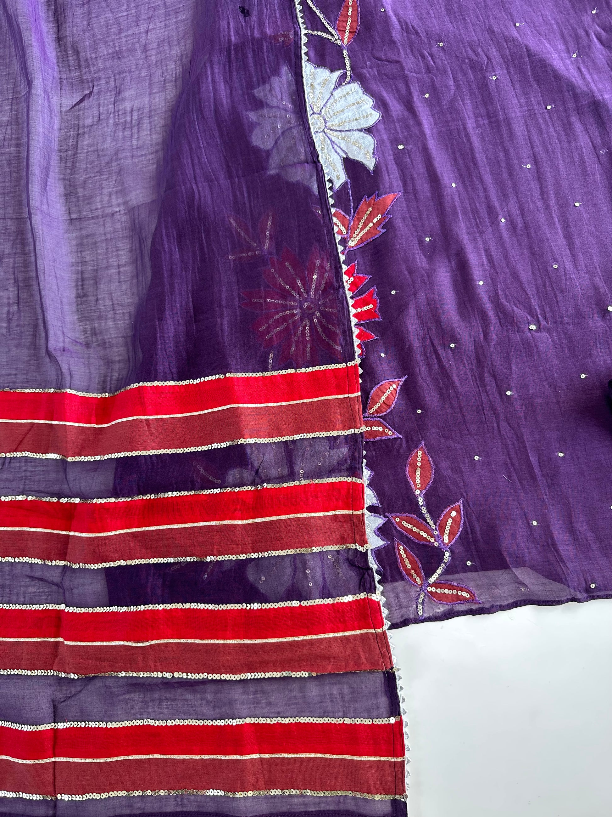 K484 - Mul Chanderi handwork Aline Kurti with pants and dupatta