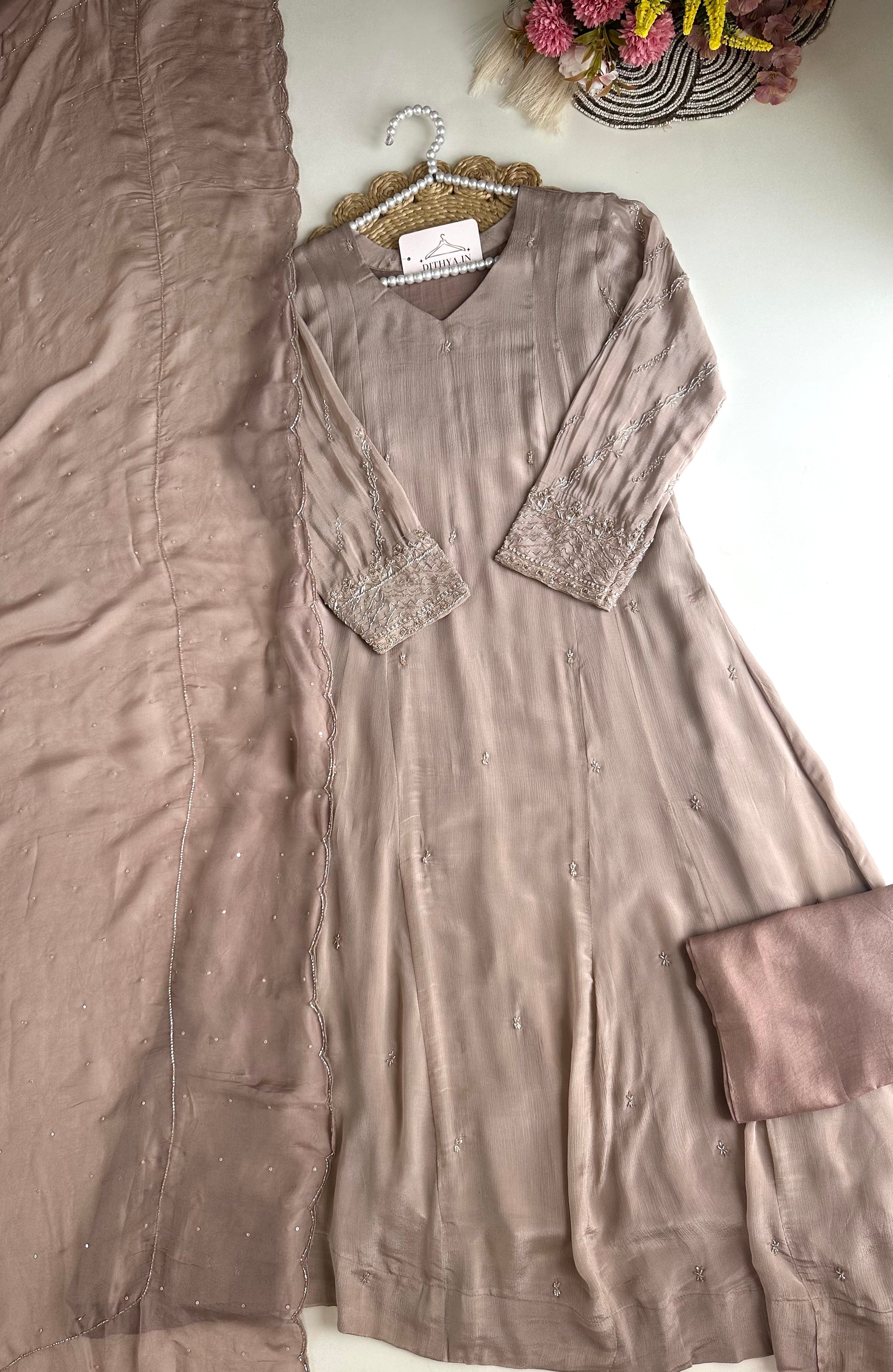 K488 - Pure Chinnon Handwork Anarkali with pants and dupatta