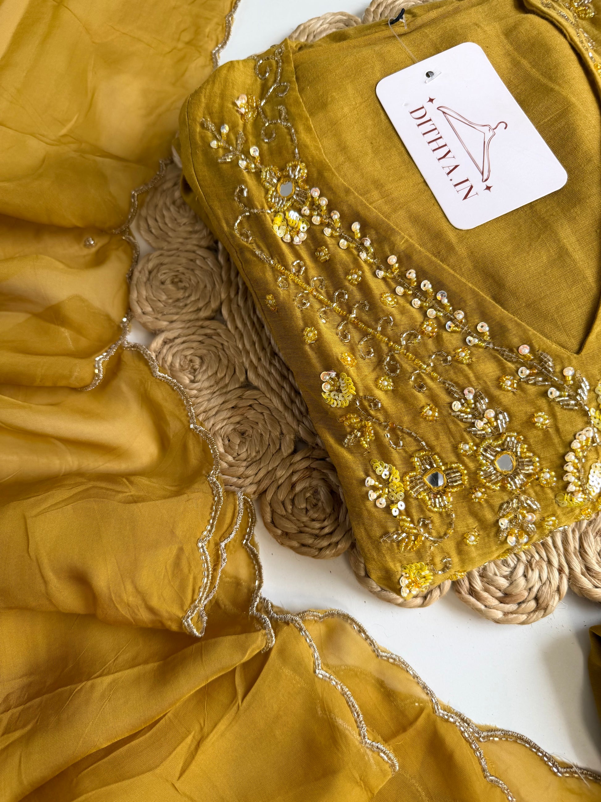 K508 - Mul chanderi Handwork Kurti with pants and dupatta