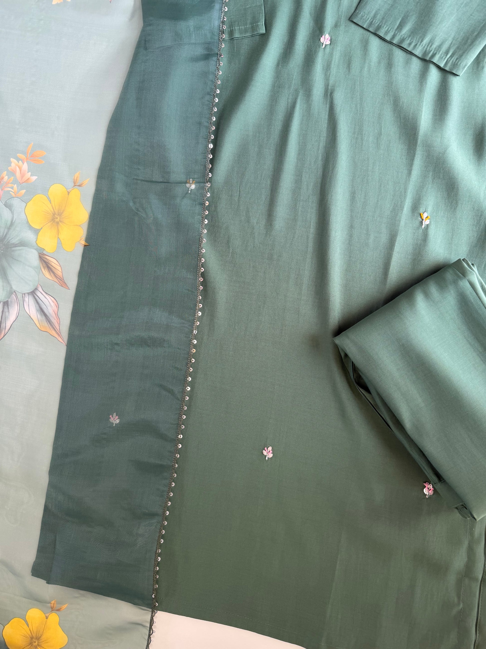K514 - Roman silk handwork straight Kurti with pants and dupatta