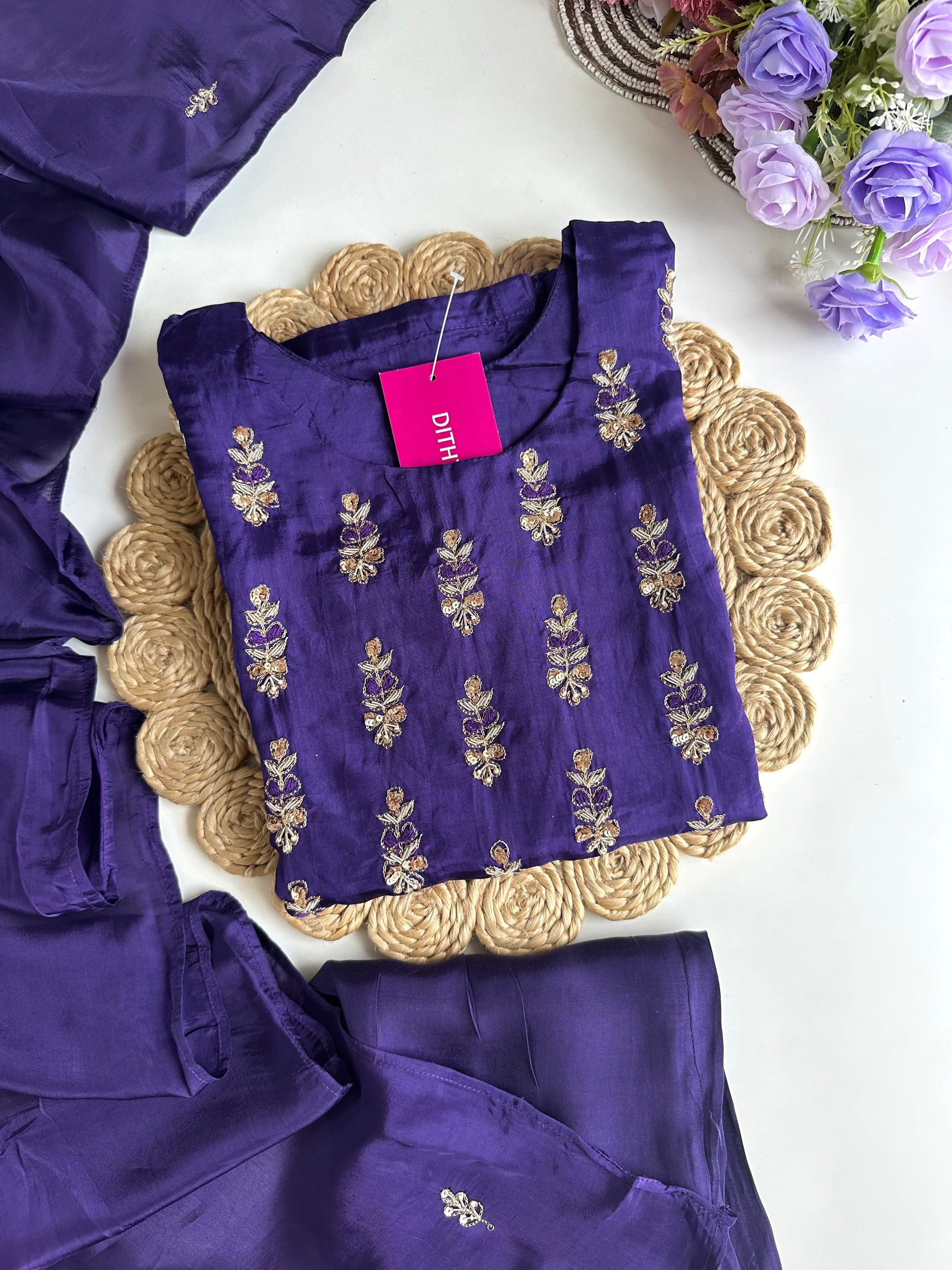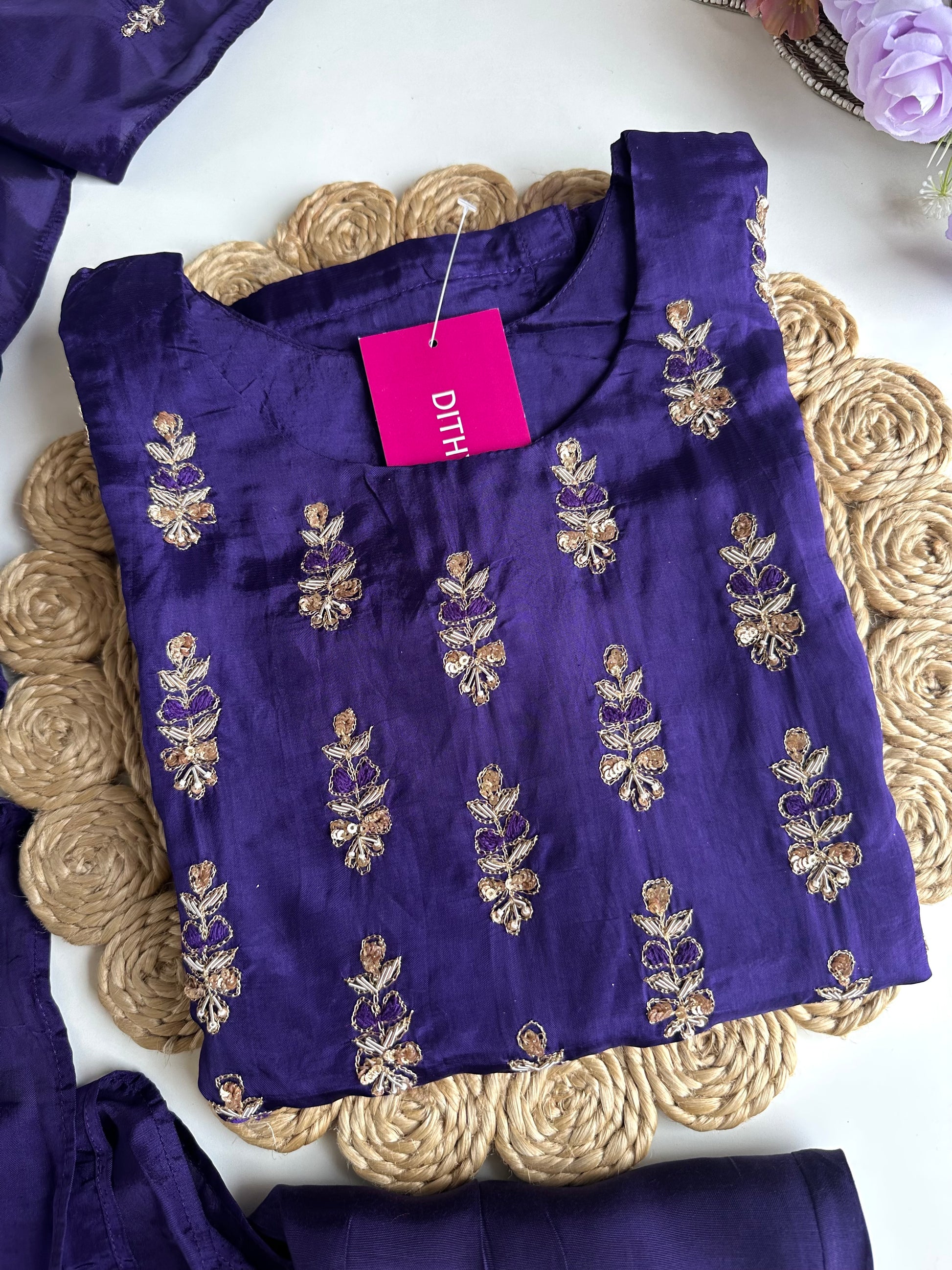 K288 - Russian silk handwork straight Kurti with pants and dupatta