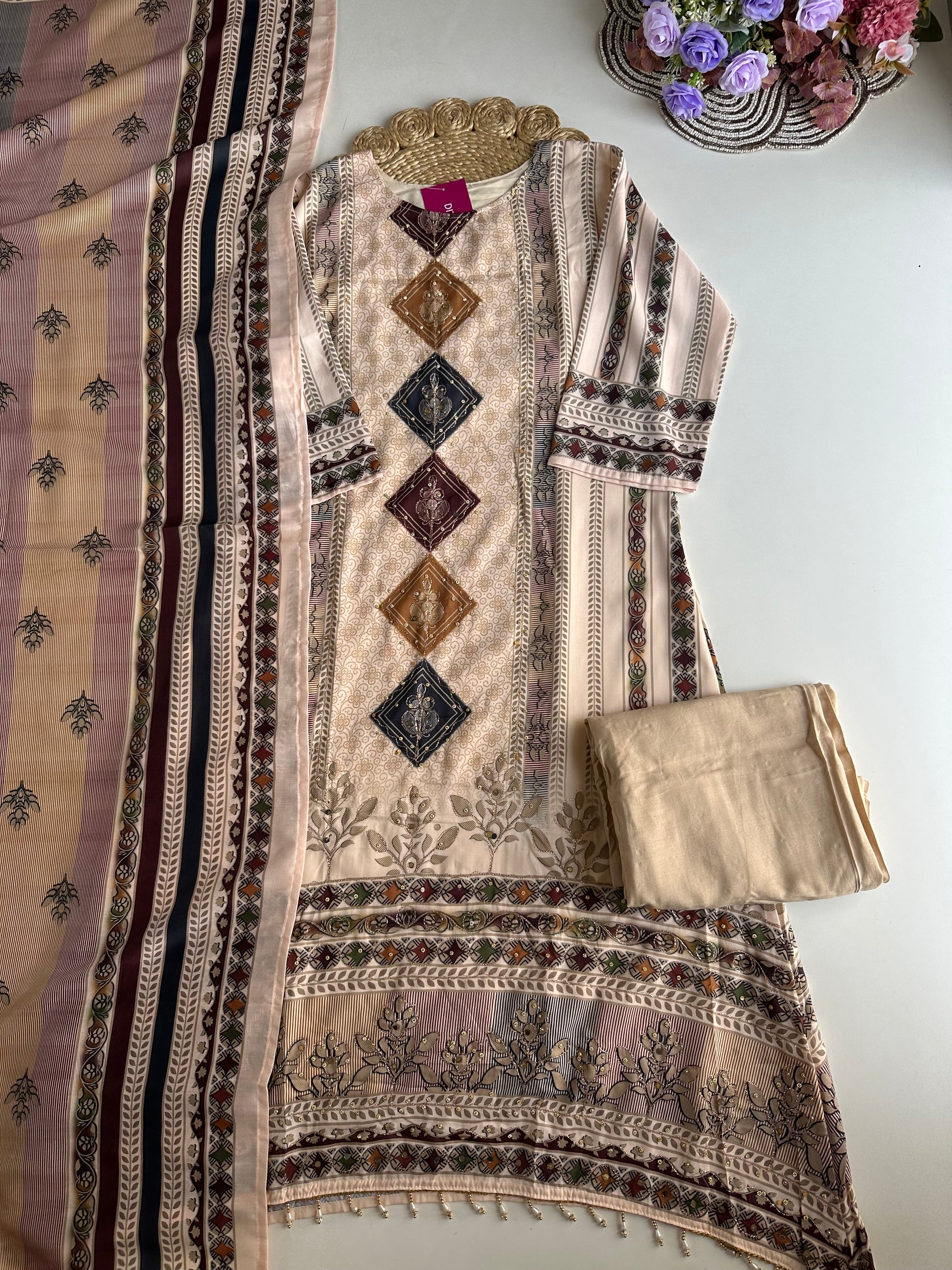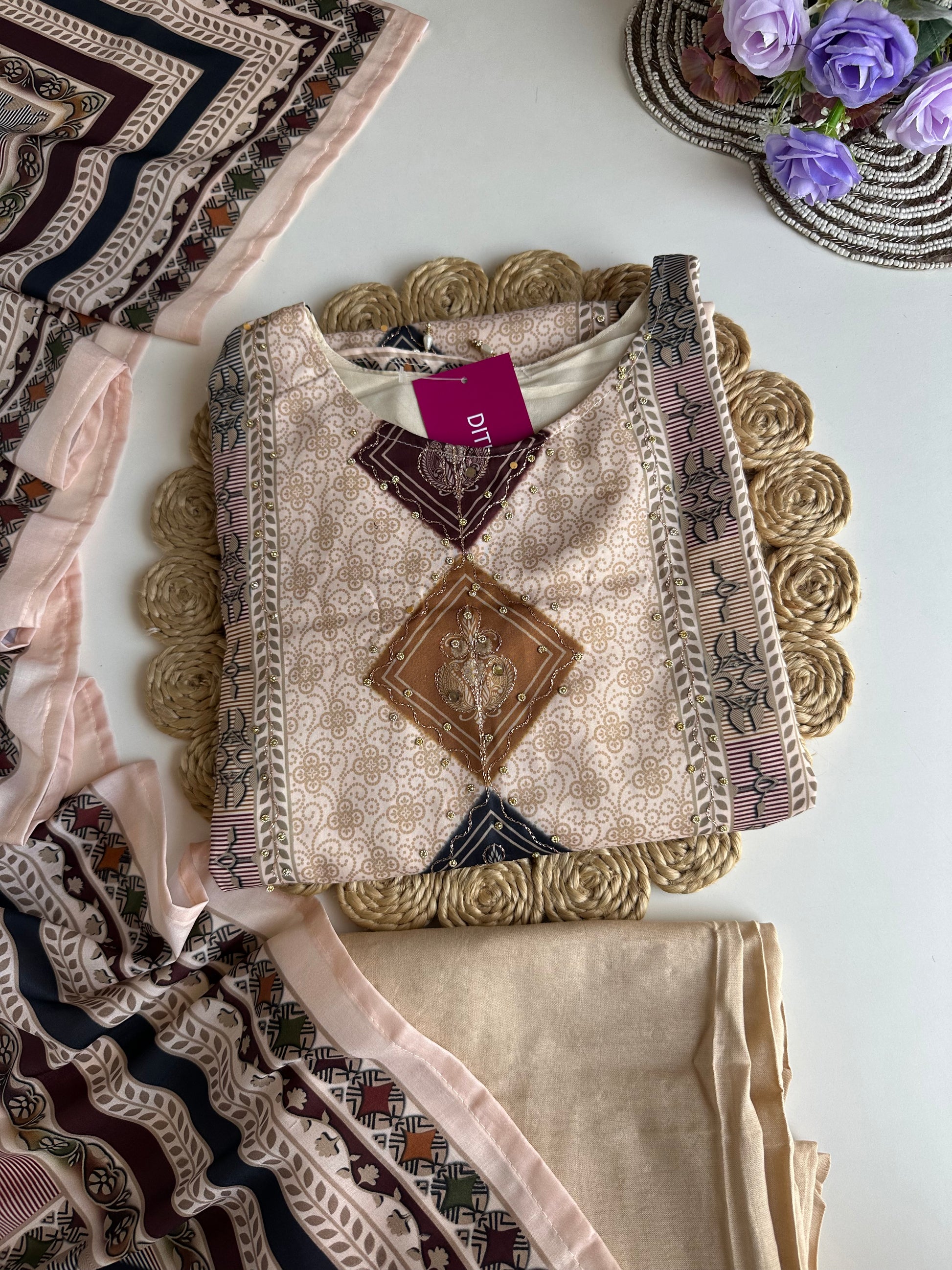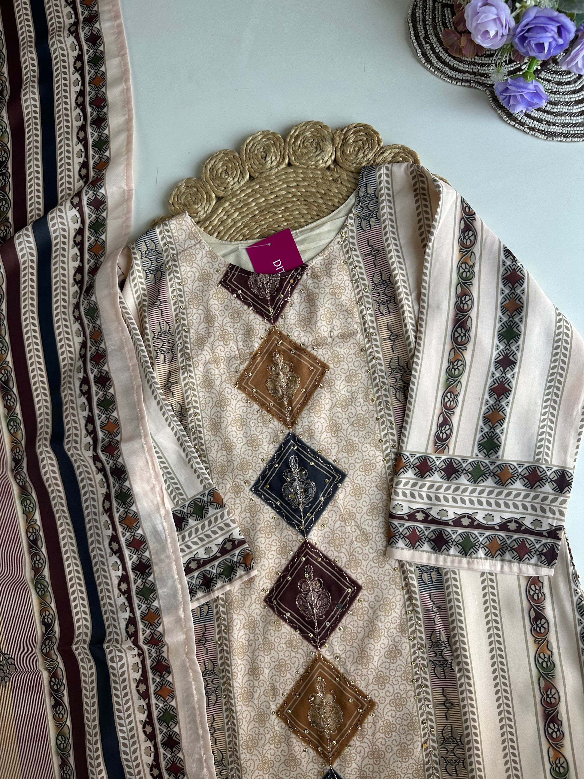 K187 - Rayon printed Aline kurti with pants and dupatta