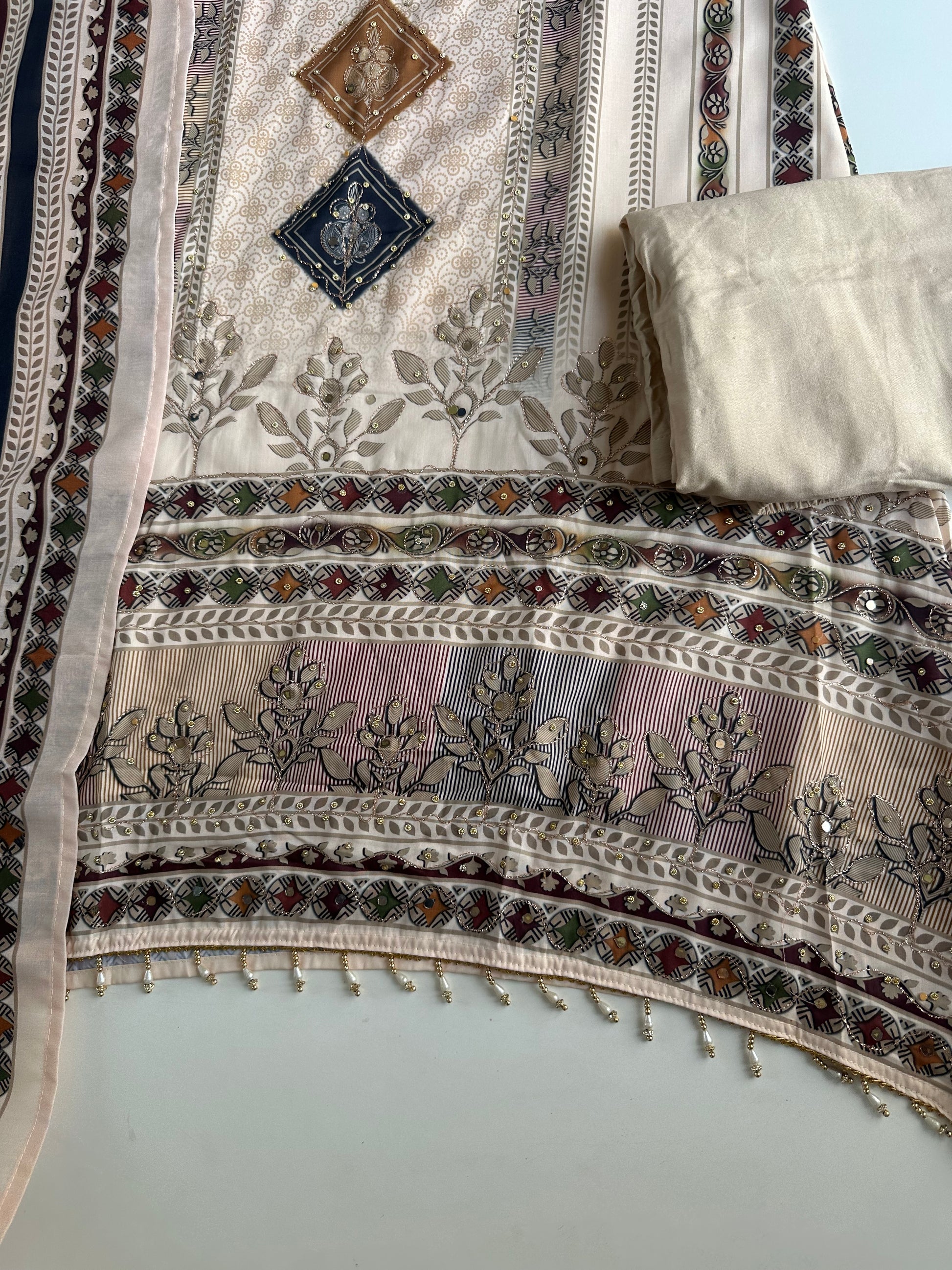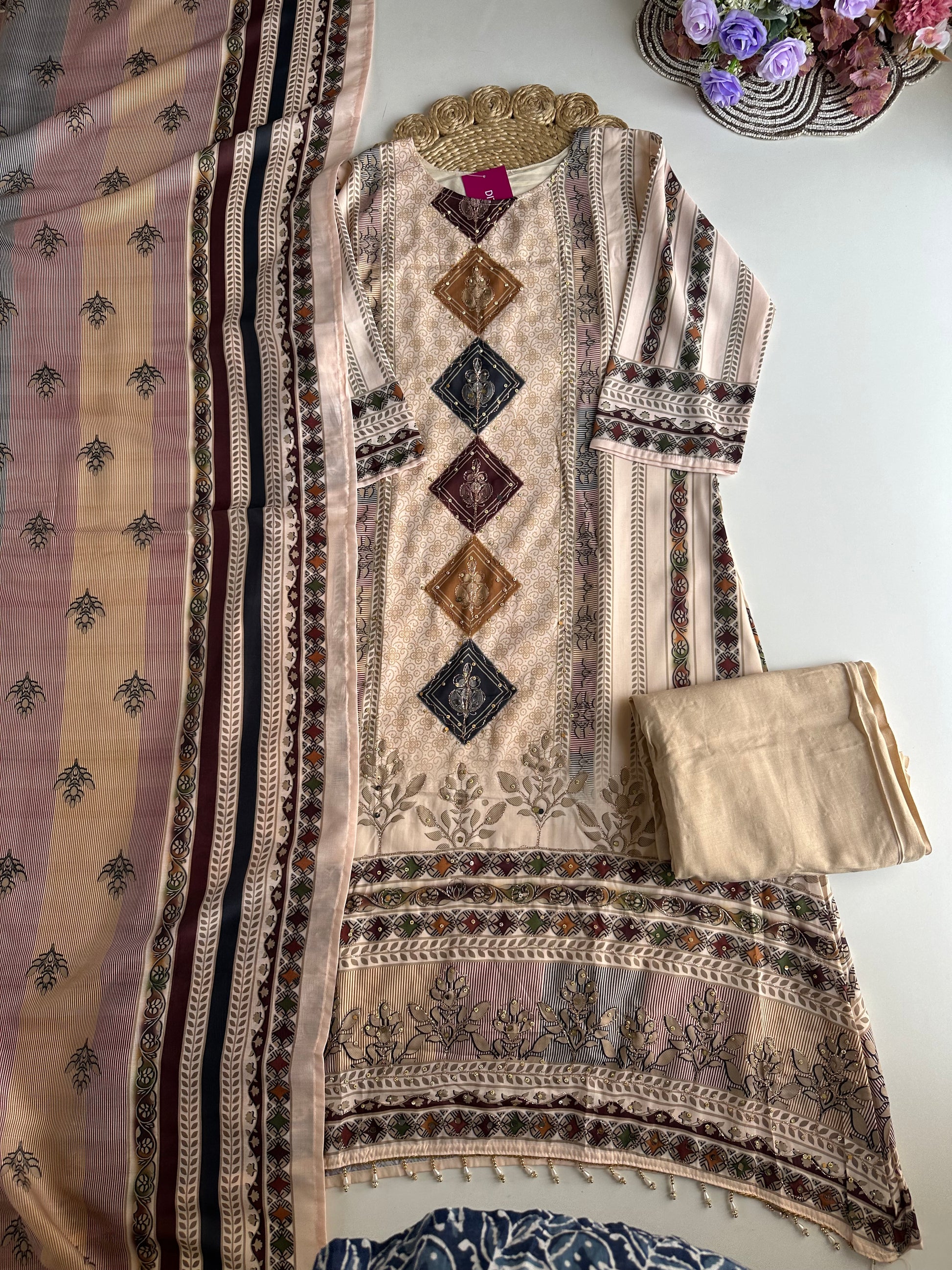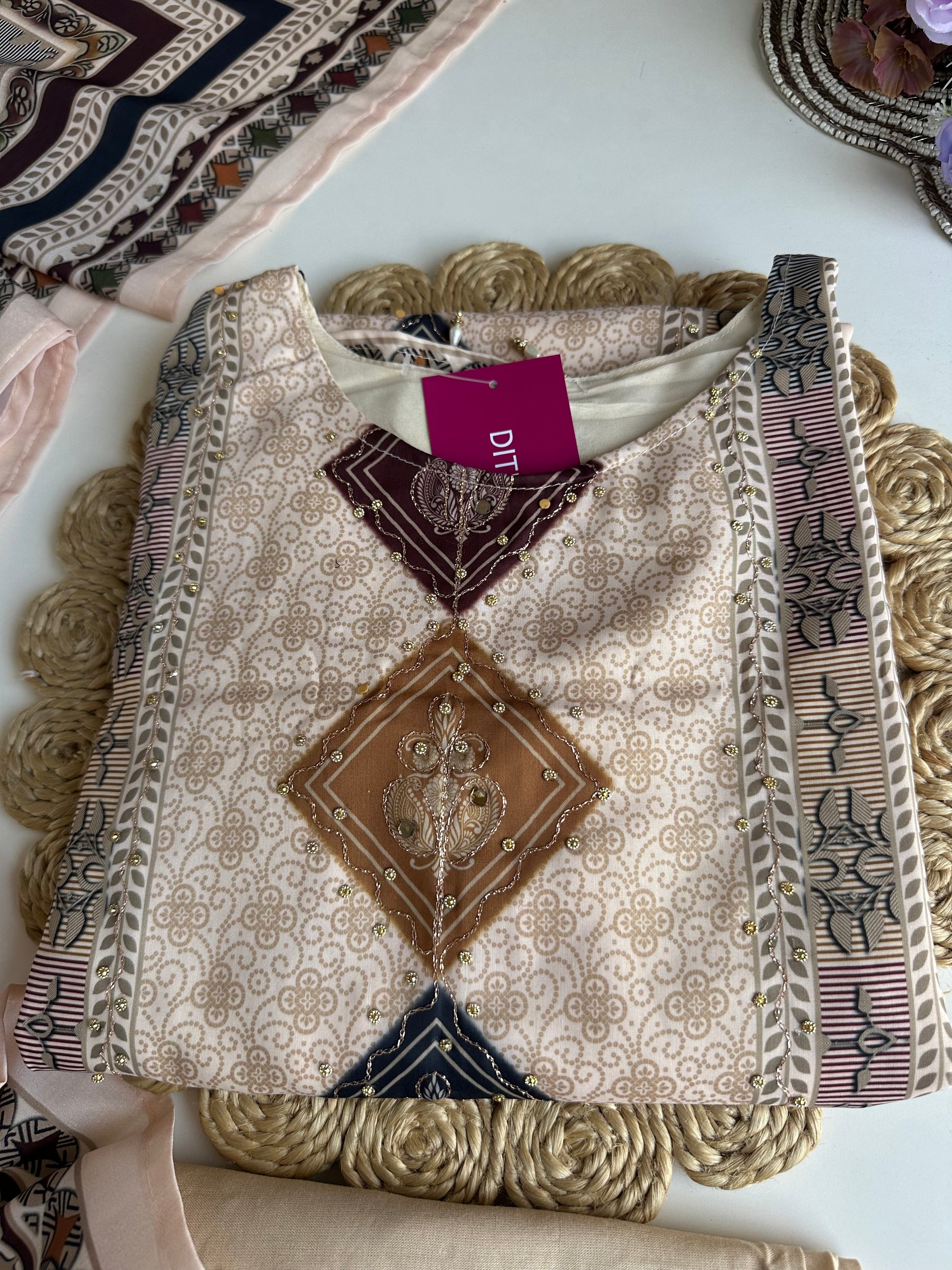 K187 - Rayon printed Aline kurti with pants and dupatta