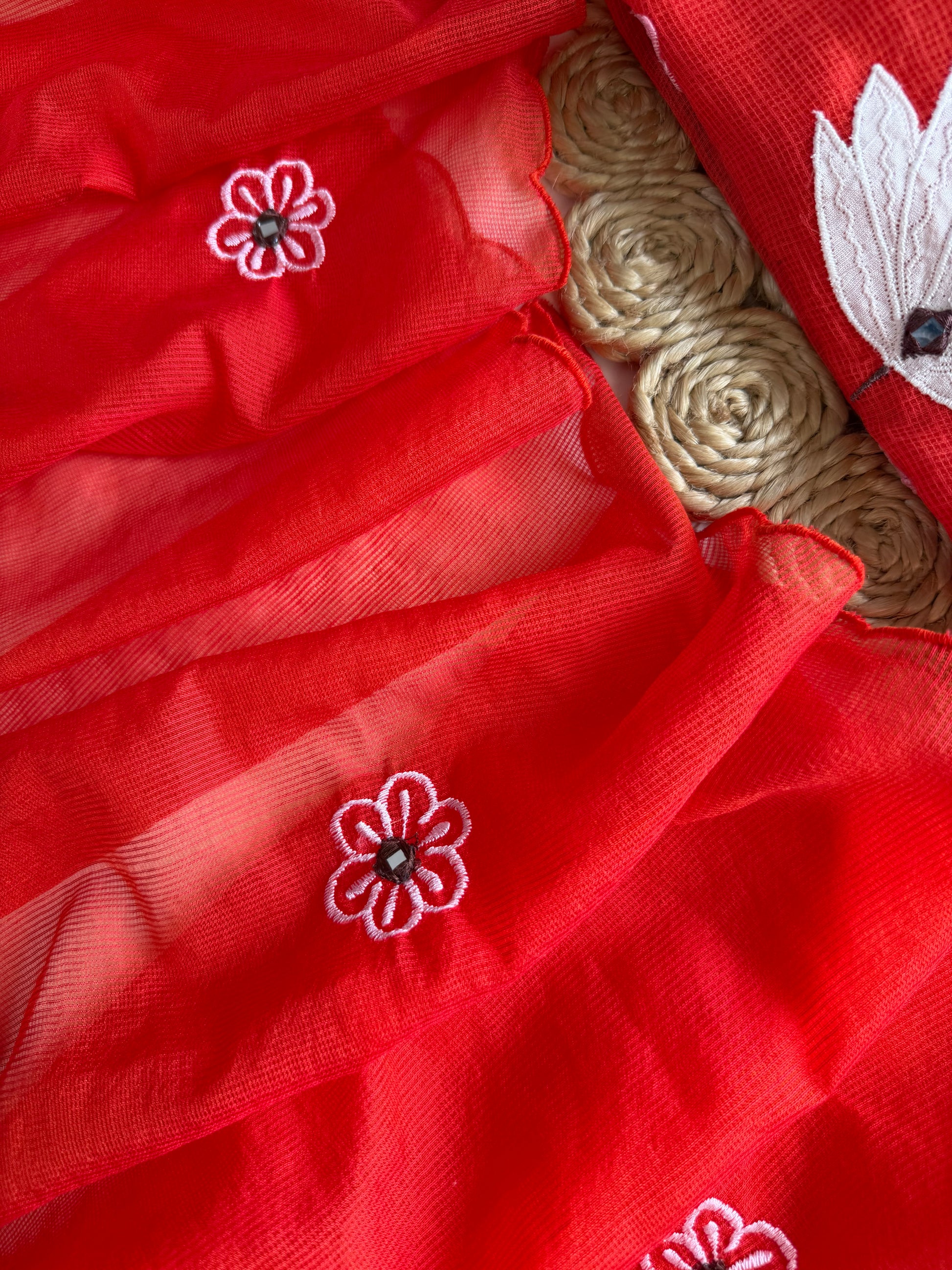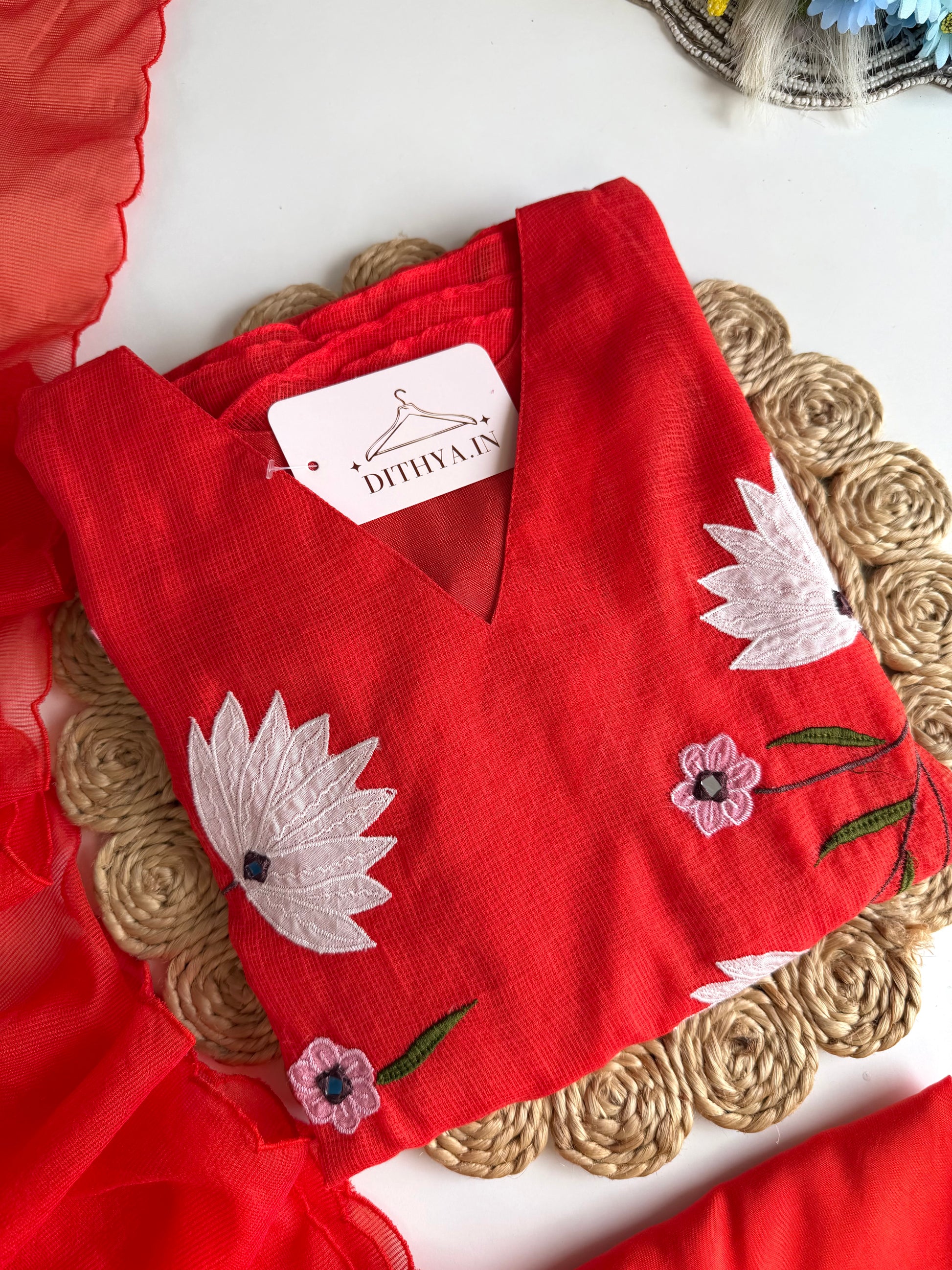 K295 - Kota doriya appliqué Aline Kurti with pants and dupatta