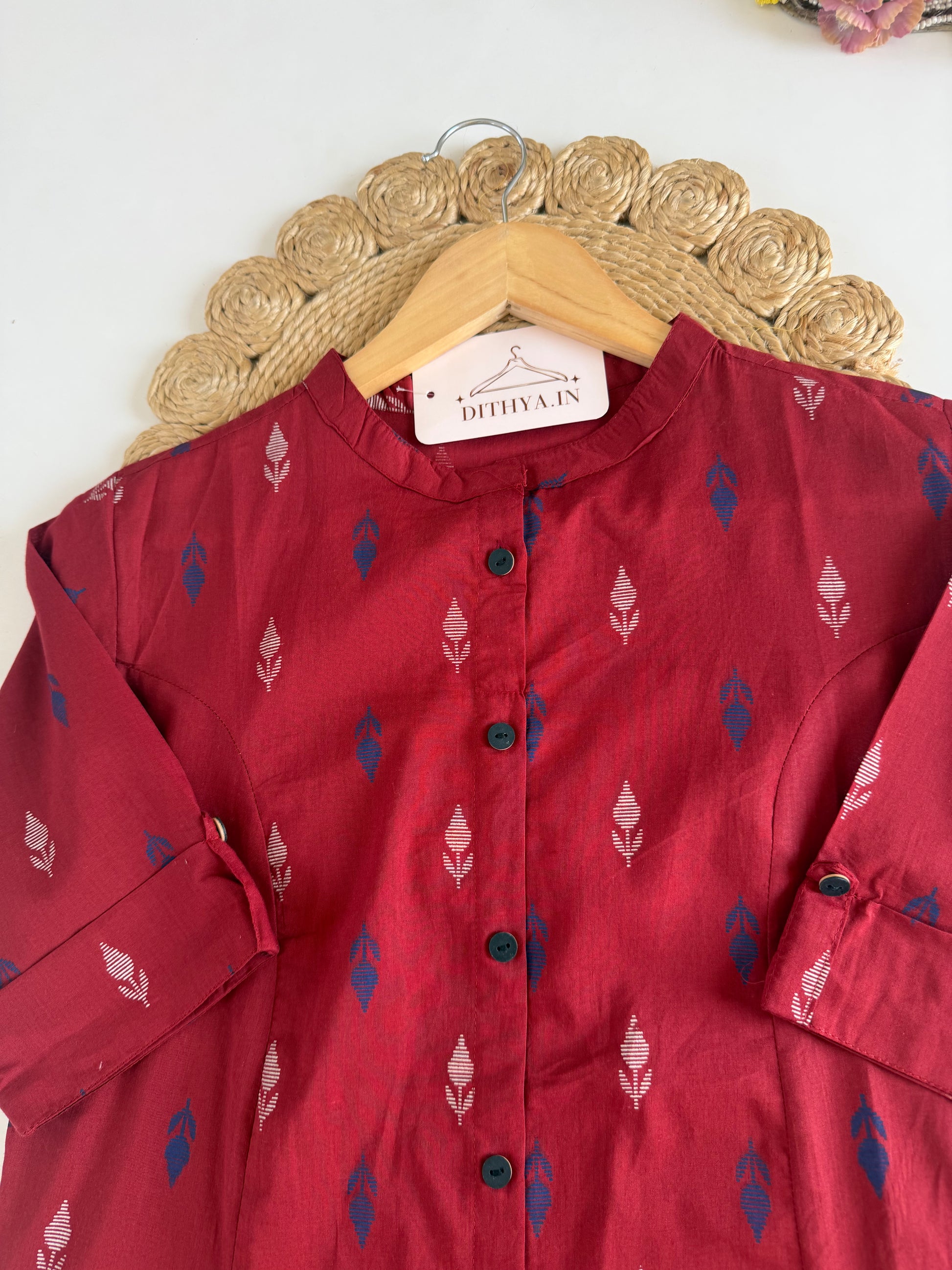 K429 - Linen cotton printed Aline Kurti with pants