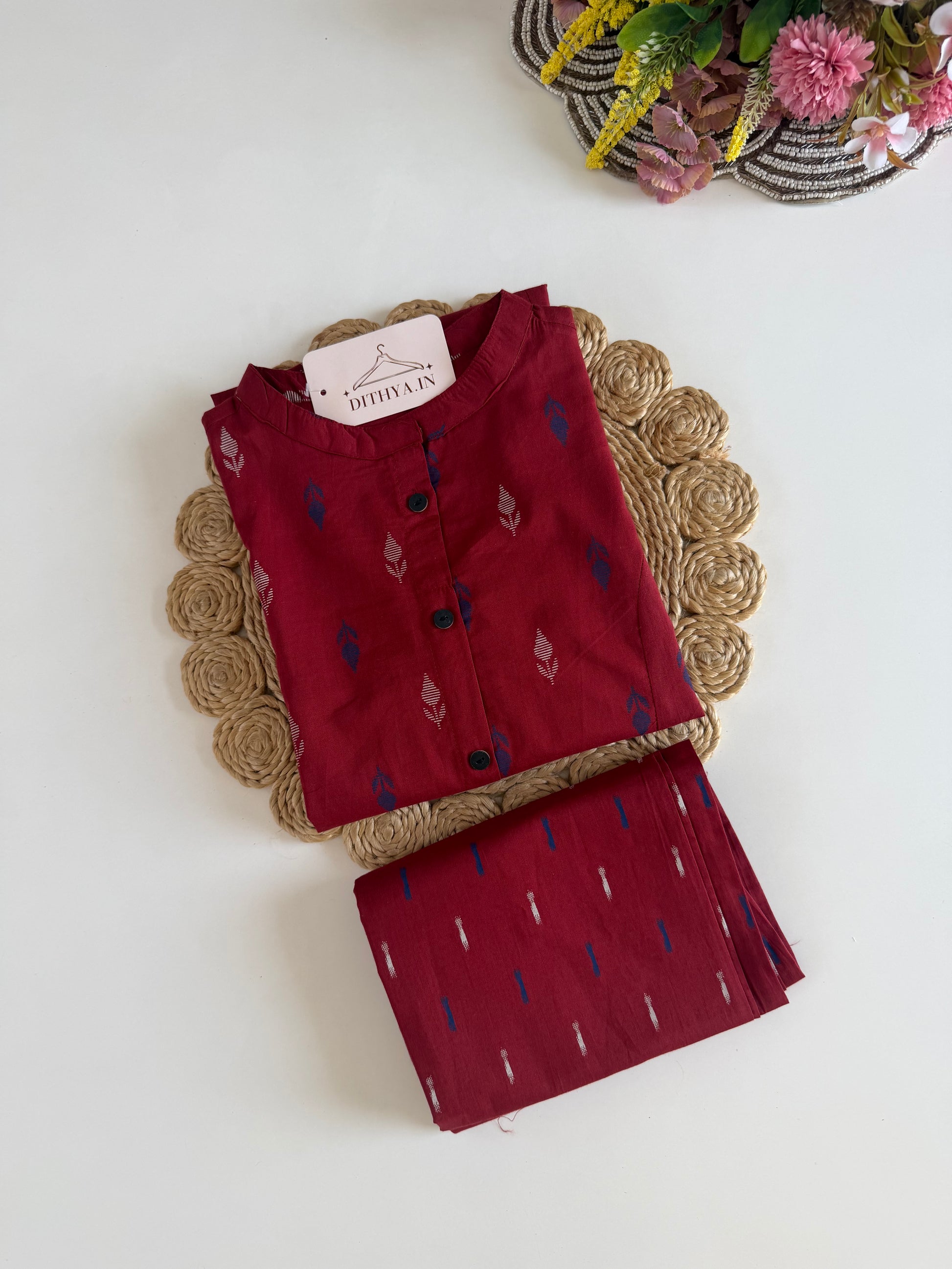 This linen-cotton blend Aline Kurti with matching pants combines traditional elegance with contemporary comfort. The printed fabric showcases intricate detailing while the flowing Aline cut provides a flattering, unrestricted fit. Constructed from premium natural fibers, the ensemble offers superior breathability and durability, making it perfect for India's warm climate. The coordinated two-piece set eliminates styling guesswork, delivering a polished look suitable for daily wear, festive occasions, or professional settings. An investment piece that balances timeless design with practical wearability.