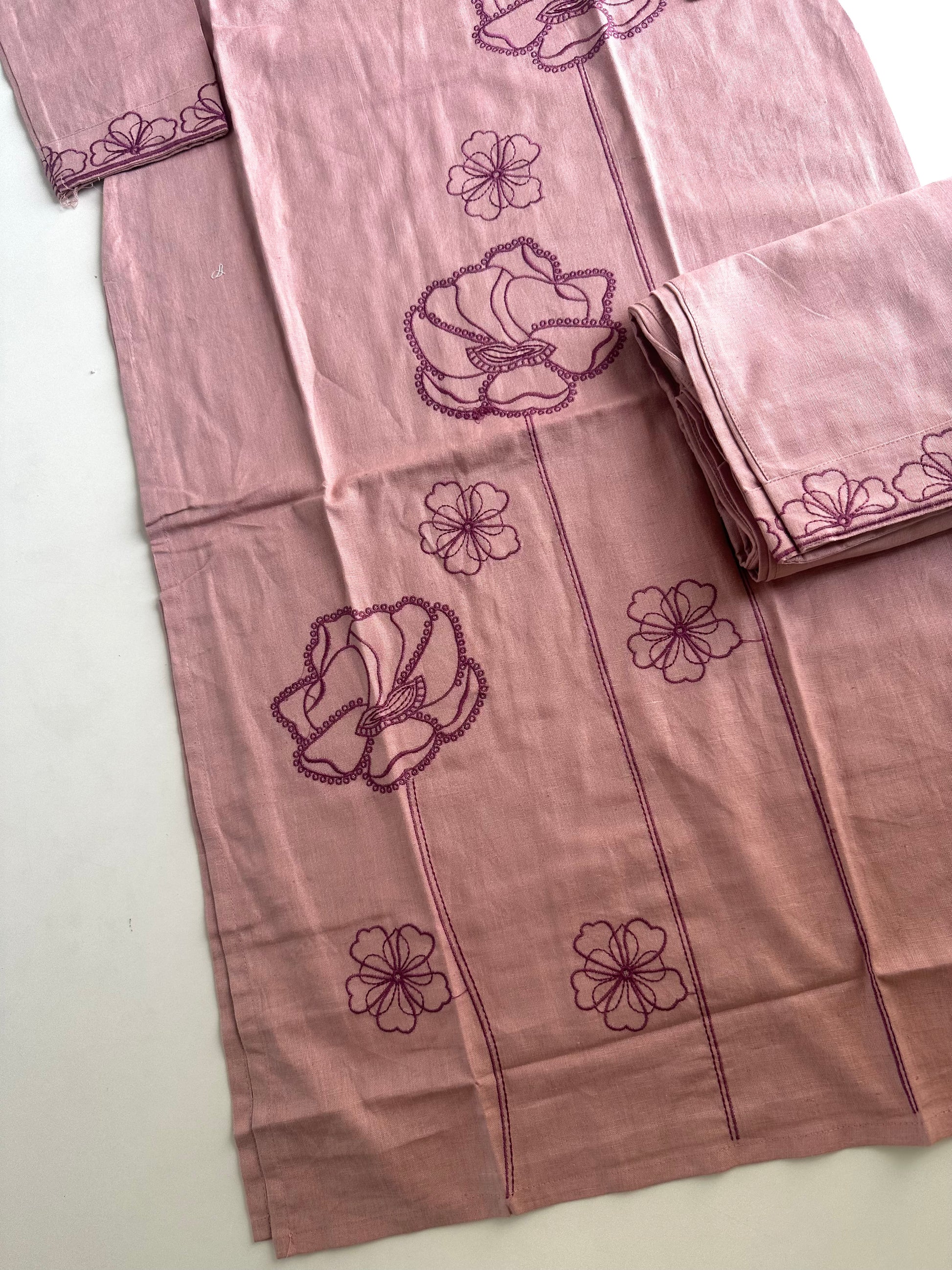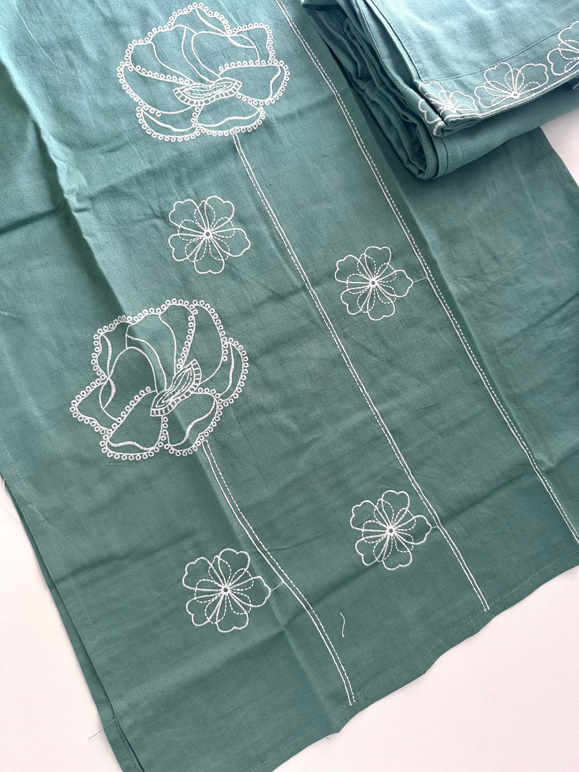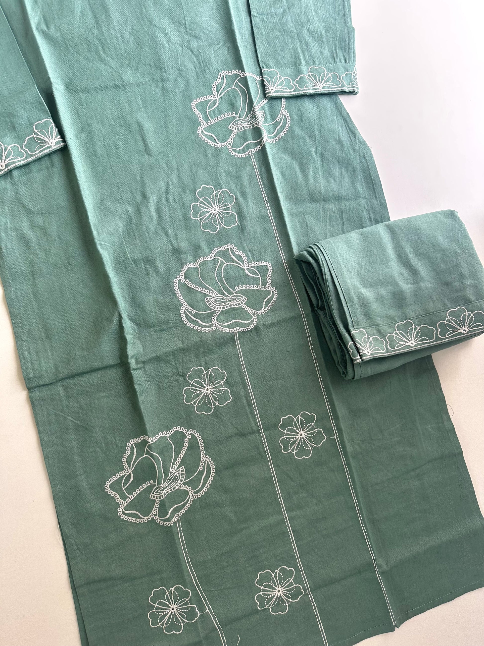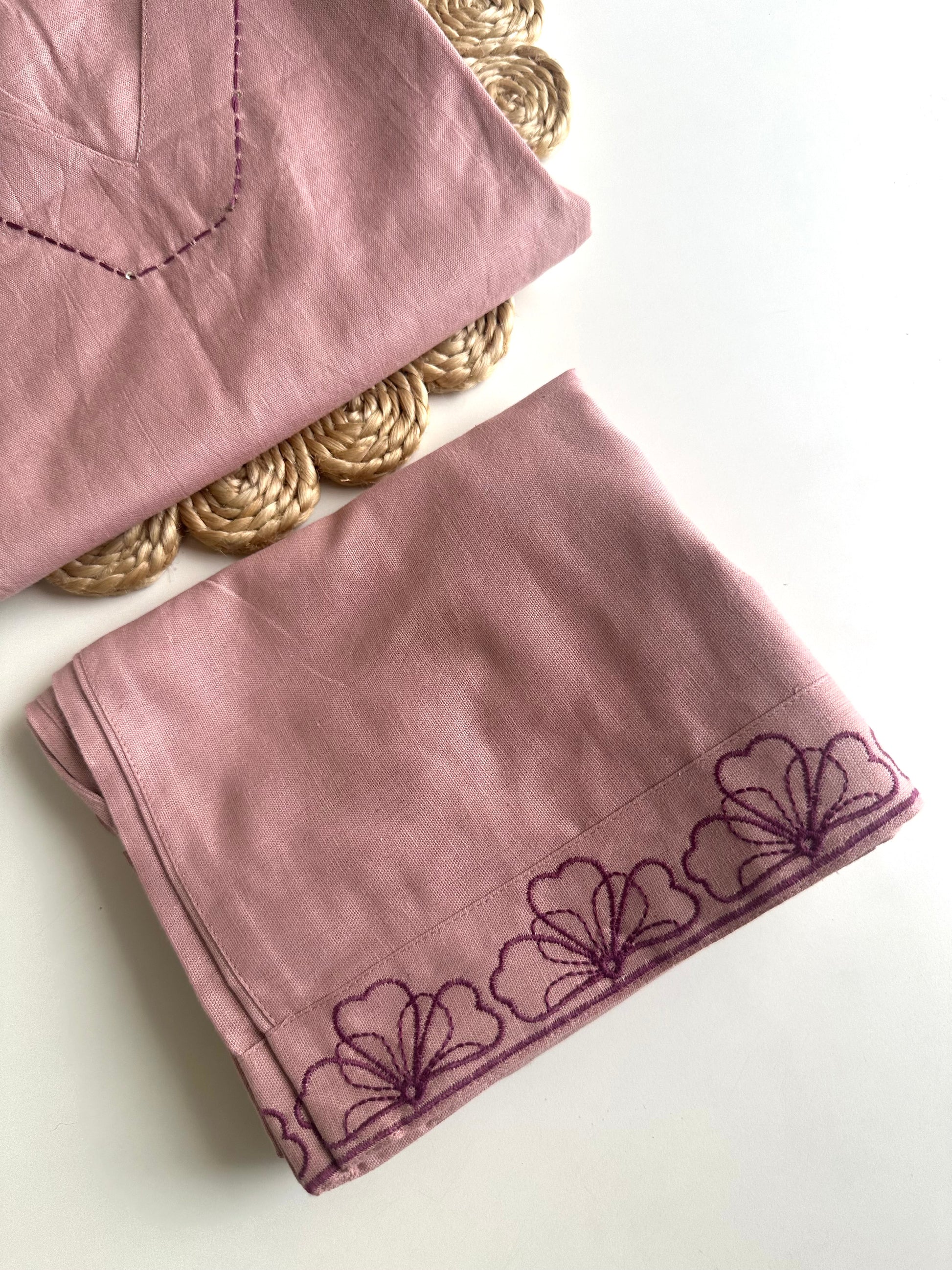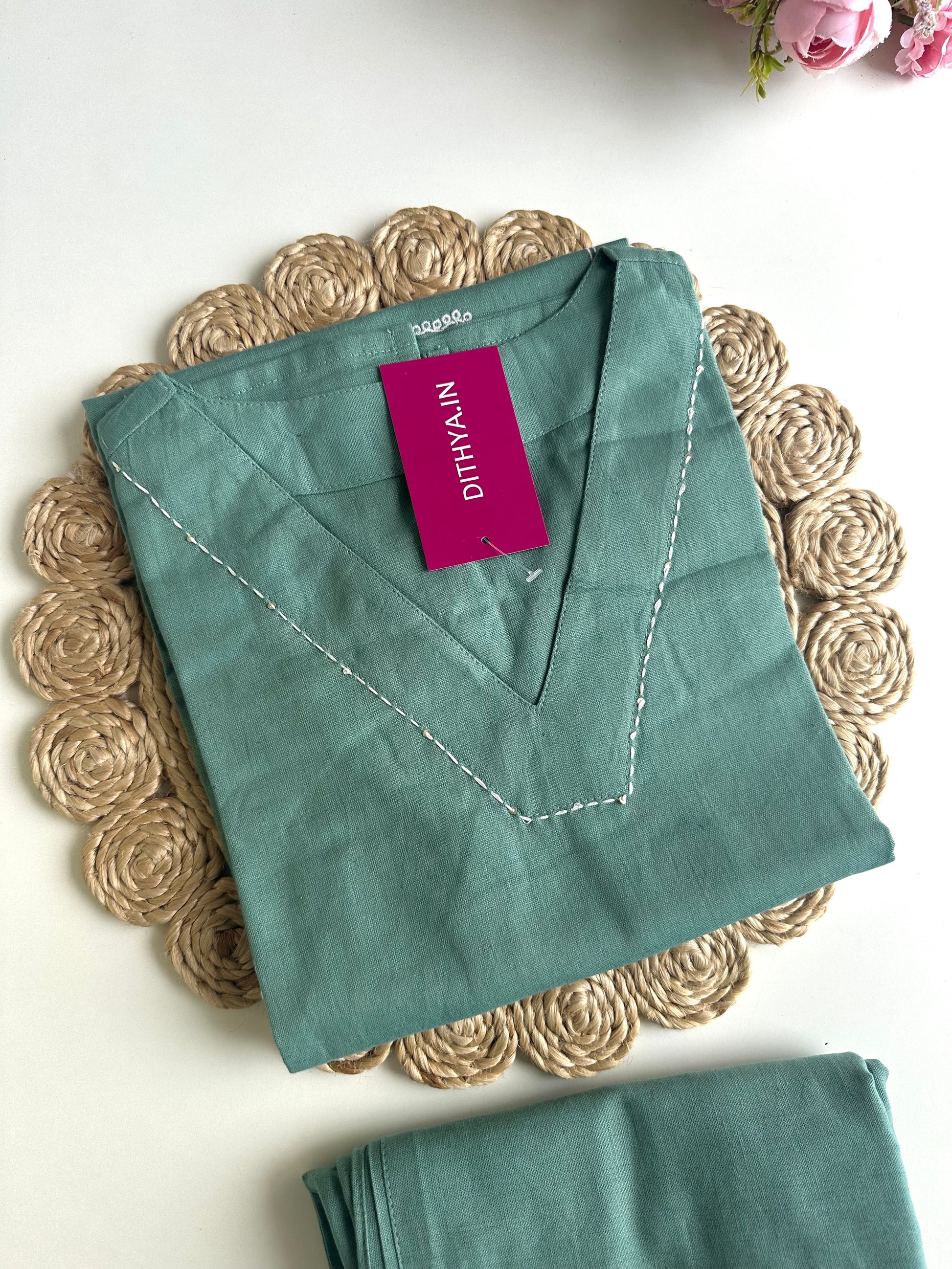 K438 - Linen cotton embroidered Aline Kurti with pants in 2 colours
