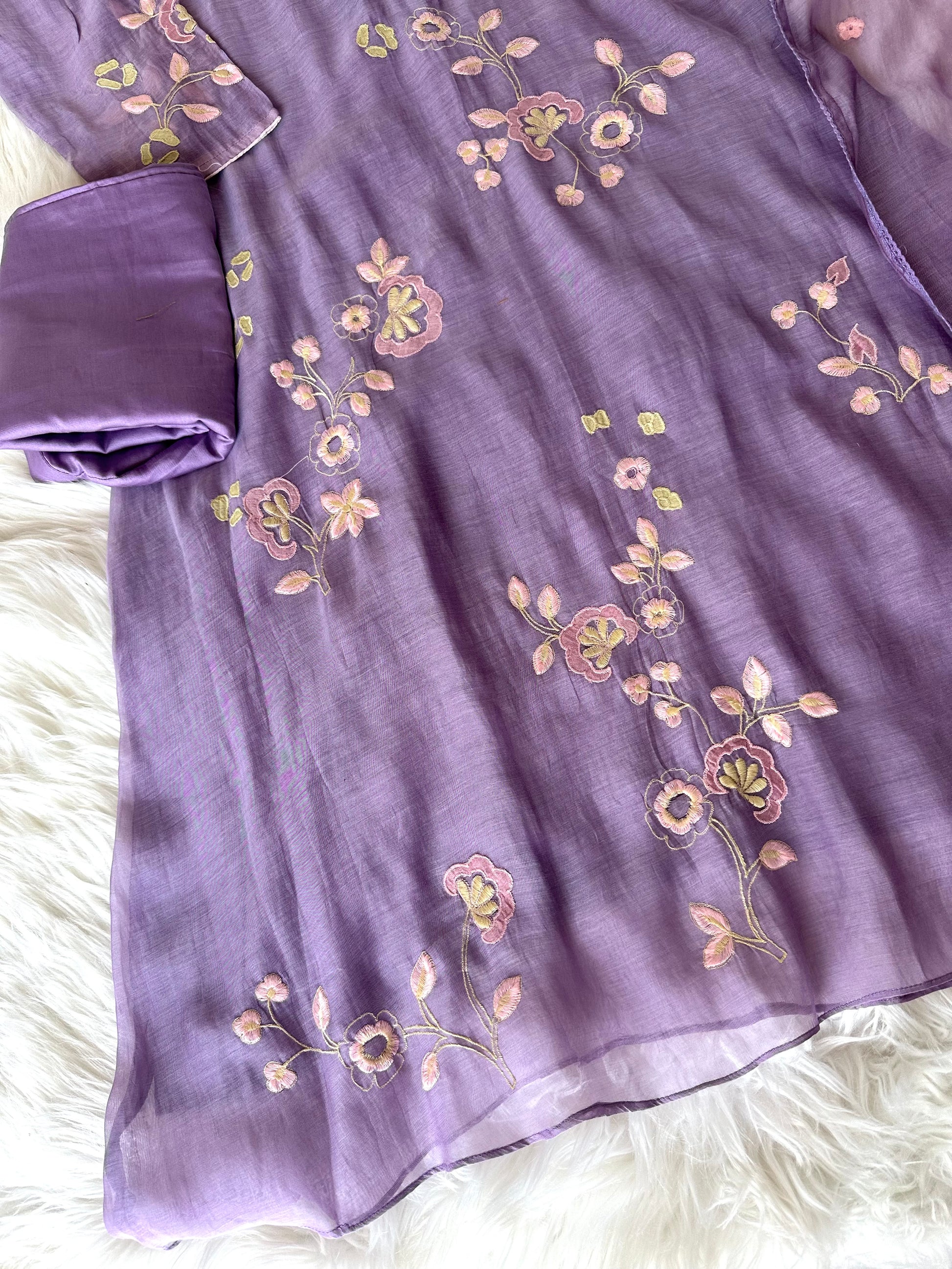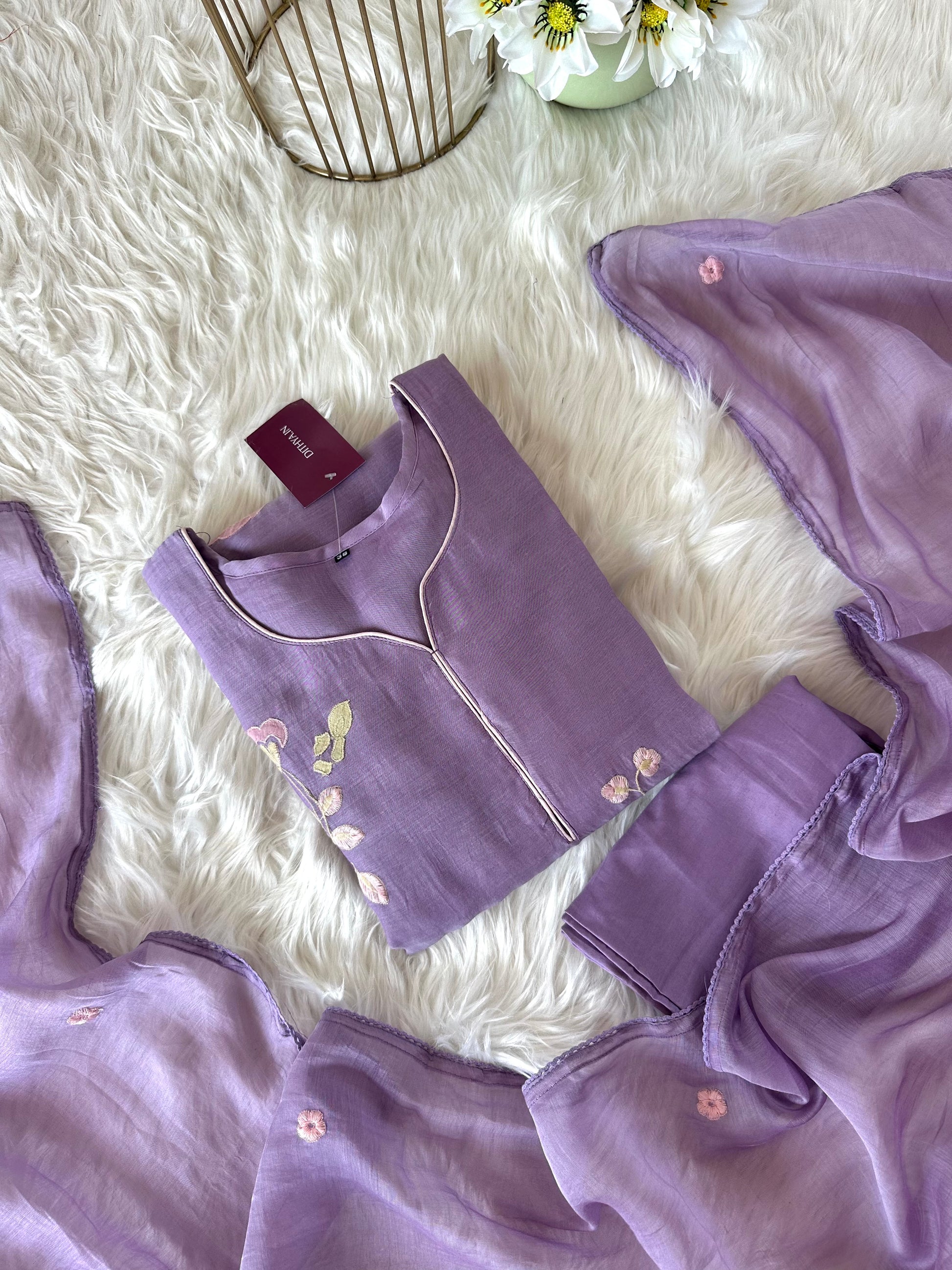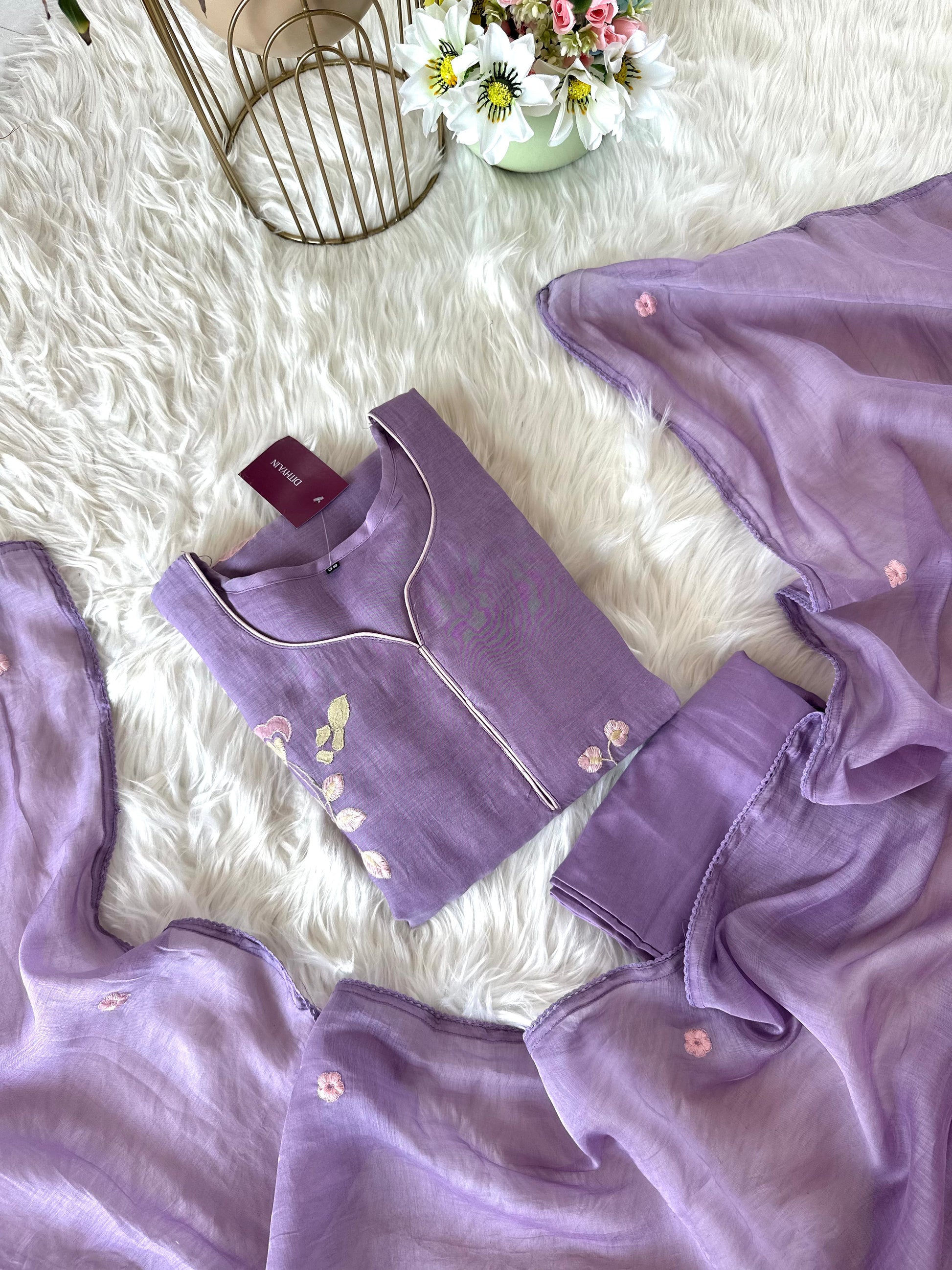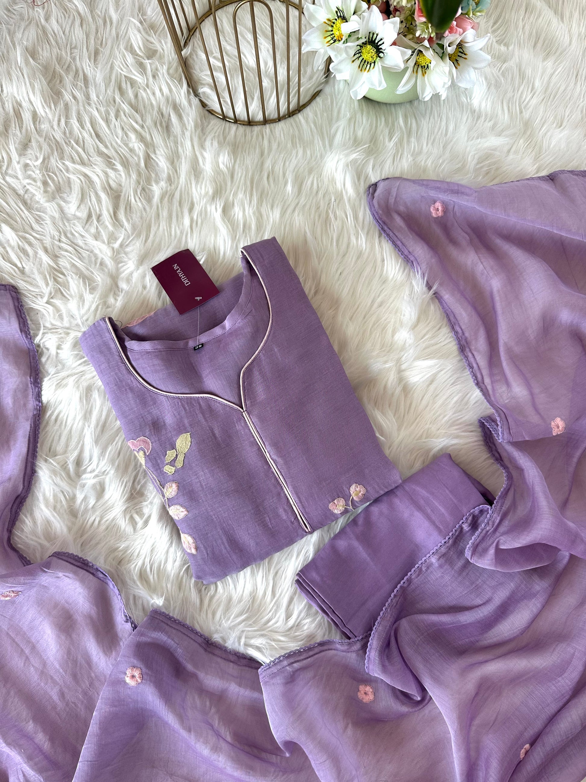 K337 - Mul Chanderi Appliqué work Anarkali with pants and dupatta
