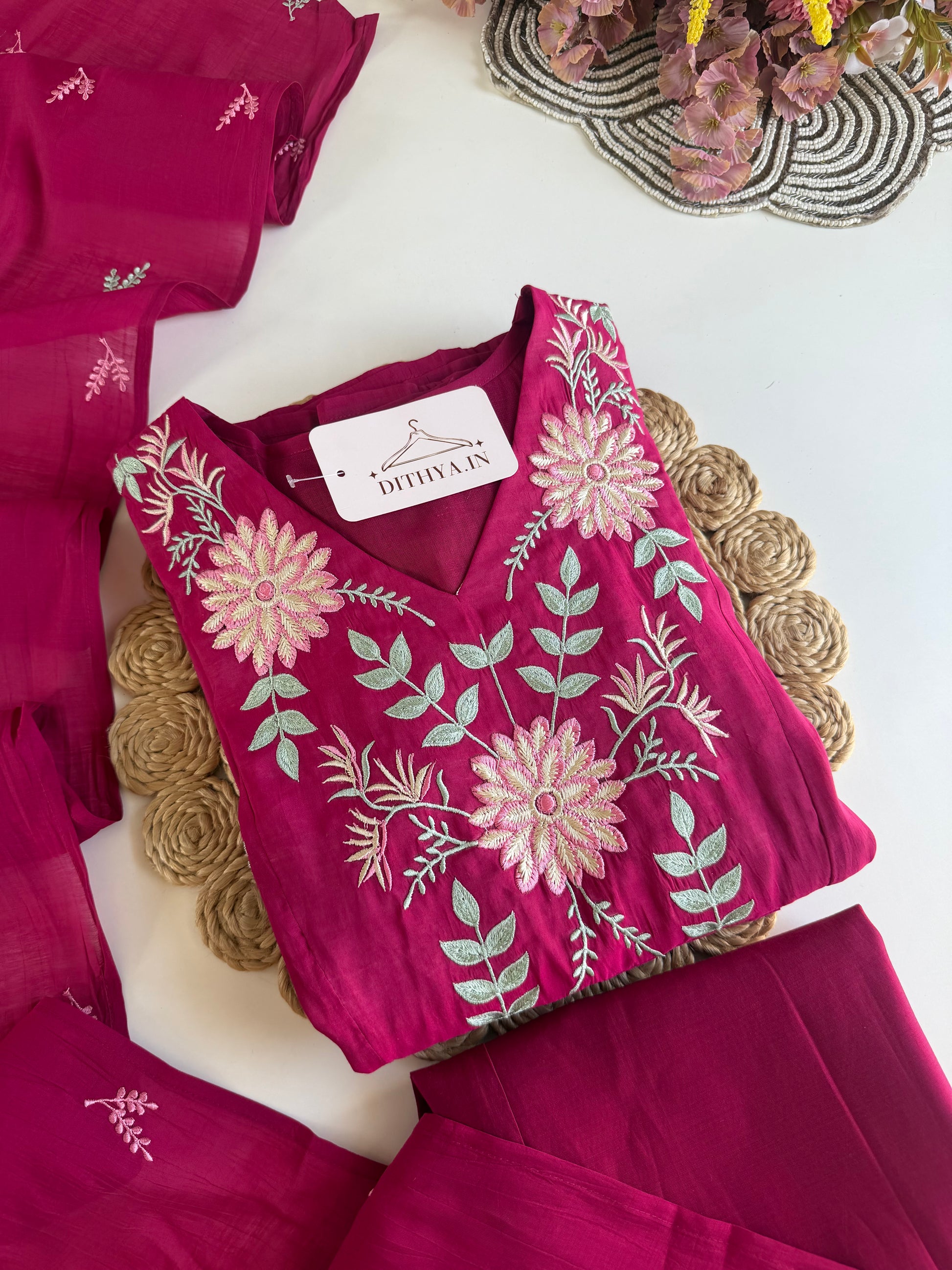 The K477 is an elegant Anarkali crafted from high-quality mul chanderi fabric, featuring intricate appliqué work and embroidery. This set includes matching pants and a dupatta, providing a cohesive and sophisticated look suitable for formal occasions. The lightweight fabric ensures comfort while maintaining an elegant drape.