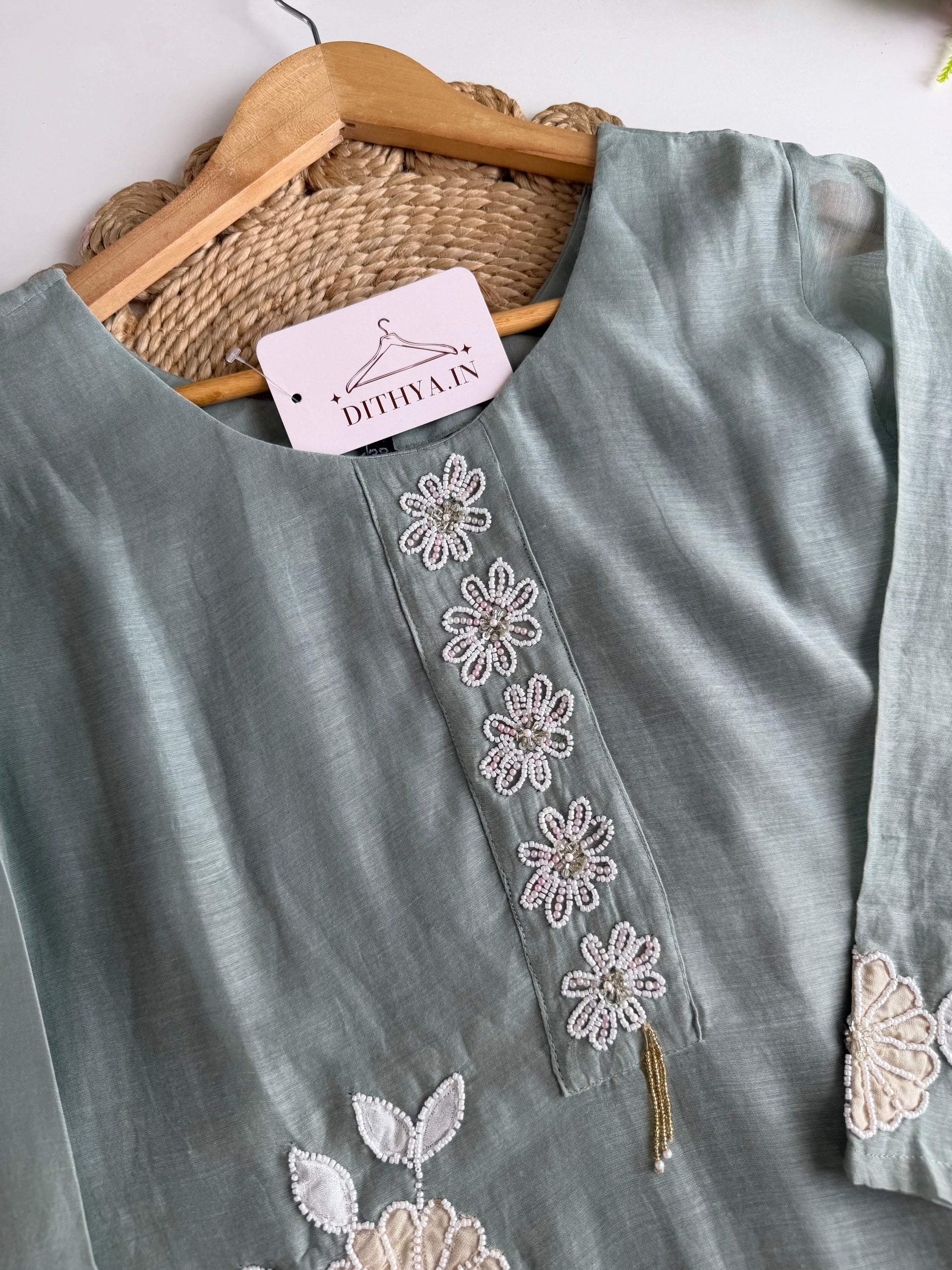 Expertly crafted from luxurious mul chanderi fabric, this handwork coord set is the epitome of elegance. With intricate detailing and a timeless design, it's the perfect addition to any wardrobe. The lightweight fabric offers comfort and breathability, while the handwork adds a touch of artistry. Elevate your style with this exquisite coord set.