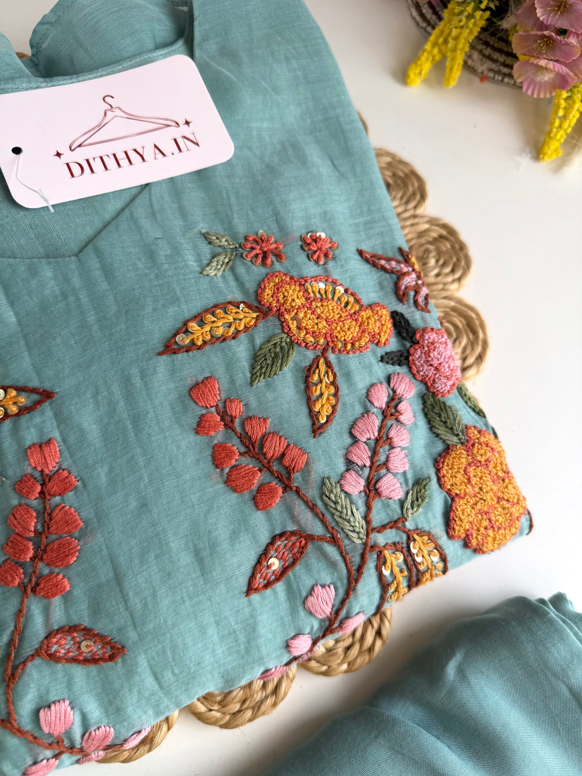 Discover the elegance of our Mul chanderi Anarkali, beautifully embroidered with traditional designs. This set includes matching pants and a dupatta, creating a stunning ensemble perfect for any occasion. Made from high-quality mul chanderi fabric, experience luxurious comfort while looking effortlessly stylish.