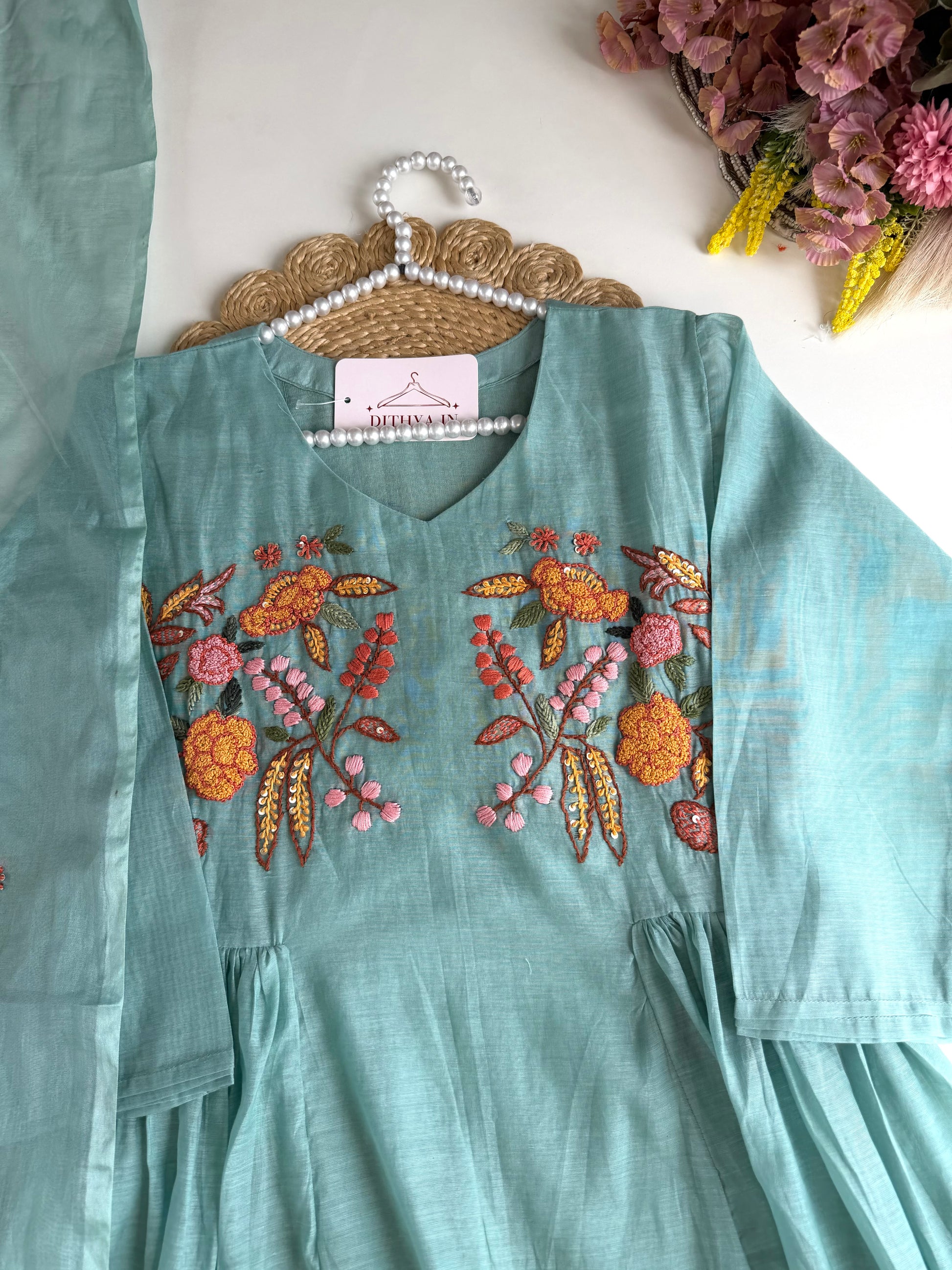K512 - Mul chanderi Embroidered Anarkali with pants and dupatta
